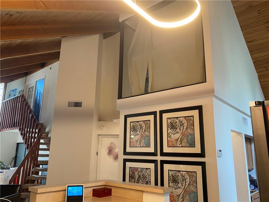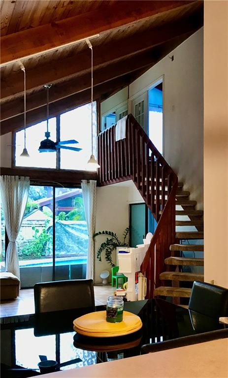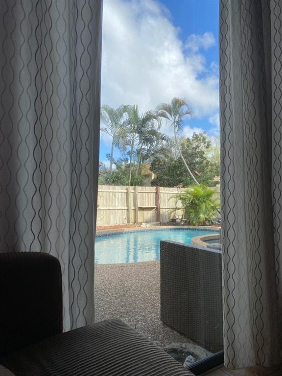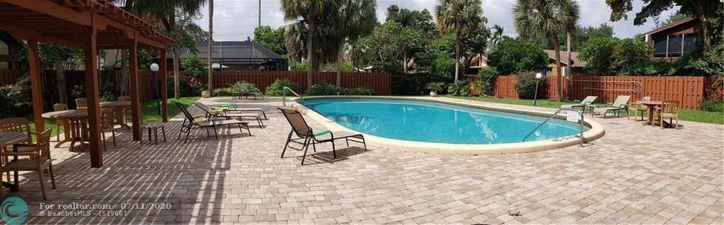 HIGHLY SOUGHT! Largest two-story loft. A Smart home. Master bedroom w/walk-in closet w/built-in cabinets on 2nd floor, custom designer drapes, & adjoining loft/studio overlooks the ground floor & kitchen. Updated bright kitchen, cabinets & hi-end appliances, bathrooms elegantly appointed.The kitchen, office/library, living/dining room, bath room, bedroom an entertainment/exercise room all on lower level. Designer details & upgrades. Vaulted exposed wood beams & tongue-in-groove ceiling. Fenced-in yard w/private pool also a handy shed. Newer AC, hot water heater, alarm, roof replaced, outdoor patio and partial storm panels for windows. Great location close to I95 & Turnpike. Near shopping, community pool, tennis court, handball court, picnic area, dog park. Maintenance is ONLY $78 a month!!