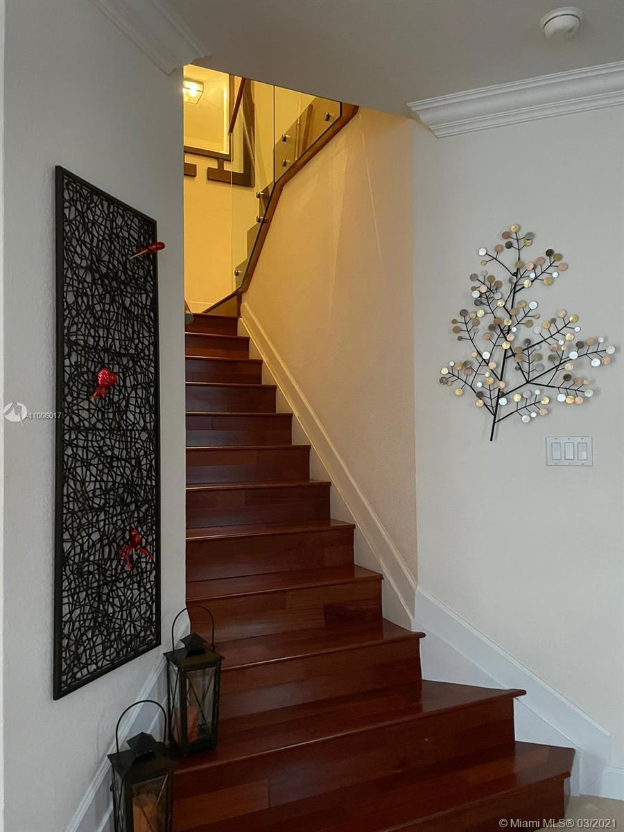 Corner unit ,biggest floor plan 4 Bedrooms 3 1/2 Baths, Pristine condition , Marble floors on first floor wood on stairs and second floor fully built closets, glass handrails, outdoor kitchen, Lake view, Impact windows. Must See... Lamps and TVs are not included on sale .