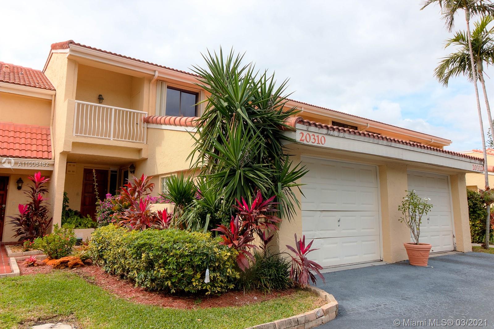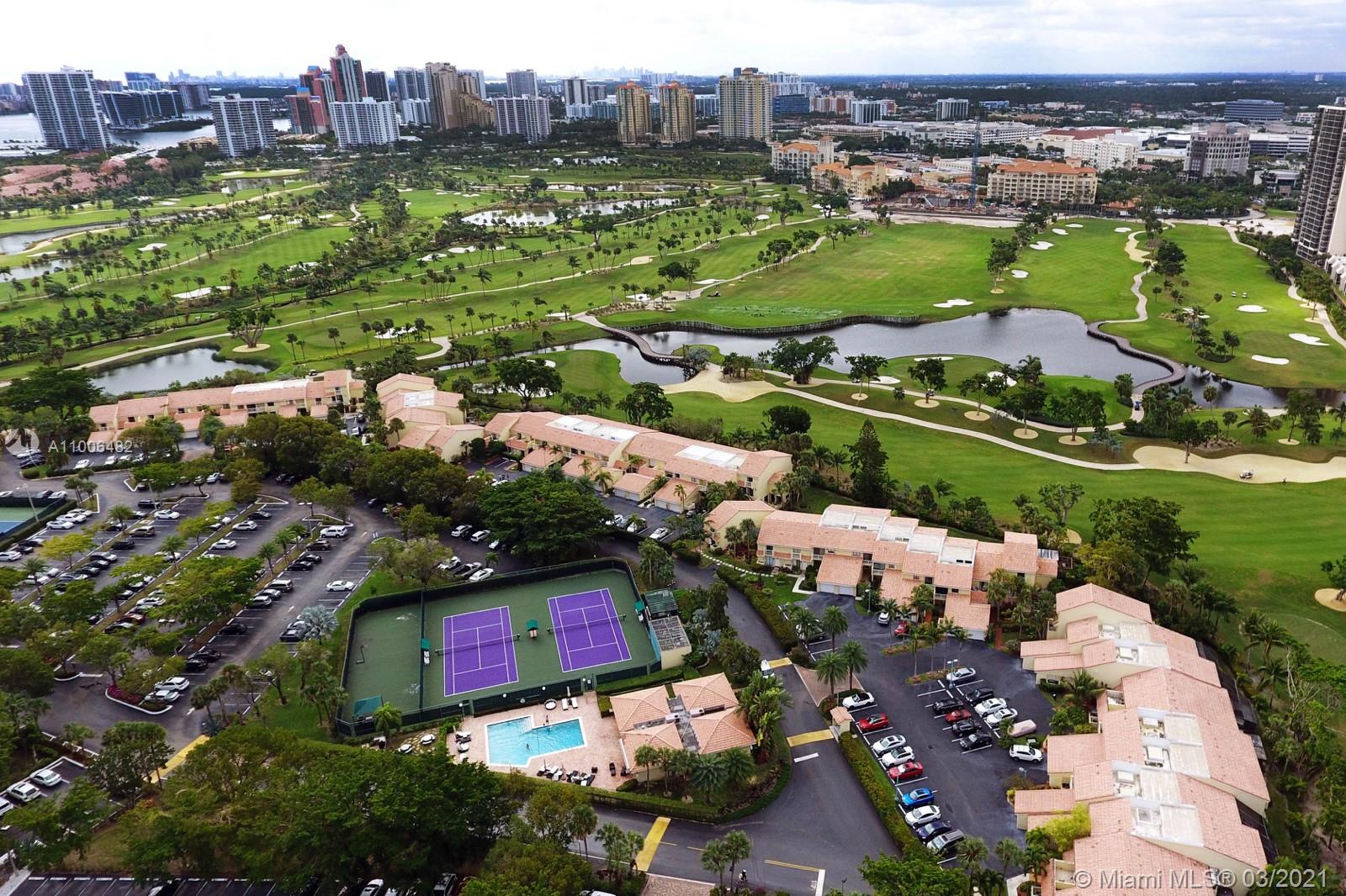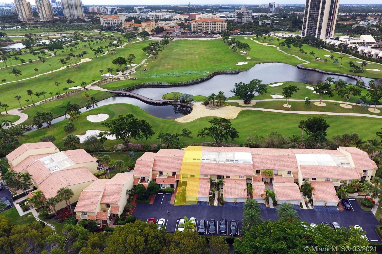 LOCATION - LOCATION - LOCATION!!! When buying or selling Real Estate you always hear those 3 important words! Well here is the best location in the heart of Aventura, a beautiful private town-home overlooking the world renown Turnberry golf course. Large 3/2.5 with high open ceilings, natural light from windows and several private balconies plus 24 feet ceiling skylight in living area. Great open floor plan, one car garage plus additional parking, covered patio and a private balcony off oversized master bedroom overlooking the golf course. Community offers: gated entrance, pool, gym, club house, tennis, and much more. Have the privacy of a home with the amenities of a large community. Call or email for more information and easy showings.