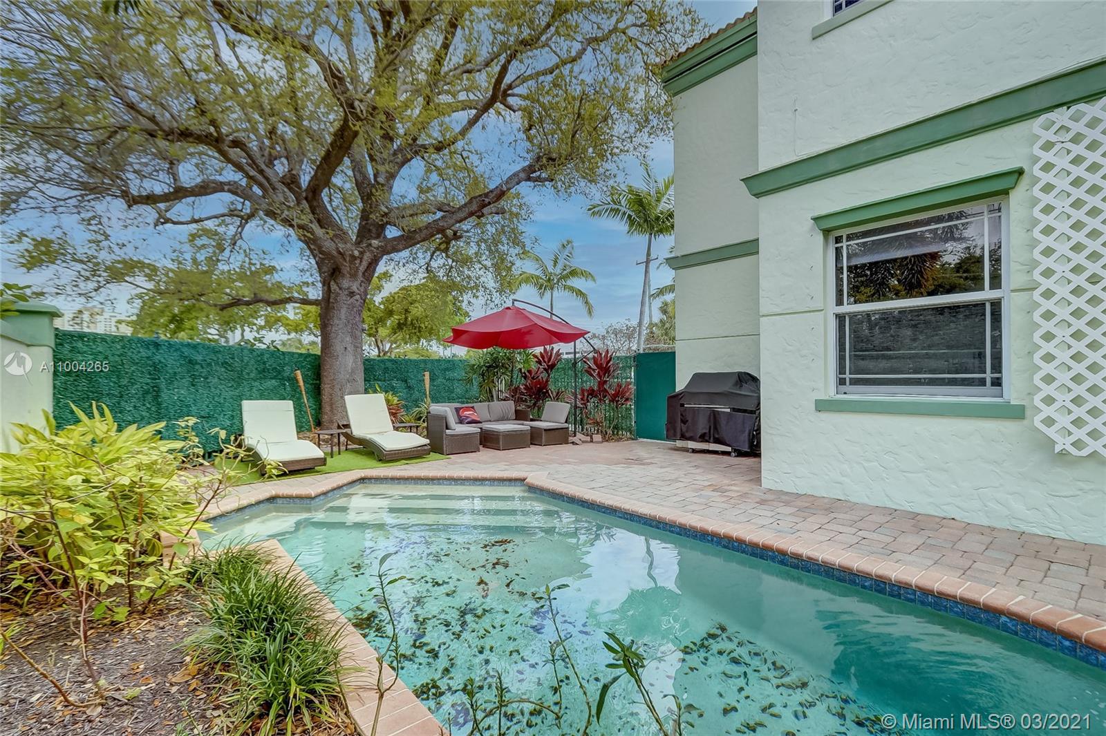 Come see this Hidden Gem in the heart of Fort Lauderdale. Largest yard of the Palani Villas, this beautiful 3/2.5 townhouse is a corner unit with two car garage, private swimming pool & garden in a quiet neighborhood. European hardwood cabinetry in kitchen & bathrooms. Granite countertops in kitchen & dinette, custom designer closets in all bedrooms, new tiled floors throughout the 2nd level. Jacuzzi tub, marble-top vanity & separate shower in master bath, newly remodeled guest bathroom, French doors open out to garden in living room/dinette. Impact windows upstairs/hurricane shutters downstairs. New AC Unit, security system, new stainless steel appliances, and fans throughout. Large storage room in the attic. Close to everything, few mins from Downtown Las Olas.