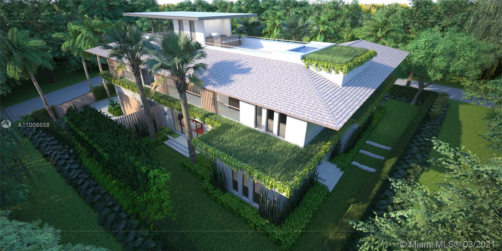 Complete approved project for a CMA Design, Architect, Cesar Molina 5941 SQFT under AC, 8517 SQFT total building 6 Bedroom 8 bath, Beautiful corner lot home with 3 levels, Front yard pool, Elevator, Enclosed 2 car garage Roof top cabana with bath, entertainment area with BBQ and roof top pool overlooking Key Biscayne, Biscayne Bay, and skyline. Ready to tear down and start construction. Tennant will leave March 23 Price is for land, plans and permit fees only. Cost of construction not included.