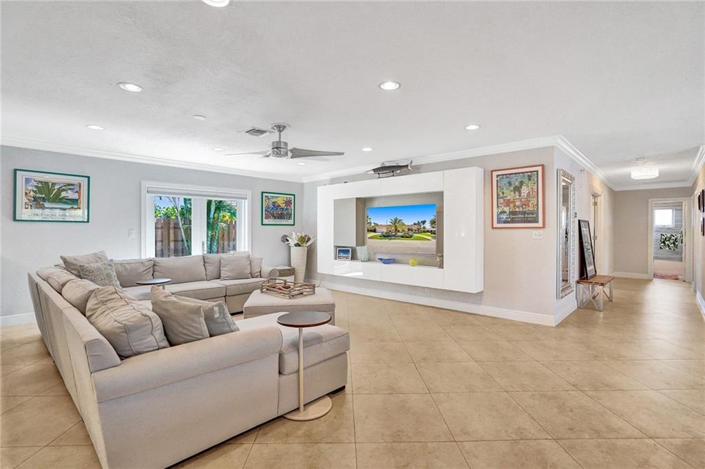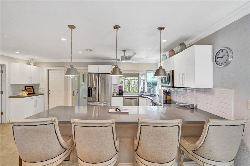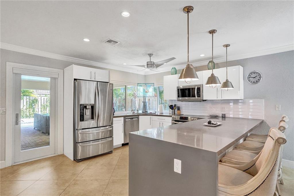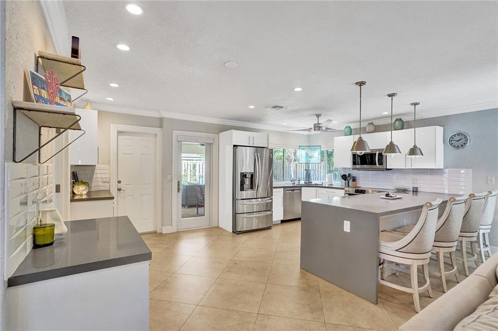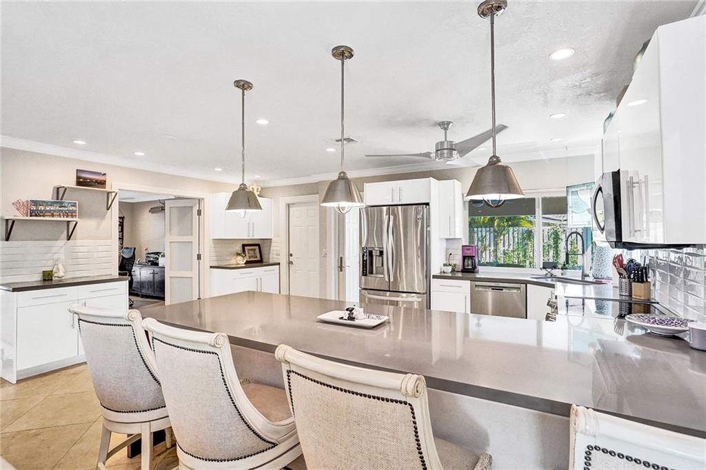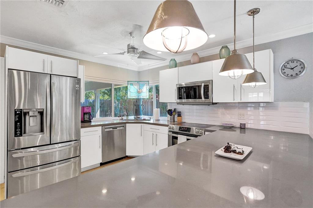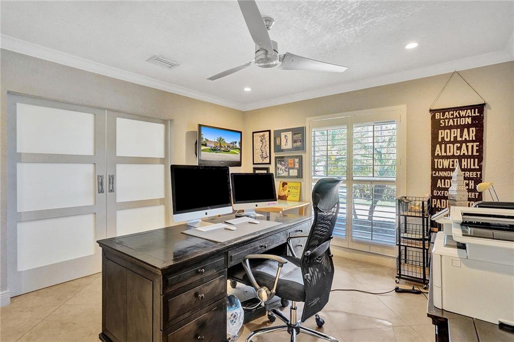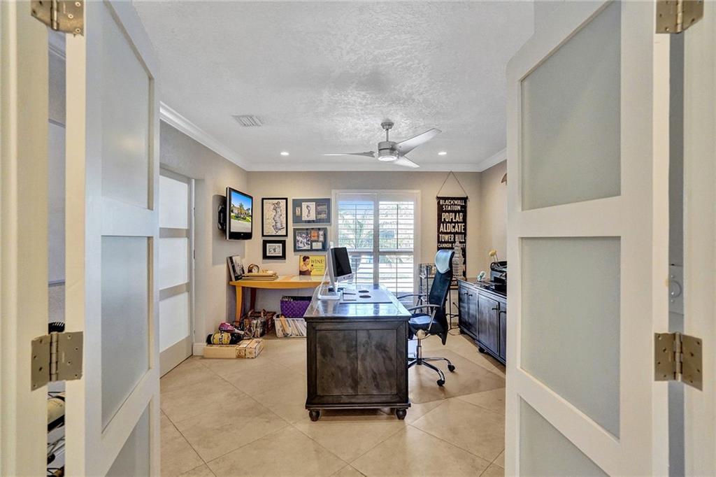 Come see this perfectly updated home located on one of the most quiet street's in Coral Ridge Country Club Estates. This three bedroom, two and a half bath home with an office has been totally remodeled and features impact windows and doors, plantation shutters, quartz marble in the kitchen and large open spaces. Enter the primary bedroom through double doors and featuring a walk-in closet with built-in cabinetry and separate tub and shower in the bathroom. Enjoy quiet afternoons relaxing underneath your covered porch by the pool and back yard. Low maintenance astro turf grass in the back and fabulous landscape lighting, pavered driveway and pool area. Only thing left to do is move in and enjoy. Submit your highest and best offer 3/8/2021 by 5pm
