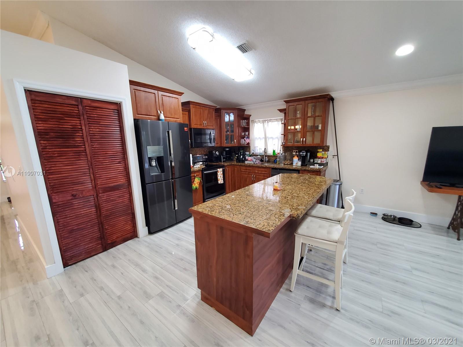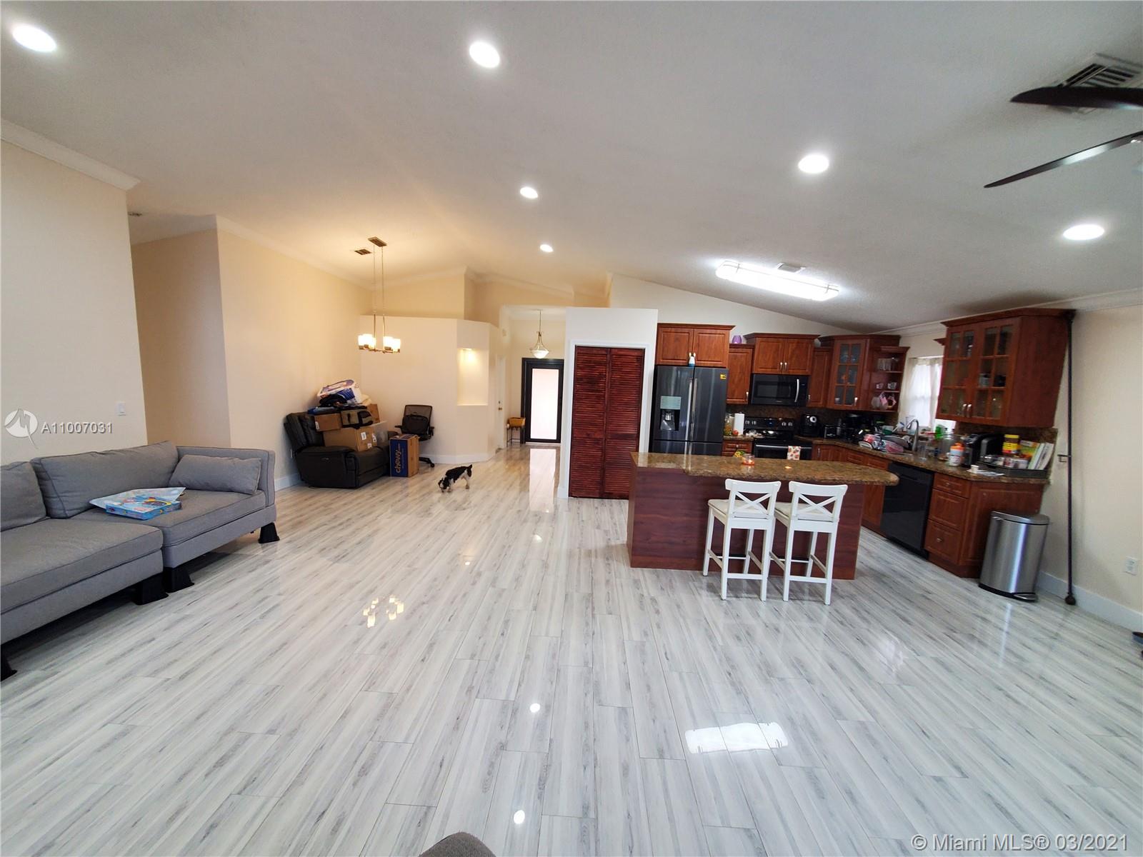 Ready to move in beautiful 3 Bedroom, 2 Bath, 2 car garage single story family home has updates through out. This hard to find gem is nestled in the Silver Lakes residences with its backyard right on Miramar PARK and Silver Lakes Elementary. The home features porcelain tiles that stretches' throughout the abode, a open floor layout that invites the family either to sit and relax around the kitchen island or in the living room with vaulted ceilings. Updates also include closets, bathrooms, fixtures, kitchen appliances, and security cameras. Five minutes away from I75 located right off of Miramar Parkway and SW 178th Ave.