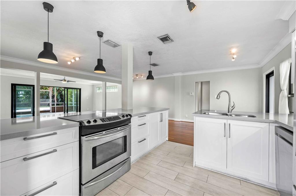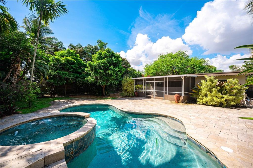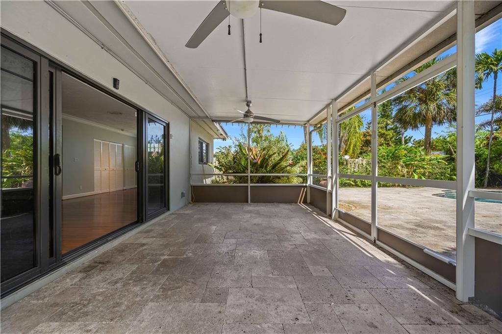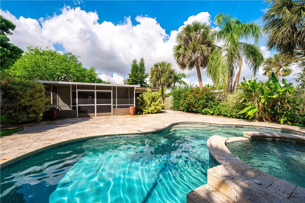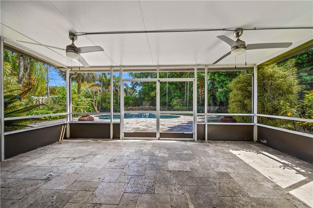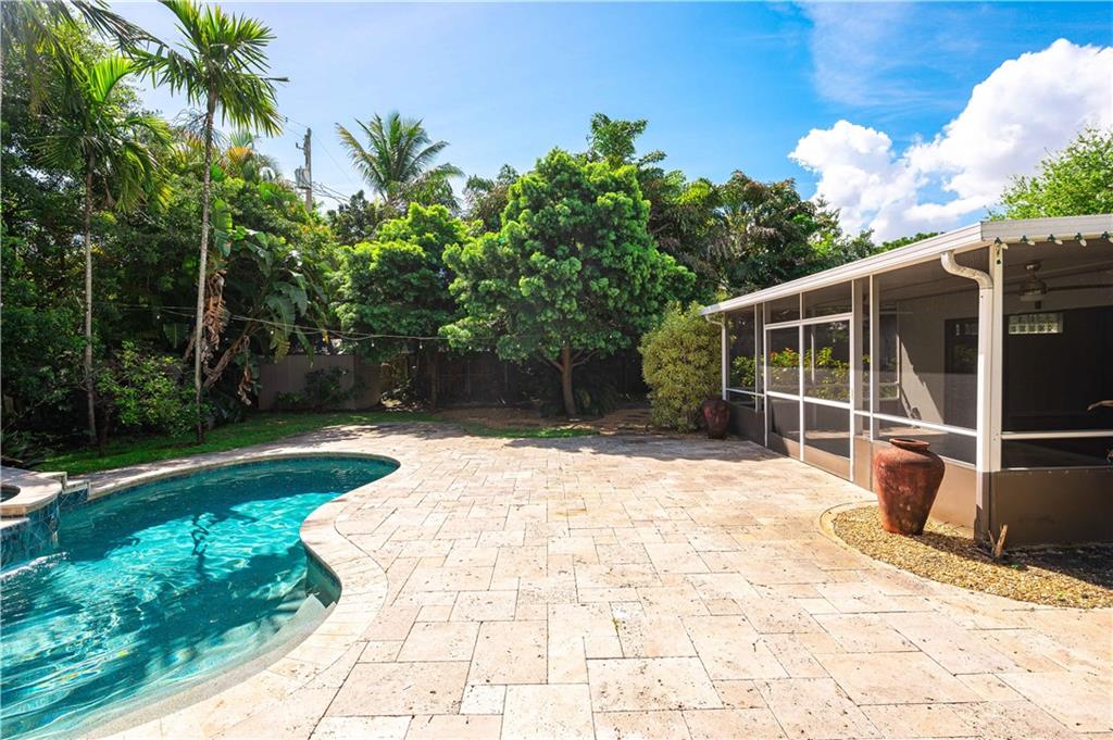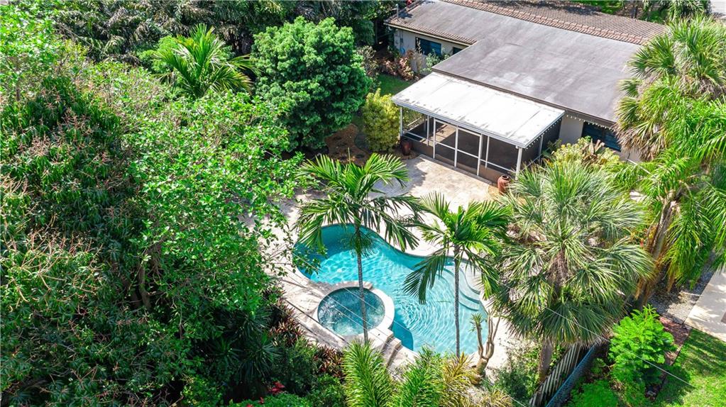 Poinsettia Heights 3BR/2BA contemporary offers an open floor plan with Euro-modern kitchen complete with Breakfast bar, stainless appliances and gleaming Quartz countertops open to living/dining areas. Walls of sliding doors open out from the adjacent Great room to a spacious screen porch offering more additional living space. The primary bedroom has bath in suite while the two guest rooms share a hall bath. The deep, fenced yard has an impressive sun terrace with resort pool, spa and storage shed.