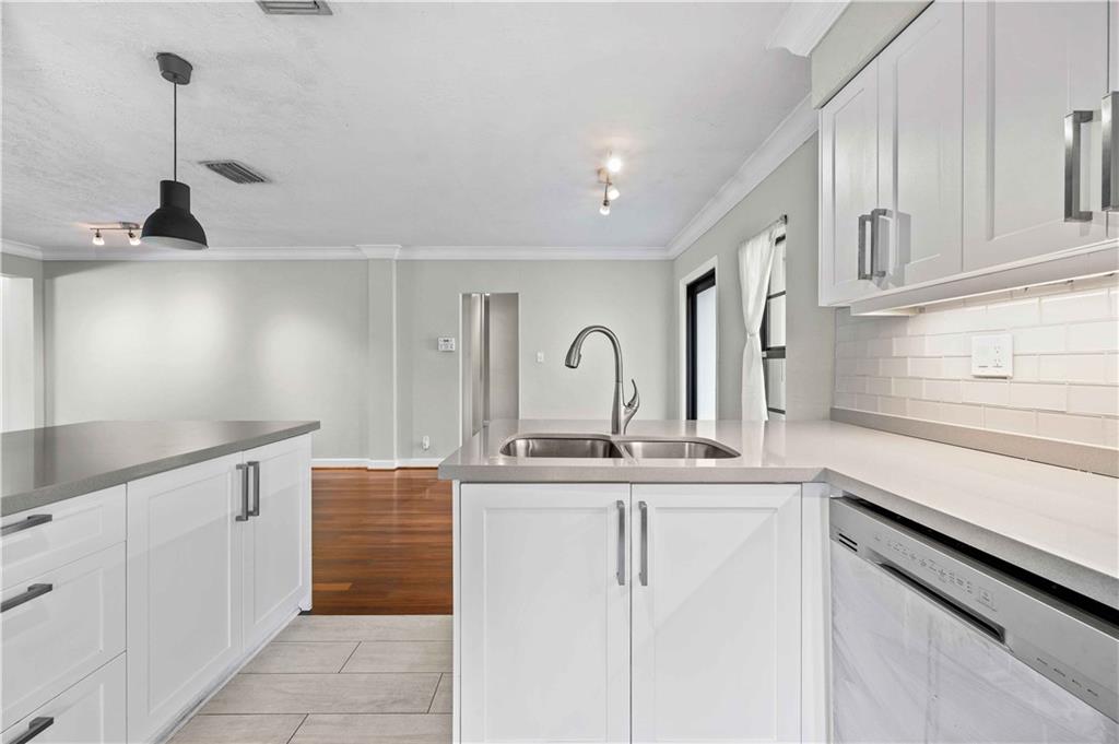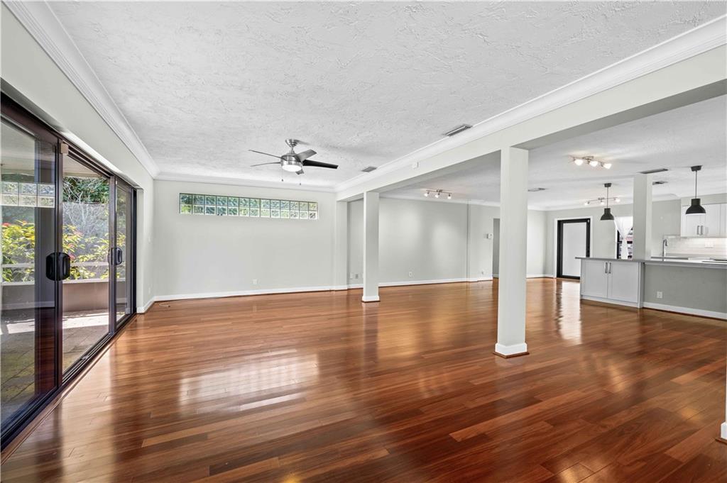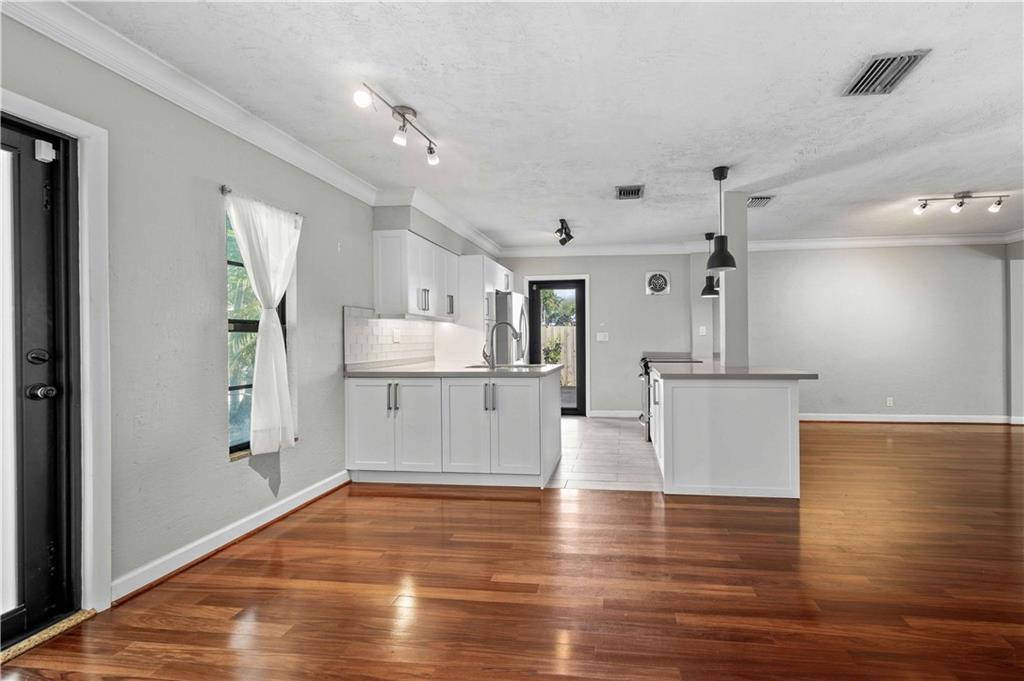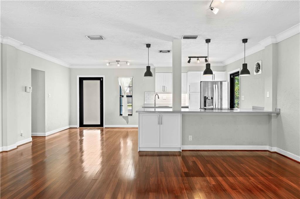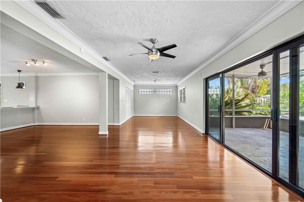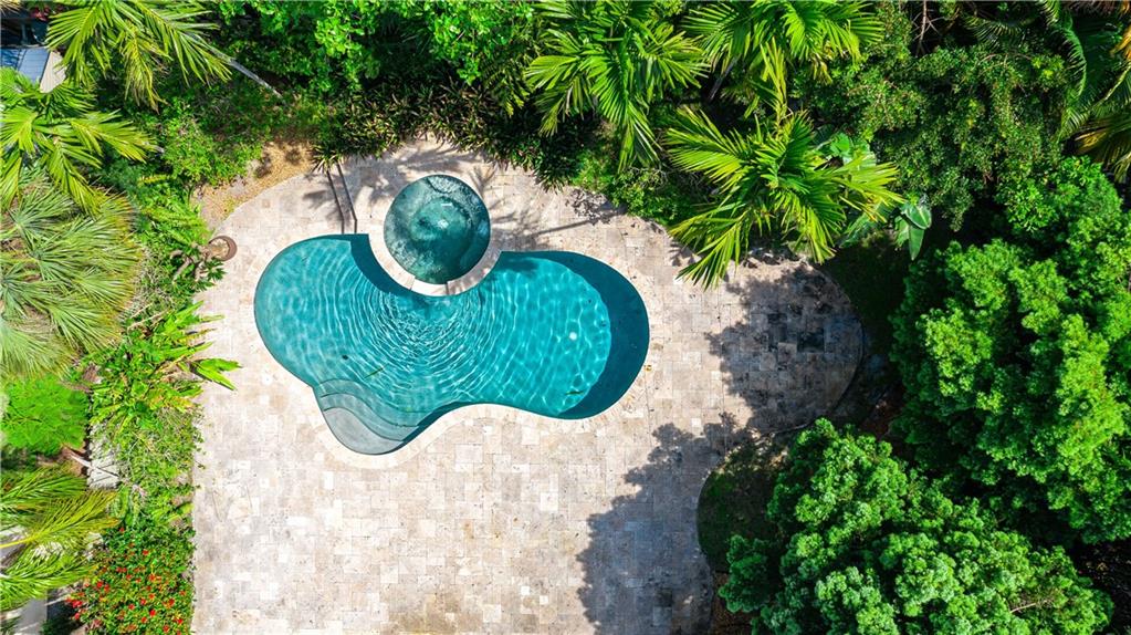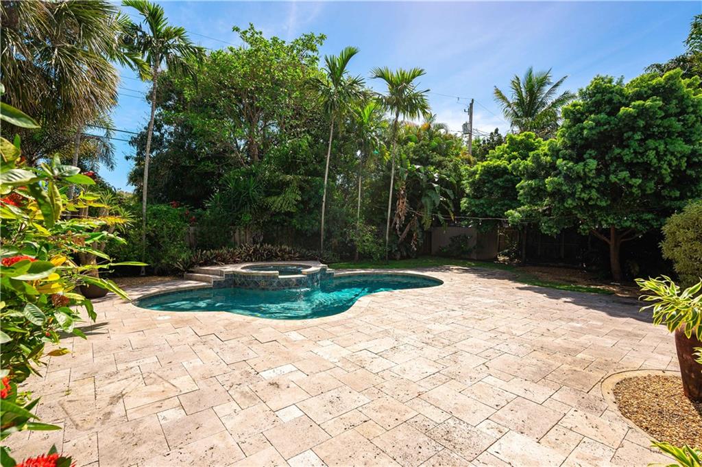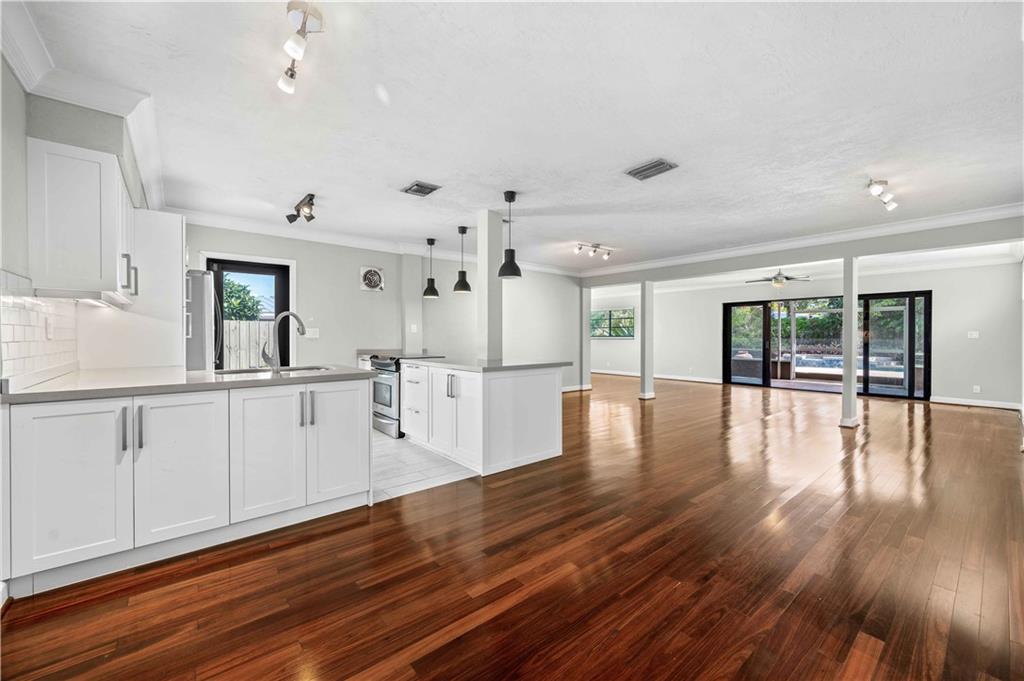 Poinsettia Heights 3BR/2BA contemporary offers an open floor plan with Euro-modern kitchen complete with Breakfast bar, stainless appliances and gleaming Quartz countertops open to living/dining areas. Walls of sliding doors open out from the adjacent Great room to a spacious screen porch offering more additional living space. The primary bedroom has bath in suite while the two guest rooms share a hall bath. The deep, fenced yard has an impressive sun terrace with resort pool, spa and storage shed.