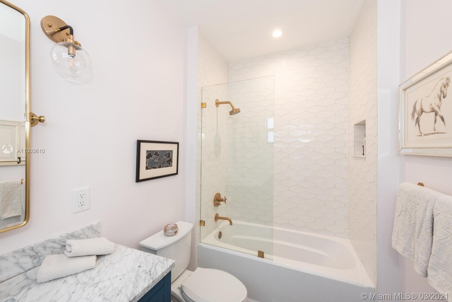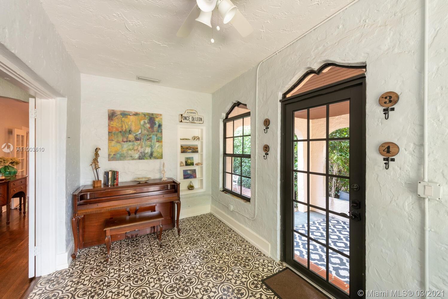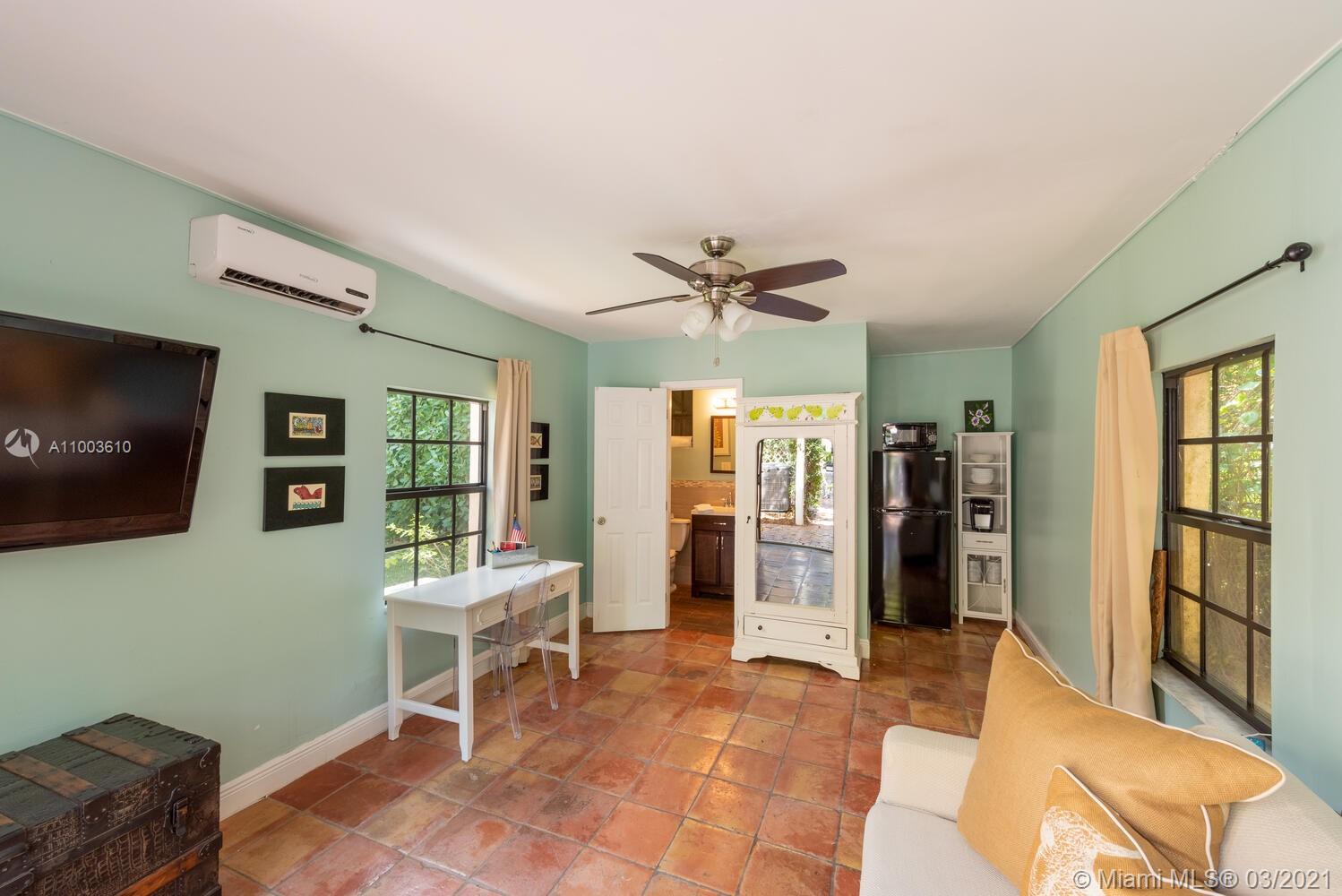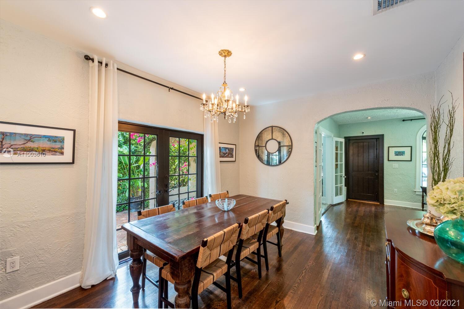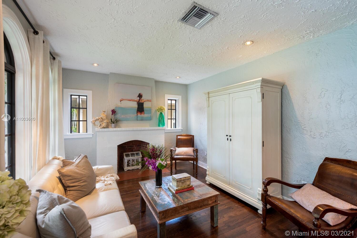 Situated on one of Coral Gables beautiful tree-lined streets & meticulously maintained & renovated. This 1926, Old Spanish, 3 bedroom 2 bath home has a detached 1/1 guest house, 2023SF total area & sits on a 5,000 SF lot. Fall in love with a charming outdoor space filled with lush landscape of ivy & orchids, a Porte-a-corchere, brick pavers & BBQ area great for family entertaining. Enter into an open space living area w/ beautiful Dade County Pine wood floors, wood-burning fire place, bonus room, large dining with French doors leading to the exterior & an updated kitchen w/ quartz countertops & newer s/s appliances. Arched IMPACT windows & doors allow lots of natural light flow through this home. Quiet street with no through traffic. Walking distance to Miracle Mile shops & restaurants!