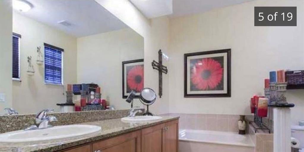 Beautiful Mediterranean style villa. Large master suite with large walk in closet. Two large bedrooms with walk in closets. Spacious eat in kitchen large cabinets with granite countertops. Master bath has a large tub with a separate shower. Ten foot ceilings give this home a large open feel. Private community pool and playground. The home is conveniently located close to major highways, excellent schools, shopping and restaurants.