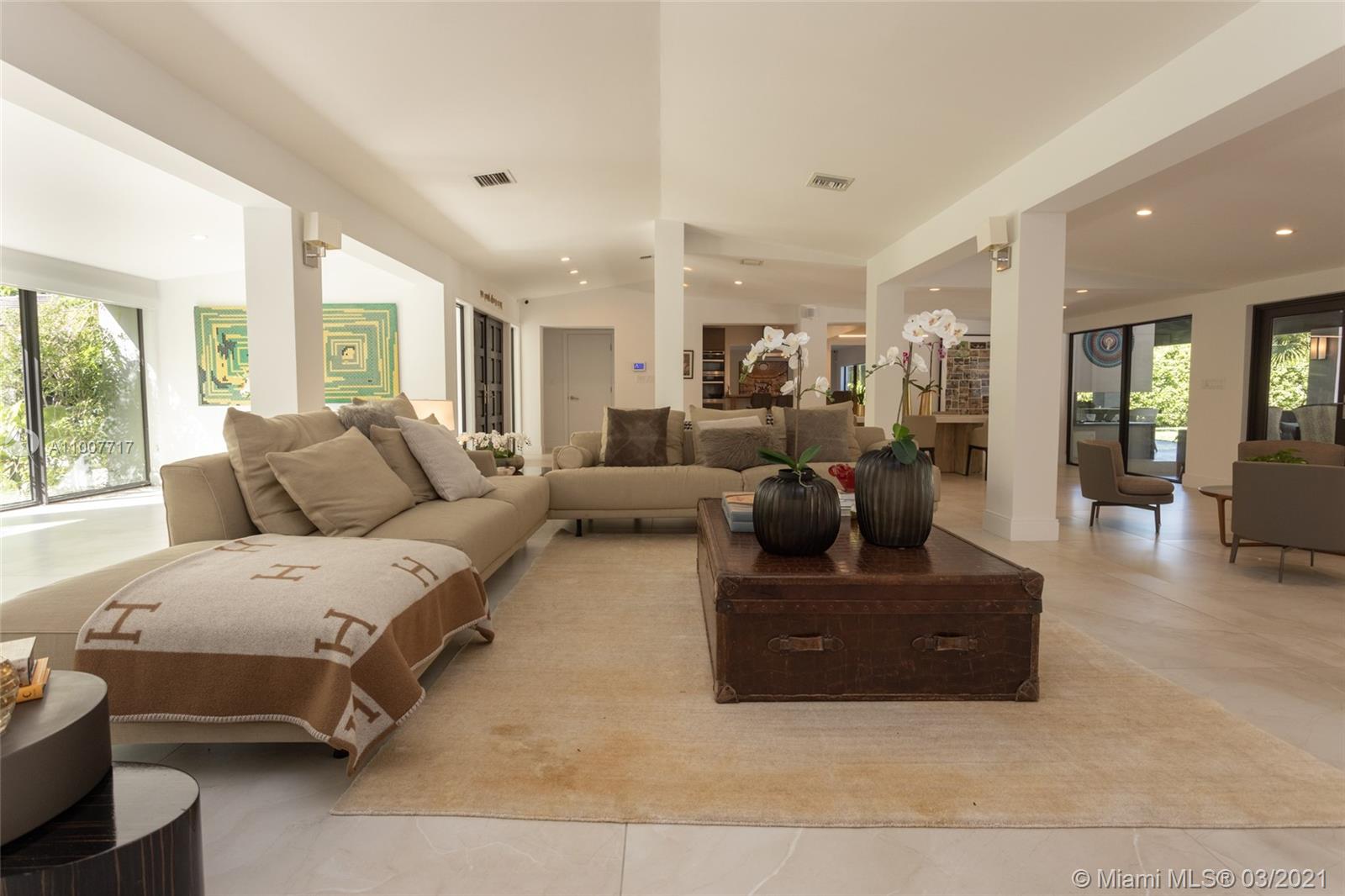 Elevate your life with the understated sophistication of this contemporary one story home nestled on landscaped acre among multi-million dollar homes in North Pinecrest. The clean lines, raised ceilings and walls of glass create a sanctuary in which to live, dine, work & entertain. It features a brand new kitchen, new floors and 3 new bathrooms. There are 5b/5b, bonus room & 3 car garage. The sublime private master wing boasts a two story ceiling, adjoining home office/gym, his & her closets & serene master bathroom. Phenomenal outdoor living & dining spaces raise the bar for the ultimate South Florida lifestyle complete with a fireplace, summer kitchen, pool and patio. From a butterfly garden to a 5 star treehouse, this home delights the soul. Feeling RIGHT AT HOME has never meant more.