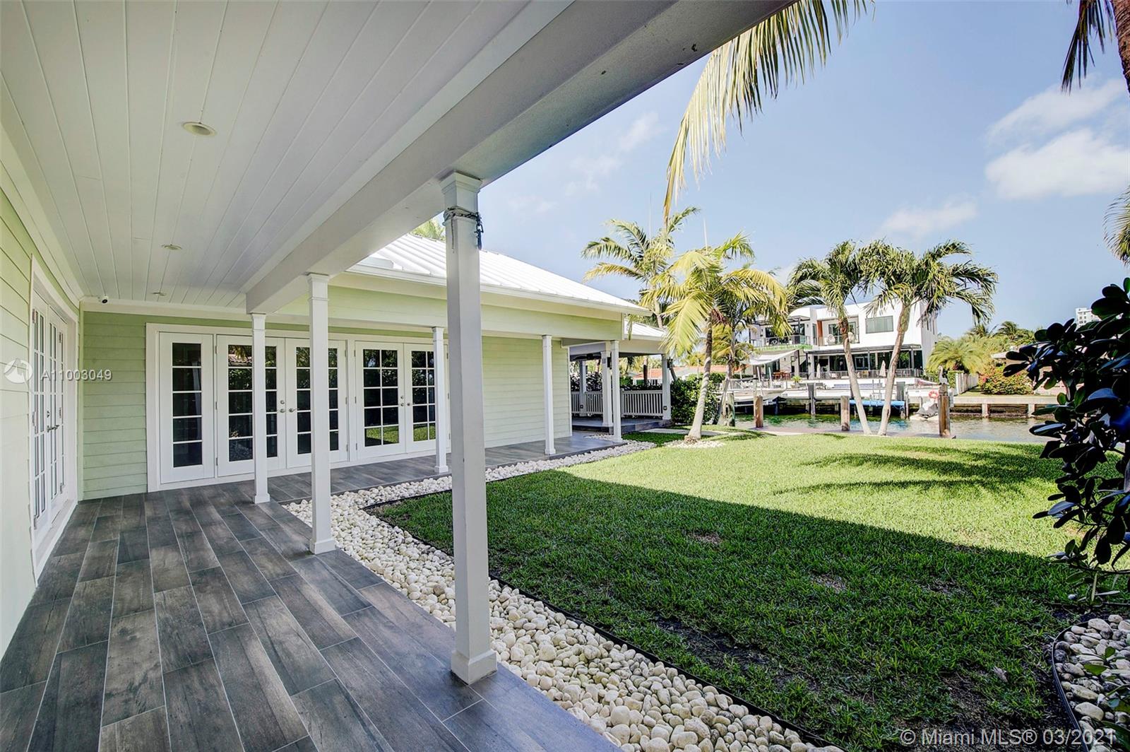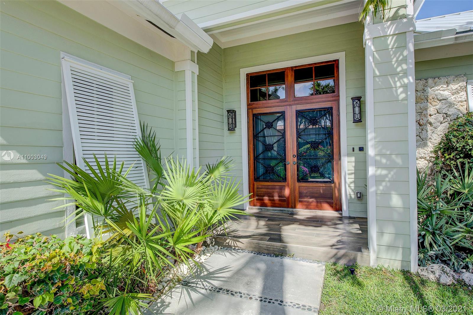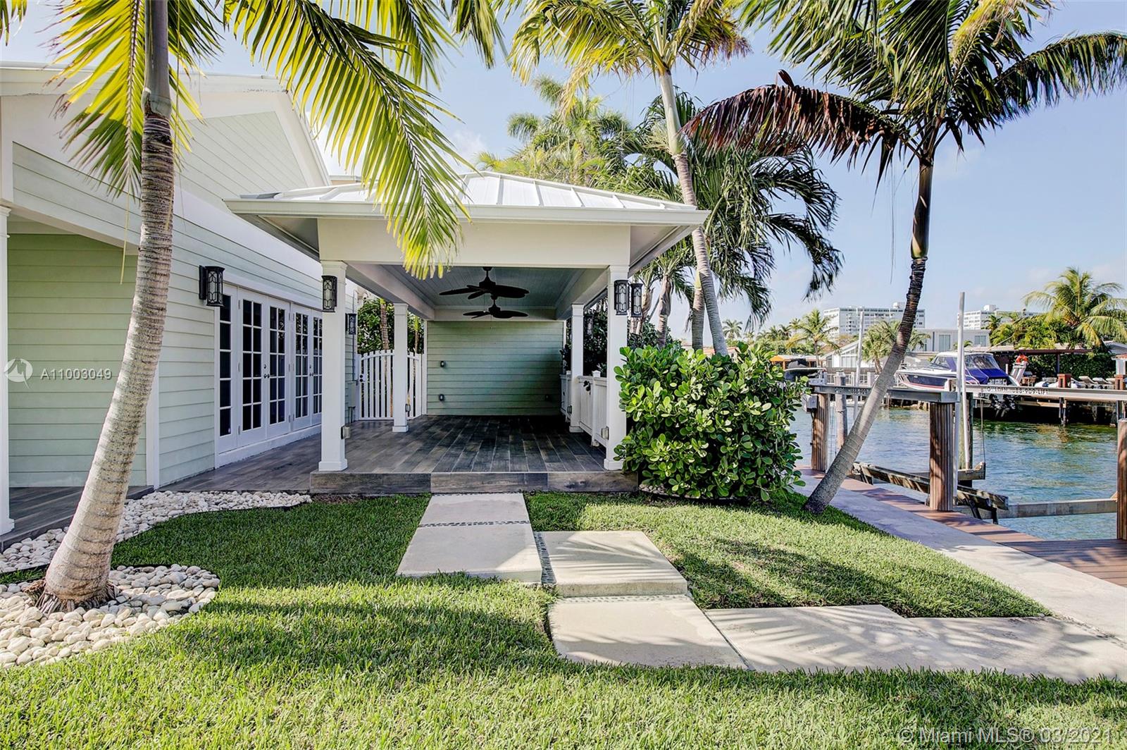 Completely remodeled in 2015 this Sans Souci gated Key West inspired home encompasses the perfect balance of sophistication, attention to details, and top-of-the-line construction. Situated two lots from the bay, this home comes with an incredible angle bay view and provides any boat enthusiast with direct access to the open waters. Wide-open floor plan, custom-built kitchen, and high-quality red oak boards flooring, redone spacious bathrooms with natural stone. From the roof to the windows and doors that meet the highest quality standard. 3 zones A/C, Camera system, Alarm, Automatic driveway fence. THIS HOME IS A MUST SEE!