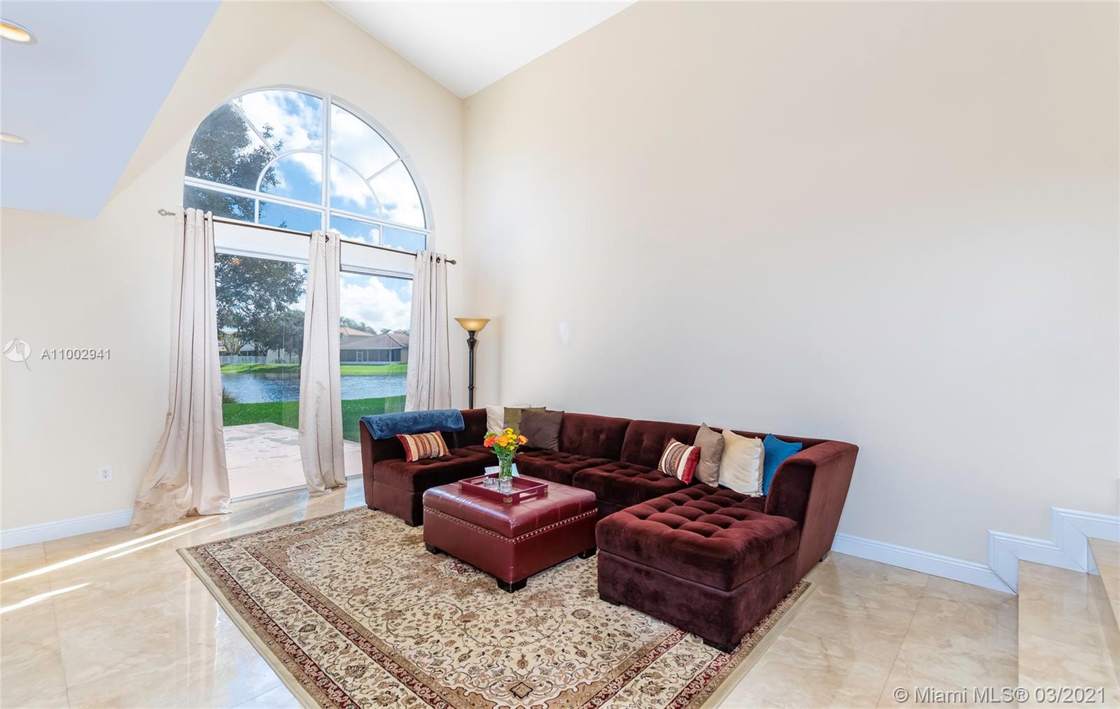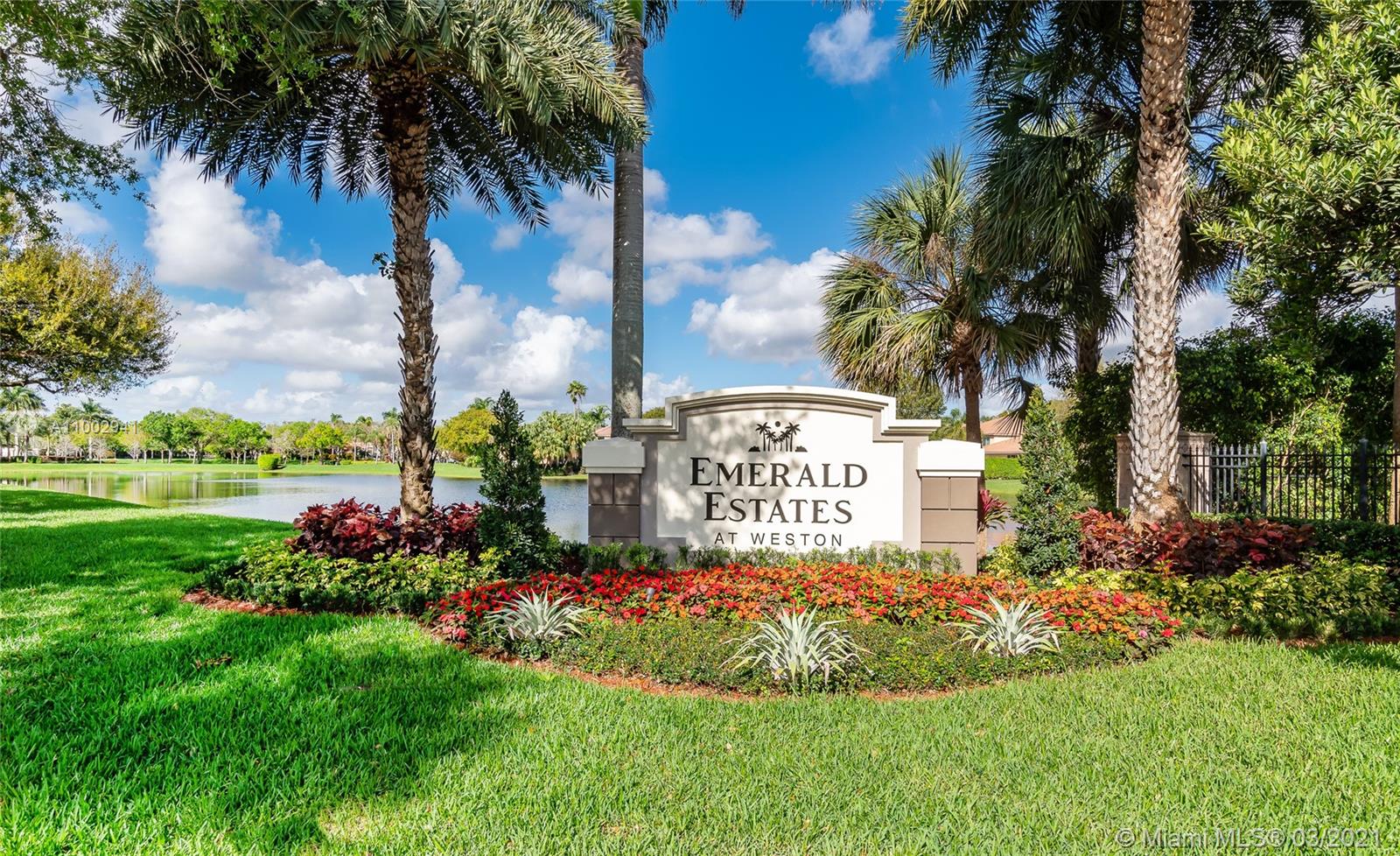 BRIGHT AND SPACIOUS WATER FRONT HOME LOCATED ON A QUIET AND PRIVATE CULDESAC AT EXCLUSIVE EMERALD ESTATES IN THE HEART OF WESTON. 3 BED / 2.5 BATHS PLUS DEN, 2 CAR GARAGE, OVERSIZED PIE SHAPED LOT. STEP INSIDE TO VAULTED SOARING CEILINGS & AN OPEN FLOOR PLAN WITH PANORAMIC AND GORGEOUS VIEWS TO THE LAKE. MODERN & ELEGANT IMPORTED TILE FIRST FLOOR THROUGHOUT. LARGE EATING KITCHEN WITH LUX GRANITE COUNTERTOPS & FULL BACKSPLASH, STAINLESS STEEL APPLIANCES. GARAGE HAS BEEN CONVERTED INTO A ROOM. PROPERTY FEATURES UPGRADED BATHS WITH GRANITE COUNTERTOPS & DUAL SINKS IN THE MASTER WITH A SEPARATE SHOWER AND ROMAN TUB. EMERALD ESTATES IS A SOUGHT AFTER GATED COMMUNITY WITH 24 HOURS SECURITY, POOL, GYM, PRECIOUS LANDSCAPING, CLUBHOUSE AND MUCH MORE. ENJOY SE FLORIDA AT ITS BEST!