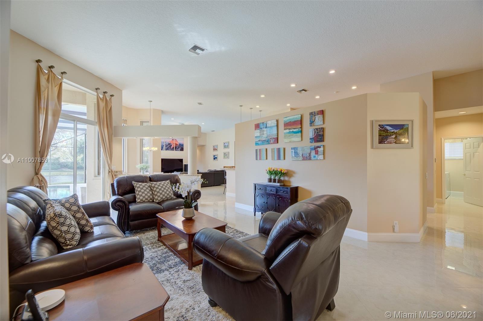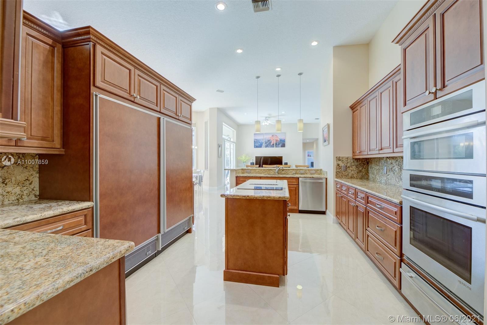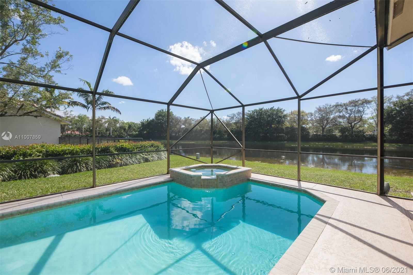 Fall in love with the breathtaking lake views the moment you enter this immaculate designer 5 bed plus office pool home in the desirable community of The Islands. Shows like a model, substantially renovated with gourmet kitchen featuring top of the line Jenn Air Appliances, Sub Zero refrigerator & gorgeous granite counter tops. Triple split floor-plan Master with duel walk-in closets & gorgeous updated master bath. 2 bedrooms share a Jack & Jill bathroom plus a Junior Suite with it's own bathroom perfect for in-laws or guests. Cabana bath provides access to your over sized screened in patio & sparkling pool. Roof 2017, 2-zone AC, New water heater, magnificent 24" porcelain tile plus wood floors in bedrooms, hurricane shutters, A-Rated Weston Schools! Absolutely gorgeous and move-in ready!