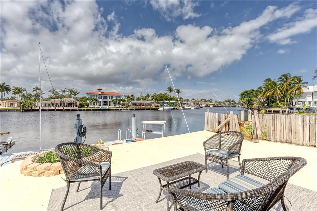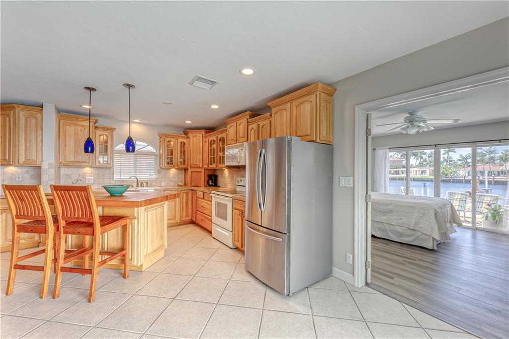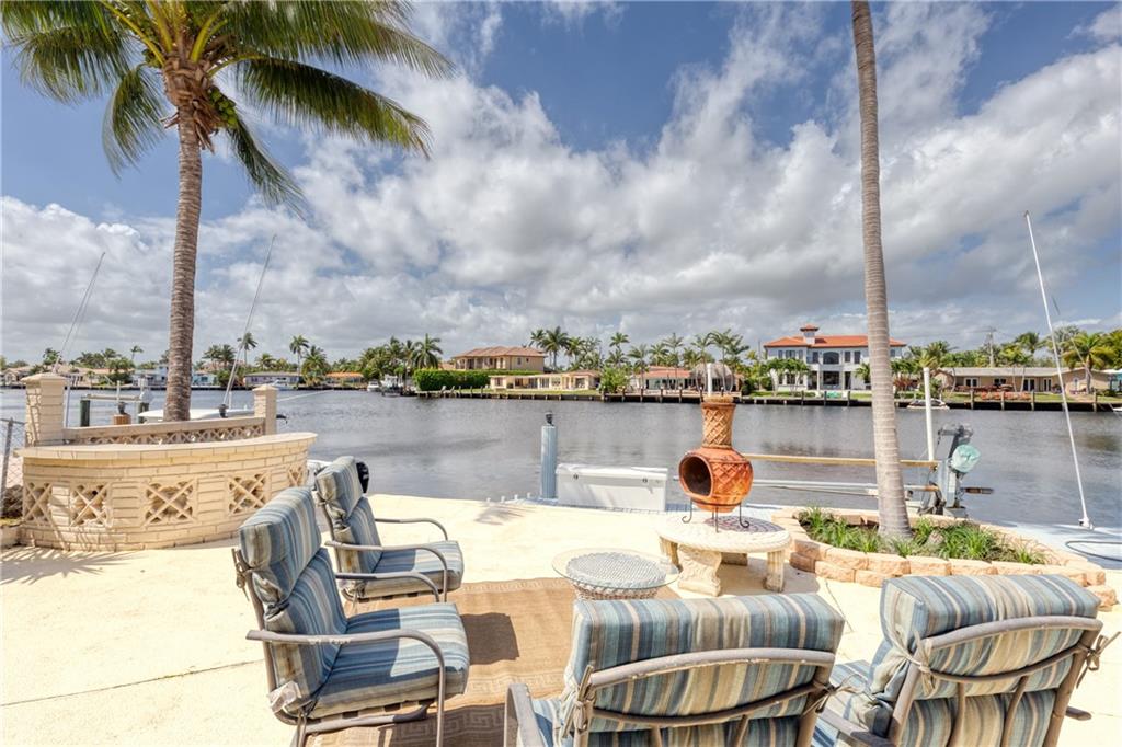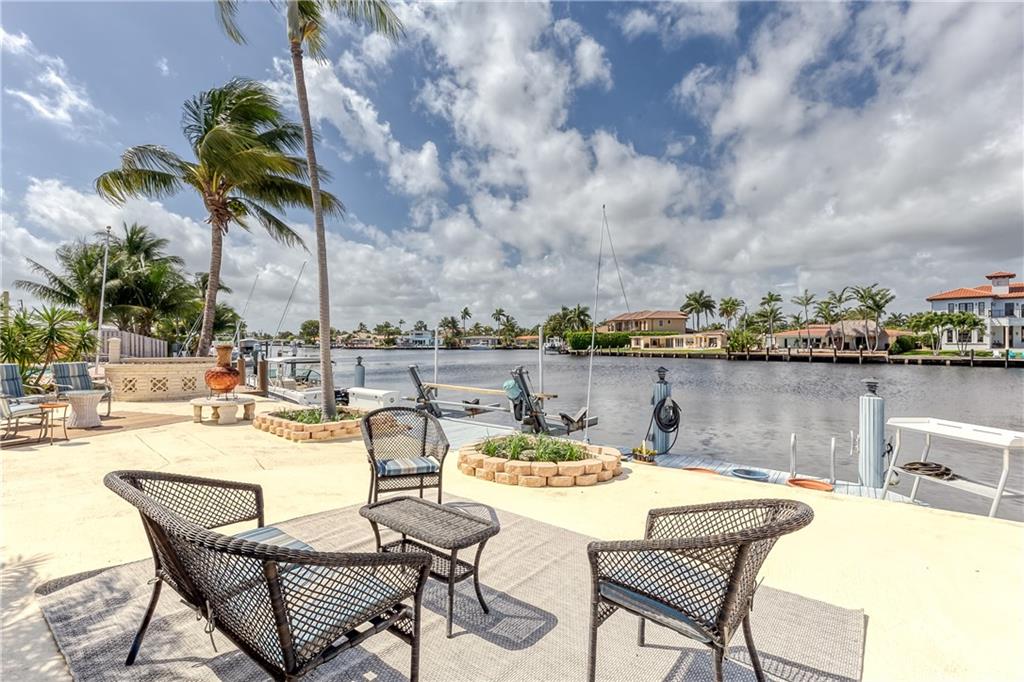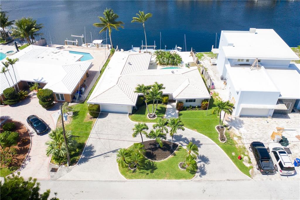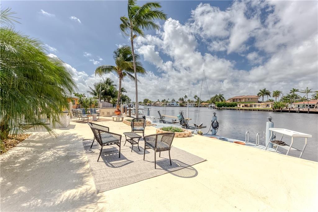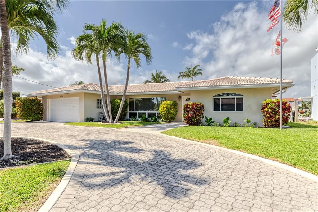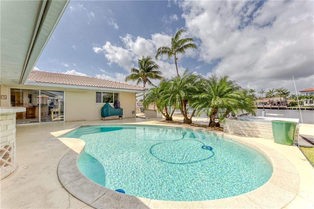 Located on a beautiful street & featuring 3 beds, 2 baths, a 2 car garage, indoor laundry room & a split floor plan. Incredible waterfront view on a wide canal & wide turning basin. A true boaters paradise. Primary bedroom, guest bedroom & both living areas look out to the open water. Kitchen is open with a butcherblock island, great counter space & lots of storage. Walk right out to the backyard to BBQ & enjoy time with family & friends. The bedrooms are bright & cheerful & offer great closet space. The primary bedroom has a large walk in closet, bathroom w/ double vanity, linen closet & sliding doors to the patio. Relax on the back patio & watch the boats pass by, or lounge all day by the pool. Come enjoy the most incredible sunsets in Pompano! South Florida living!