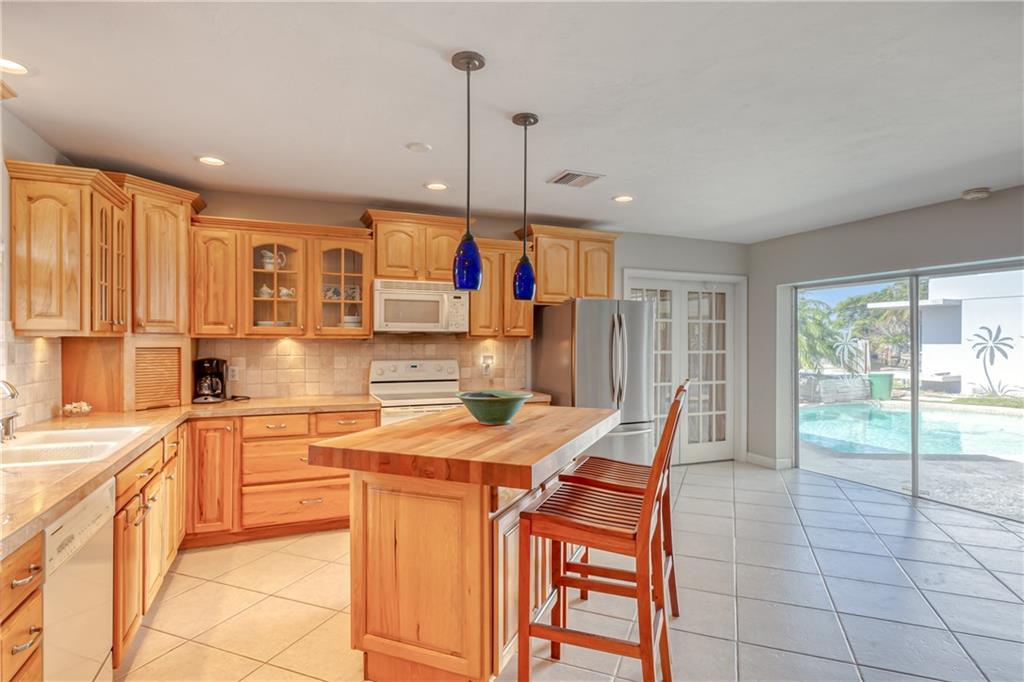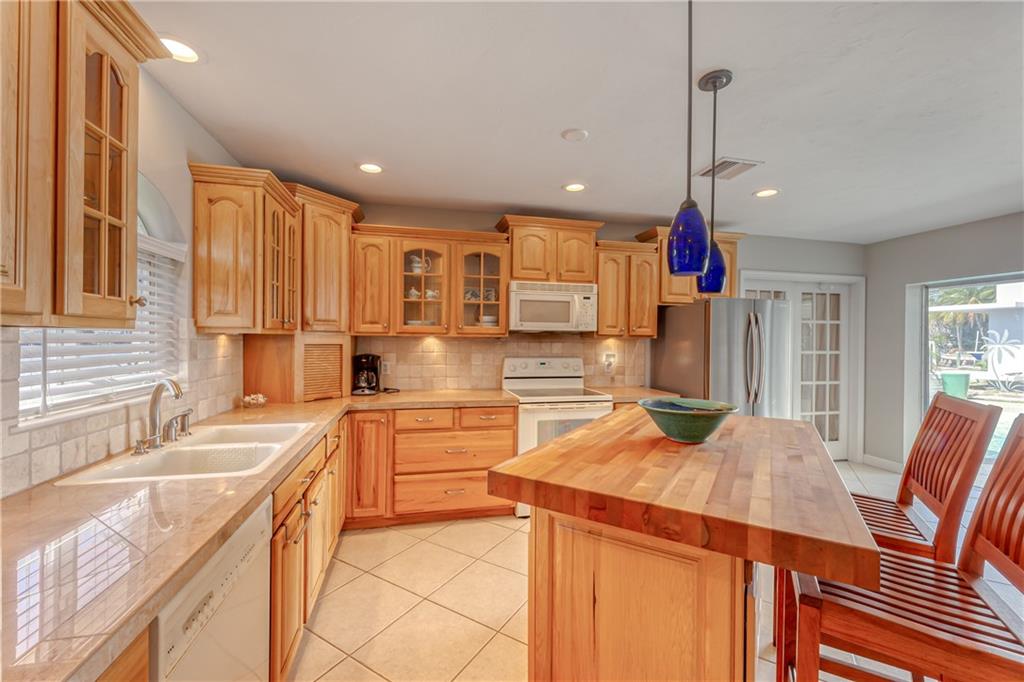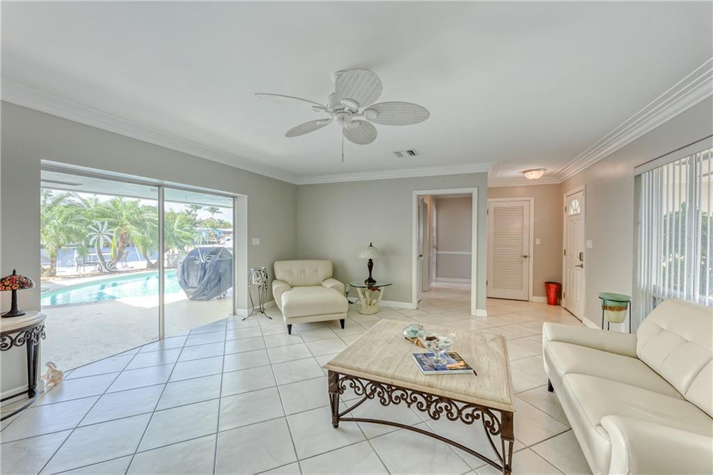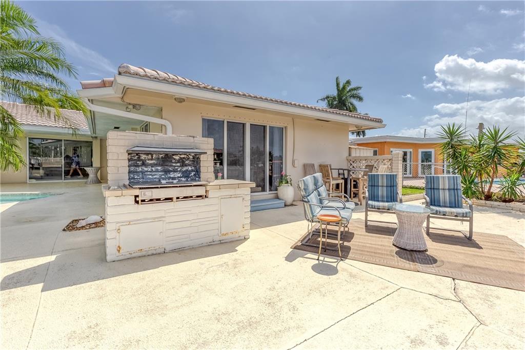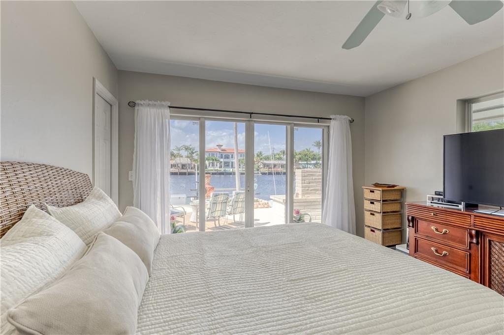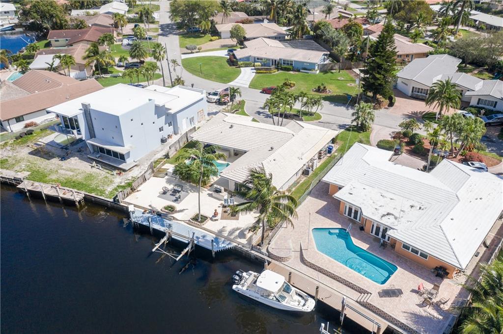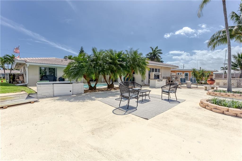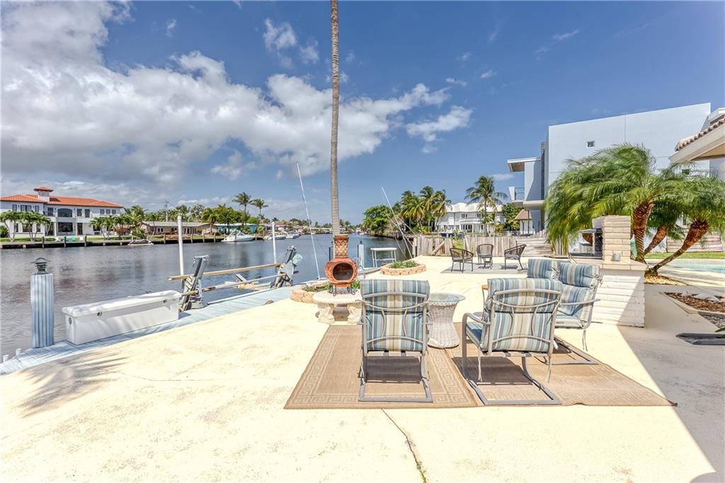 Located on a beautiful street & featuring 3 beds, 2 baths, a 2 car garage, indoor laundry room & a split floor plan. Incredible waterfront view on a wide canal & wide turning basin. A true boaters paradise. Primary bedroom, guest bedroom & both living areas look out to the open water. Kitchen is open with a butcherblock island, great counter space & lots of storage. Walk right out to the backyard to BBQ & enjoy time with family & friends. The bedrooms are bright & cheerful & offer great closet space. The primary bedroom has a large walk in closet, bathroom w/ double vanity, linen closet & sliding doors to the patio. Relax on the back patio & watch the boats pass by, or lounge all day by the pool. Come enjoy the most incredible sunsets in Pompano! South Florida living!