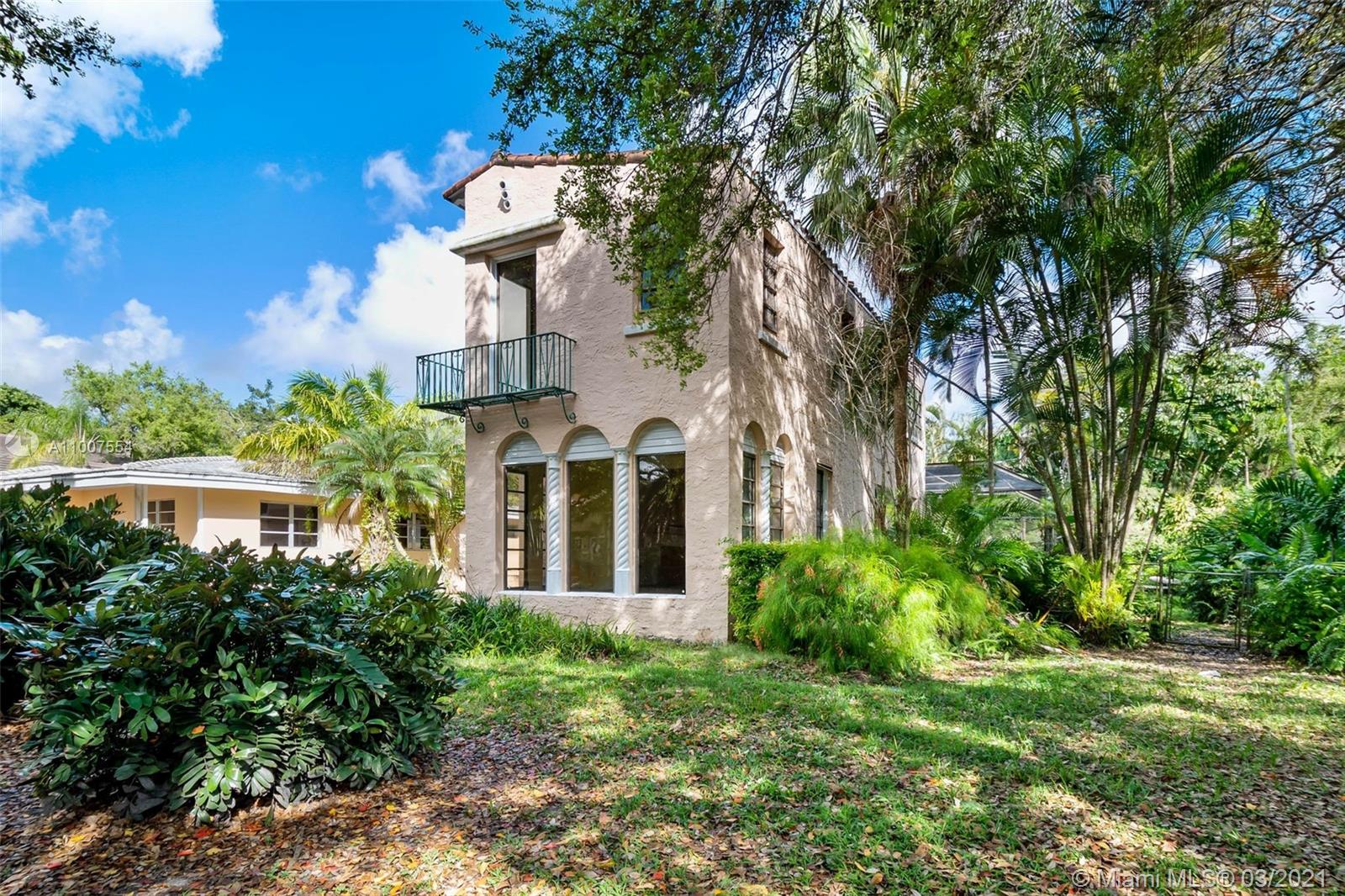PROPERTY ONLY TO BE SHOWN TUESDAY 3/16 3pm-6pm & WEDNESDAY 3/17 10am-1pm. ALL BEST AND FINAL OFFERS DUE BY 5 PM THURSDAY 3/18. Old Spanish gem awaits your touches to bring it back to glory! Situated on closed street, so there is no cut-through traffic on this peaceful street in a beautiful section of Coral Gables. Room to expand east side of the property. No historic designation. This double lot features plenty of space to expand the structure on east side of the property or enjoy the ample yard space. Walking distance to restaurants, grocery store and other retail amenities as well as Coral Gables Wayside Park. In-law quarters has been rented in the past with separate entrance. Close proximity to Coral Gables Country Club, Venetian Pool, Biltmore Hotel pool/golf/gym/tennis & more!