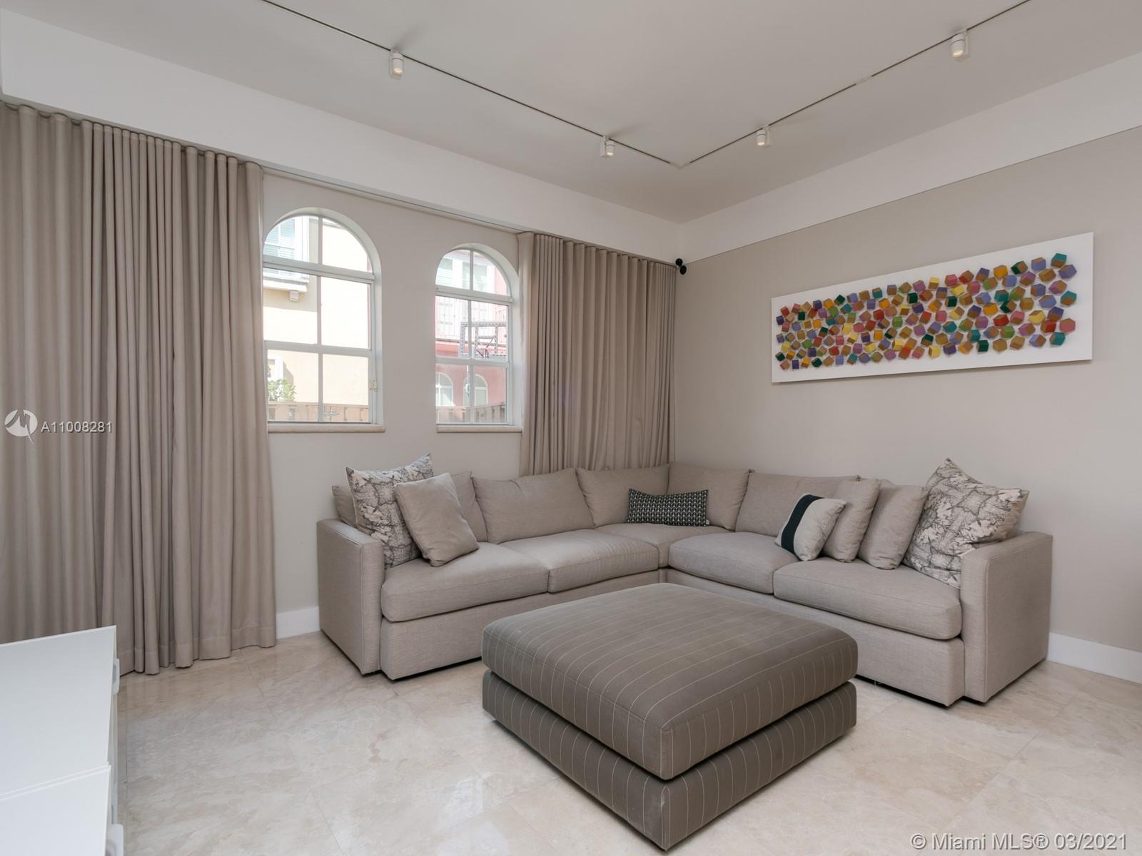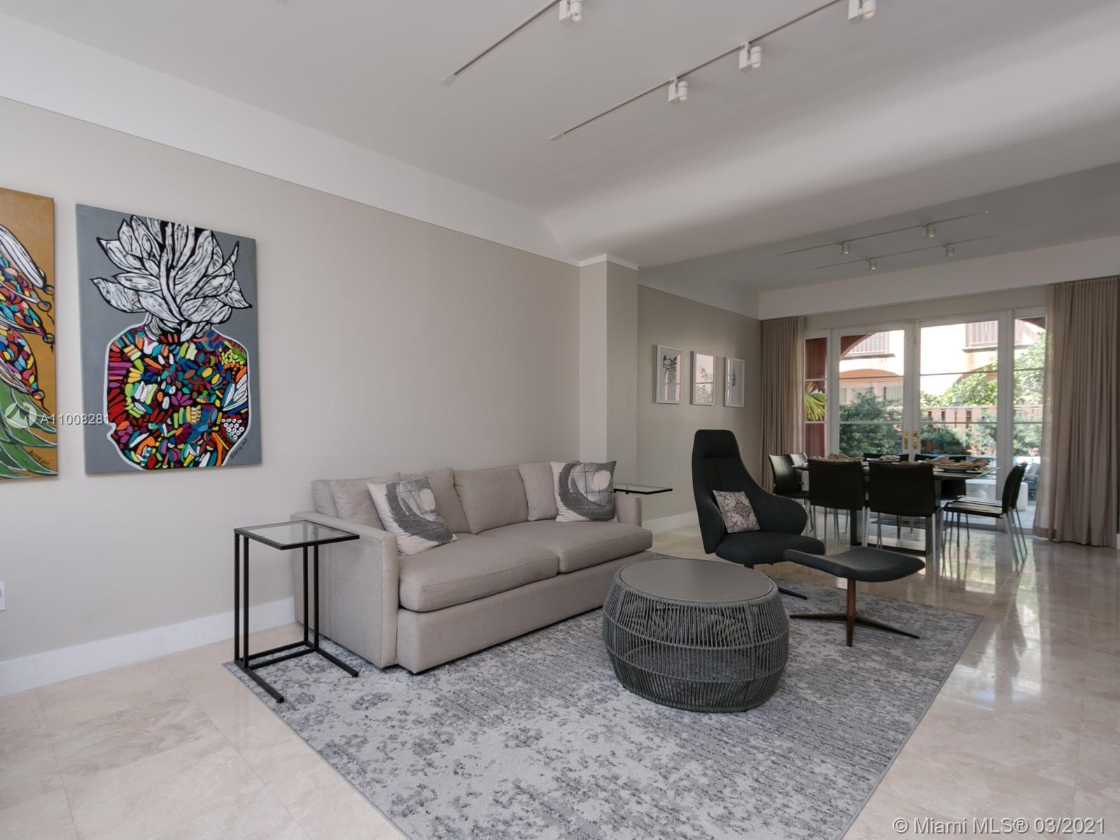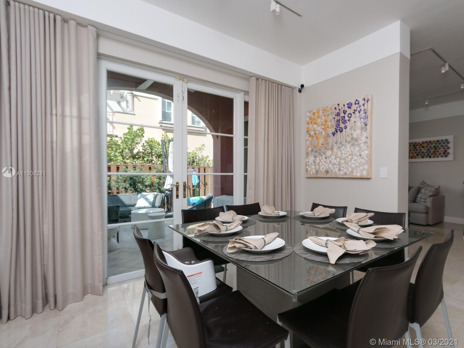 A small condo of only ~65 units gives it a private feeling with a Positano-style architecture. Marble floors all around with wood on each bedroom (all upstairs). The home was upgraded with design lighting, built-in curtains, stainless steel appliances, and accordion shutters. Very large master bedroom with double-height ceilings, a walk-in closet, and an additional built-in closet for him. Very pet-friendly and conveniently located for a family in front of Veterans Park.