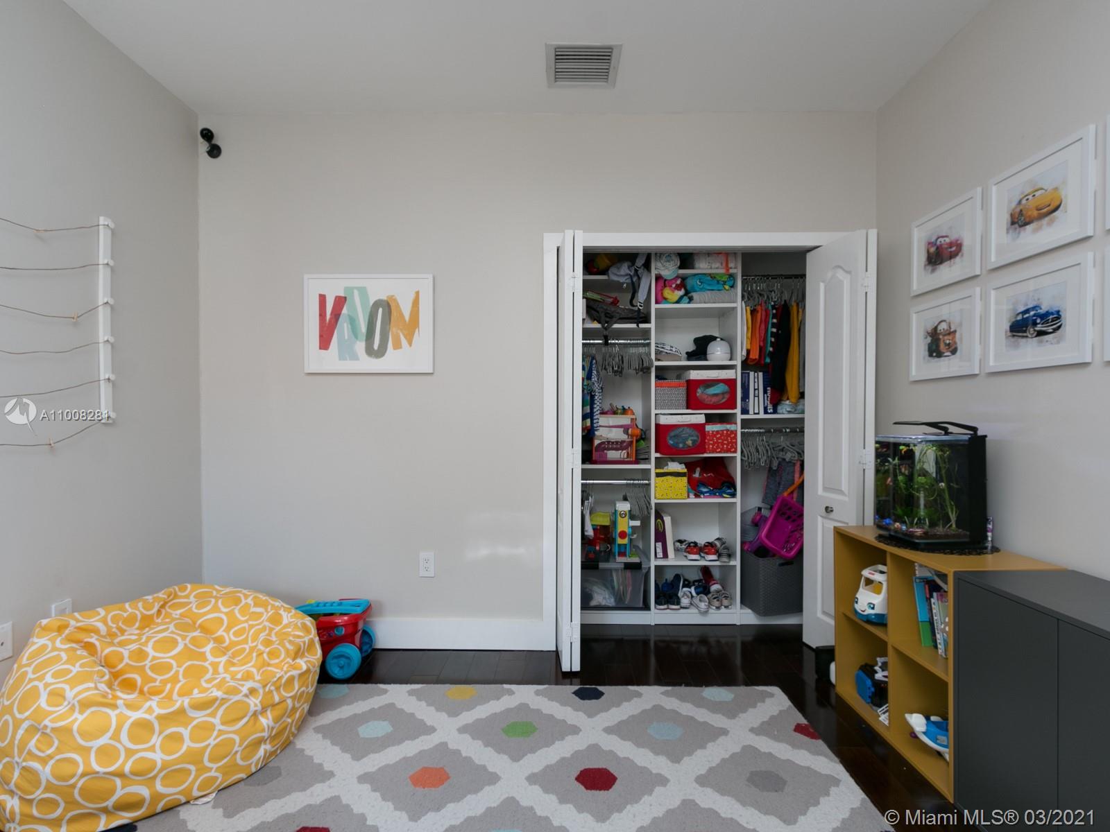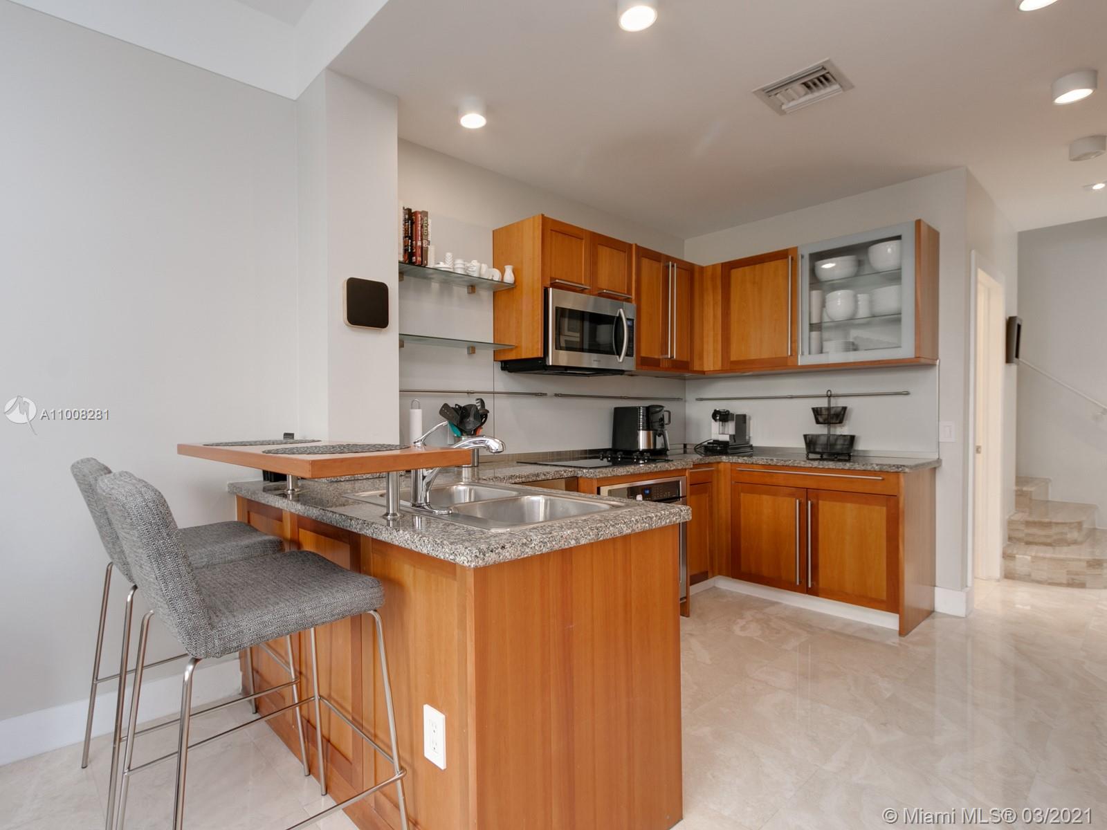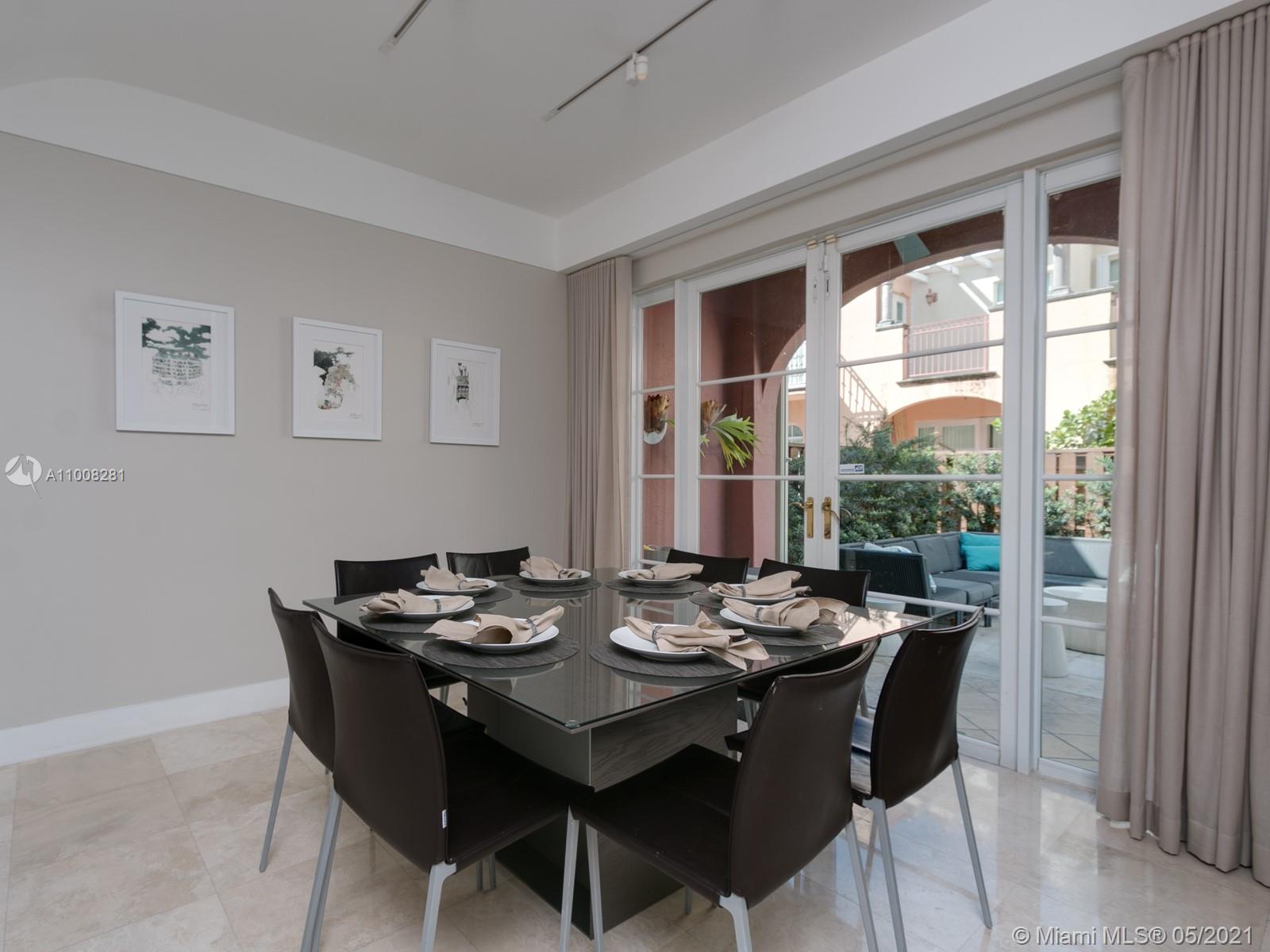 A small condo of only ~65 units gives it a private feeling with a Positano-style architecture. Marble floors all around with wood on each bedroom (all upstairs). The home was upgraded with design lighting, built-in curtains, stainless steel appliances, and accordion shutters. Very large master bedroom with double-height ceilings, a walk-in closet, and an additional built-in closet for him. Very pet-friendly and conveniently located for a family in front of Veterans Park.