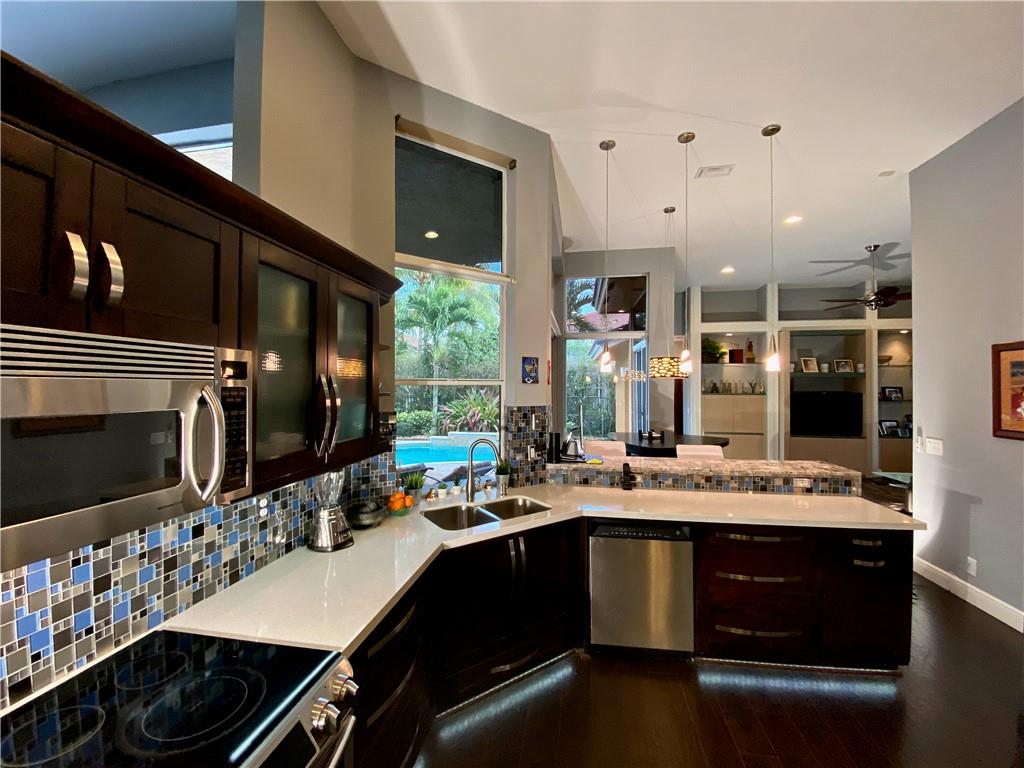 Beautifully upgraded well maintained two story home in Oakbrook in Weston Hills. New Roof 2020. Upgraded kitchen with quartz countertops and stainless steel appliances. Fenced back yard around pristine pool. Custom floor plan with second story addition. Three bedrooms downstairs and two bedrooms upstairs. Upstairs could be used as a media room and office or in-law suite with huge room and office with a storage room. Impact glass on second level. Expansive laundry room with tons of storage.