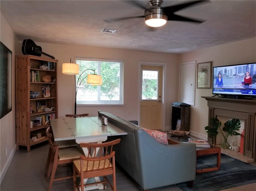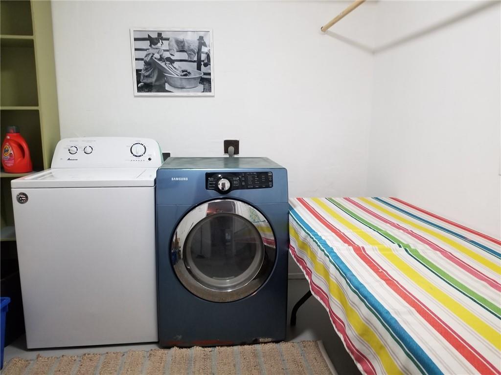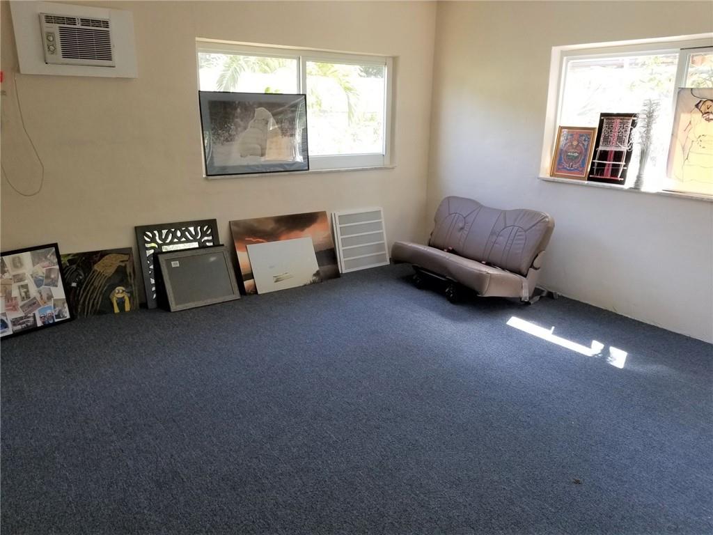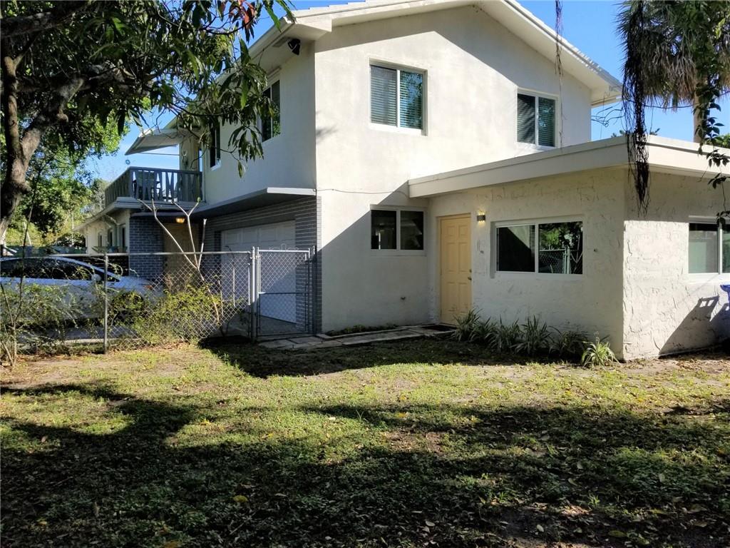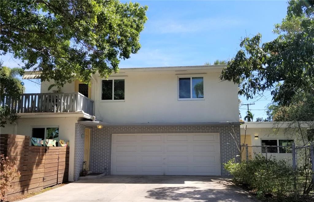 Unique layout offers common entry to 2/1 apartment (up) with balcony - set up as vacation rental called The Squirrel Upstairs. Downstairs has a huge bedroom (20x14), walk-in closet, large bathroom & Terrazzo floors. Good size living room & dining area combo with wood laminate flooring (Terrazzo under). The oversized 2-car garage (24x22) has a laundry room and 1/2 bath. There is an 'office' on the side of garage with flat roof replaced in 2013. Updated in past few years: Impact glass, doors & Broten garage, 2 a/c units (up & down), elec panels, 2 water heaters, fans, lighting, garage 1/2 bath, washing machine, stove, interior/exterior paint & tile roof got elastomeric coating 2019. Just minutes from everything - beach, airport, downtown, Whole Foods/Publix, Tap 42, I-95 & 595, Harbor Shops