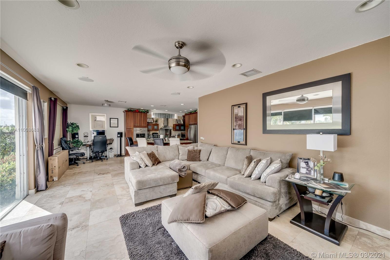 Just under 2200 sqft of living space in this move in ready 4/2.5 in the fabulous gated community of Riviera Isles. Open floor plan with soaring ceilings in the spacious living room. Beautiful travertine flooring throughout the 1st floor. Gourmet kitchen with all top of the lines s/s appliances, granite counter tops, and wood cabinets that overlooks the expansive family room. Large master suite with huge walk-in closet, and beautifully redone master bath featuring dual sinks. custom shower, and separate tub. 4th room is an office off of the master suite. Wood flooring on the stairs, hallway, and 4th room. Private backyard with views of the canal, and no one behind you. Community features, pool, clubhouse, exercise room, and the list goes on.