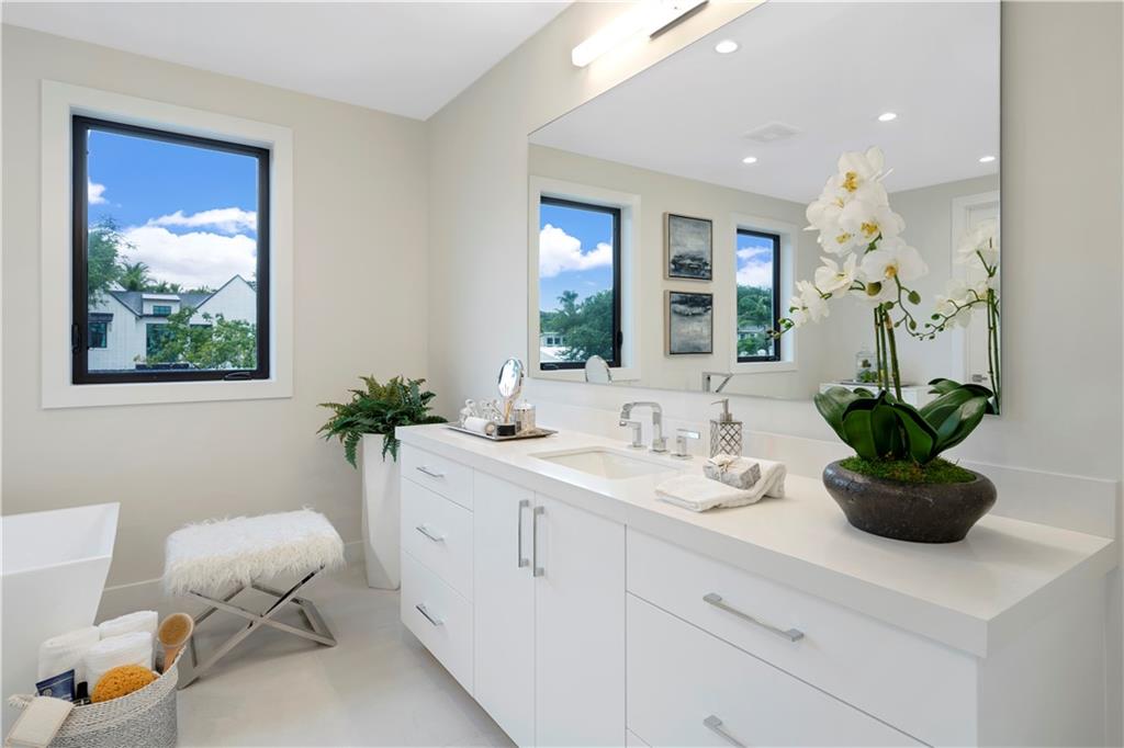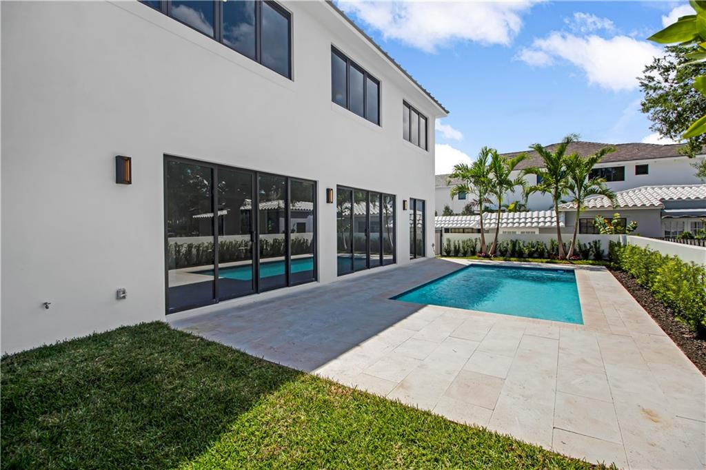 NEW CONSTRUCTION | IMMEDIATE OCCUPANCY | This transitional contemporary home is conducive to today's lifestyle with a luminous open floor plan, volume ceilings & multiple doorways blending indoor & outdoor living spaces. The outstanding curb appeal leads to an open foyer overlooking the dining area, great rm, pool & patio area. The culinary kitchen features upgraded appliances, tremendous storage & oversized counter space ideal for entertaining. The open staircase is framed with a glass enclosure & wide wood flooring throughout the 2nd floor. The spacious primary suite boasts 2 walk-in closets & lavish bathrm. Additional details include a 1st floor bedrm or home office & 2nd floor laundry. Mins to the Lauderdale Yacht Club, shopping, restaurants & gyms. Sq ft from developer