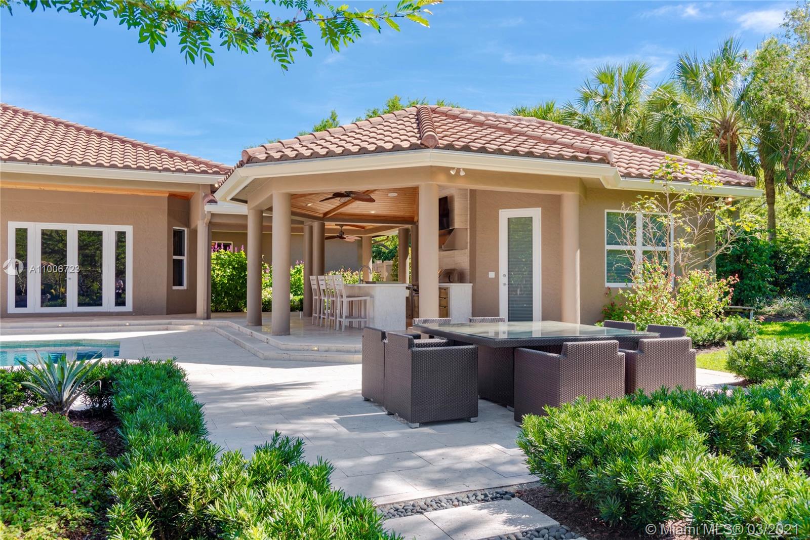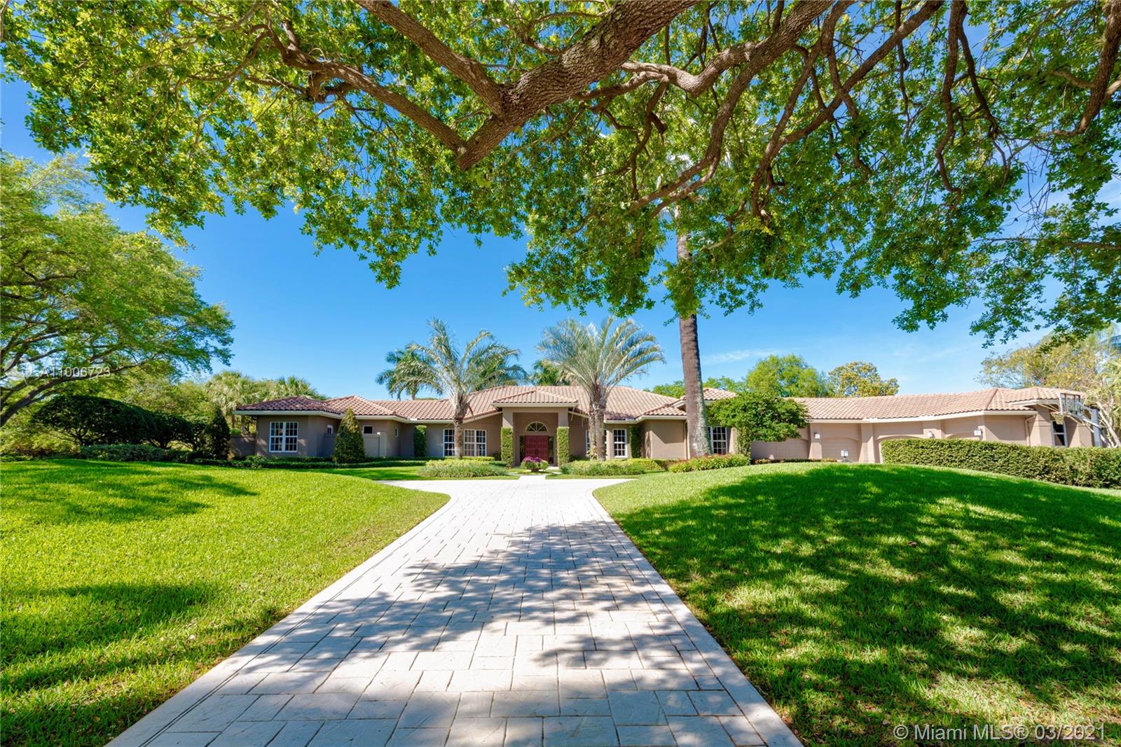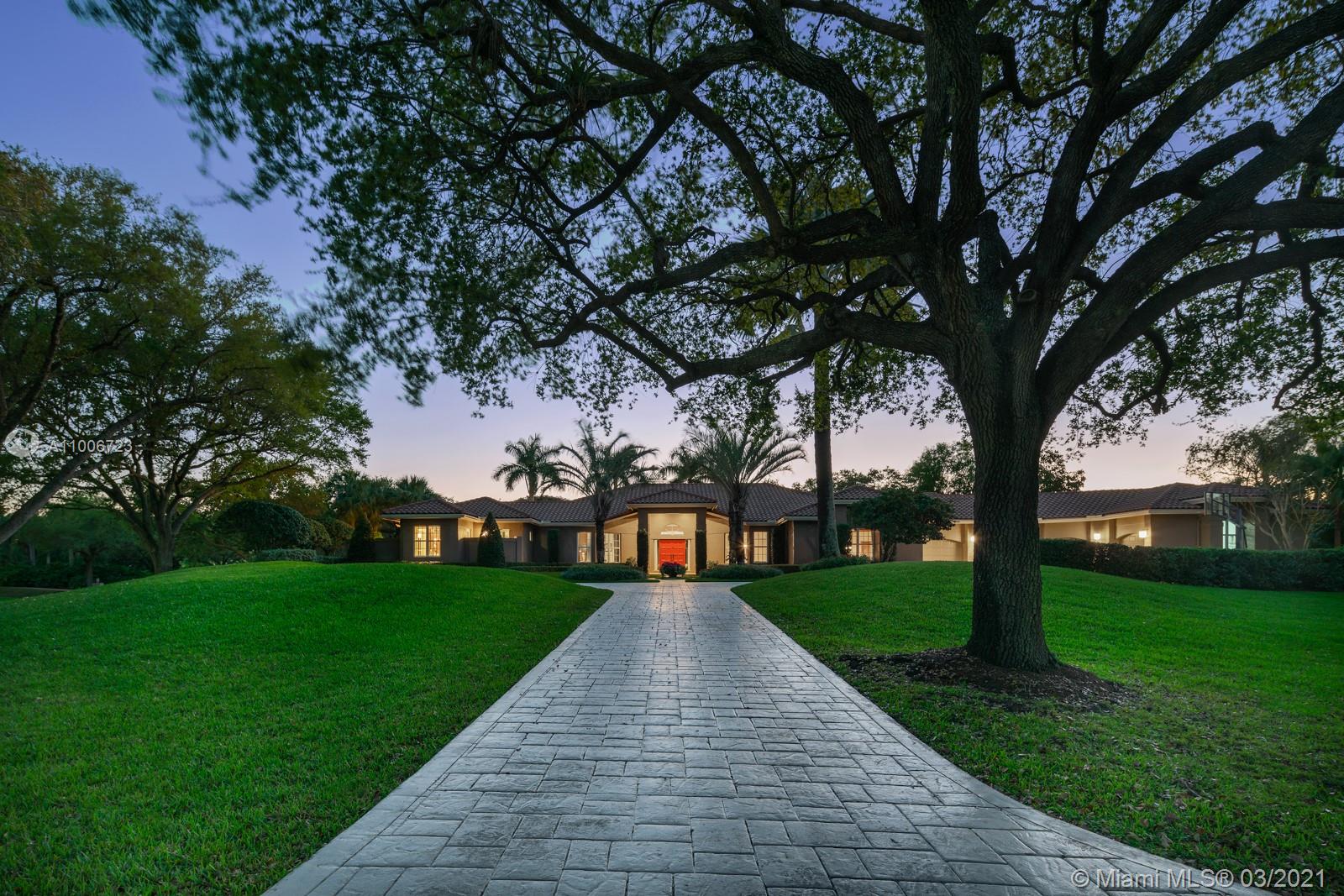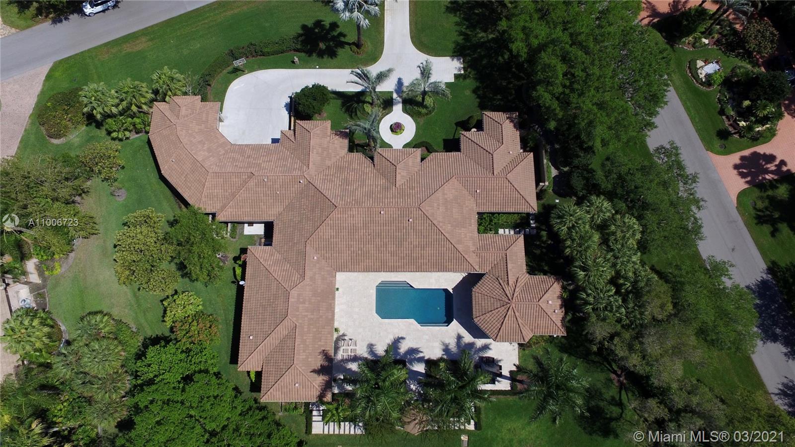 This elegant home is situated in the idyllic surroundings of Windmill Ranch Estates and sits perfectly on a 1.78 acre private lot. As you enter the home, it enchants you with views through the large picturesque windows overlooking the beautiful landscaped grounds and pool area. The expansive master suite features a sitting area and an impressive walk-in closet with island and onyx counter-tops. His and hers baths make this master a true gem. The gourmet kitchen features top of line appliances and granite counter-tops. The main residence has 4 bedrooms, 5.5 baths with office, game room, bulter's pantry and a 1 bed 1 bath guest house with summer kitchen. Custom oversized garage fits up to 6 cars with a lift. An entertainer's paradise in one of the most coveted communities in Weston!