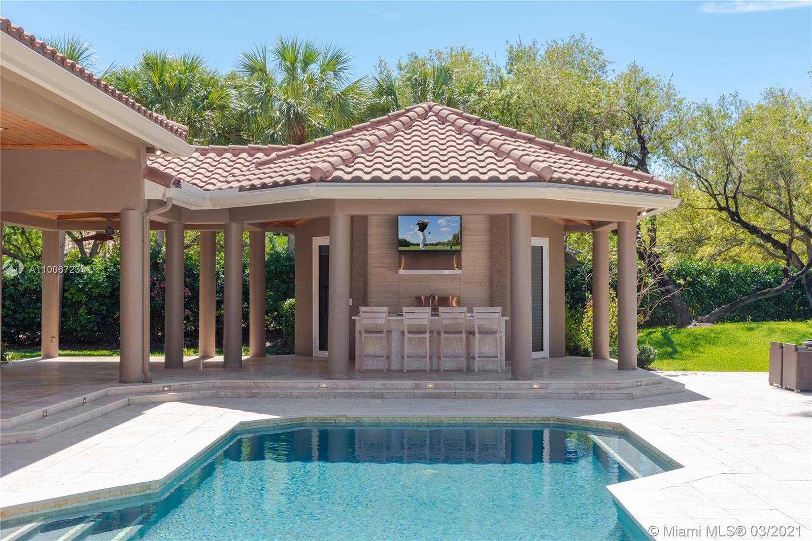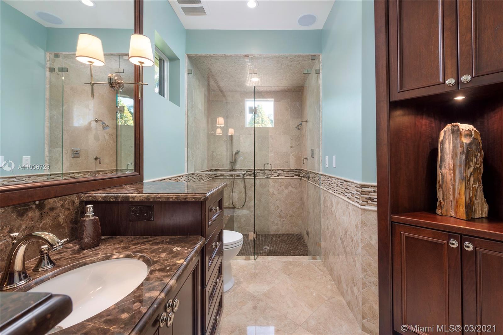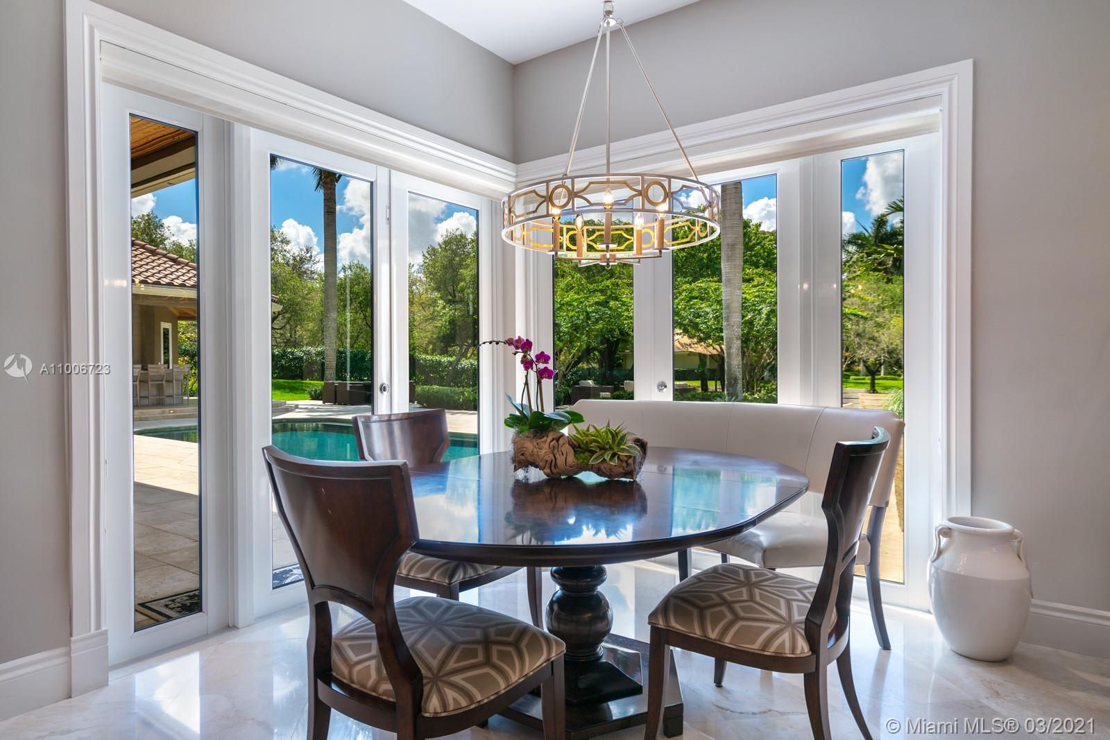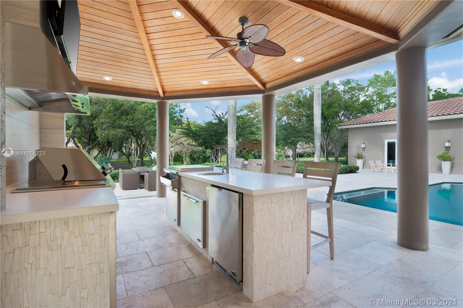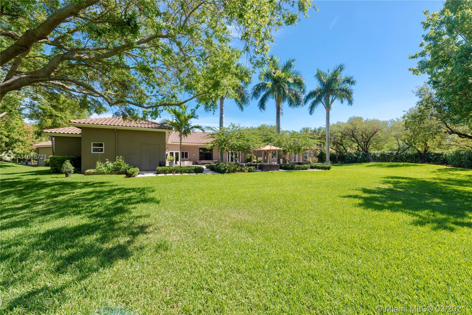 This elegant home is situated in the idyllic surroundings of Windmill Ranch Estates and sits perfectly on a 1.78 acre private lot. As you enter the home, it enchants you with views through the large picturesque windows overlooking the beautiful landscaped grounds and pool area. The expansive master suite features a sitting area and an impressive walk-in closet with island and onyx counter-tops. His and hers baths make this master a true gem. The gourmet kitchen features top of line appliances and granite counter-tops. The main residence has 4 bedrooms, 5.5 baths with office, game room, bulter's pantry and a 1 bed 1 bath guest house with summer kitchen. Custom oversized garage fits up to 6 cars with a lift. An entertainer's paradise in one of the most coveted communities in Weston!