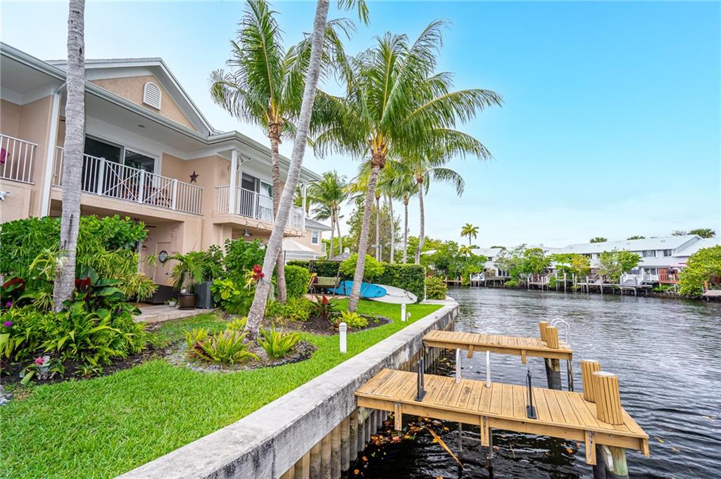 Gorgeous waterfront townhome meticulously renovated with a focus on quality throughout. The foyer entry leads you to the luxuriously remodeled kitchen w/quartz counters & high-end appliances. Spacious dining & living areas are light & bright with stunning river views. Elegant master suite provides more tranquil water views w/vaulted ceilings, private balcony, walk-in closet, updated ensuite bath. Second bedroom also feature an updated bath. Enjoy the South Florida lifestyle in this Key West style home, whether enjoying dinner under your covered patio or cocktails on your private dock! Ample storage including inside, patio closet and private storage room. Covered parking, impact windows & amazing location - moments to Wilton Drive, Las Olas, the beach, entertainment or relaxation.