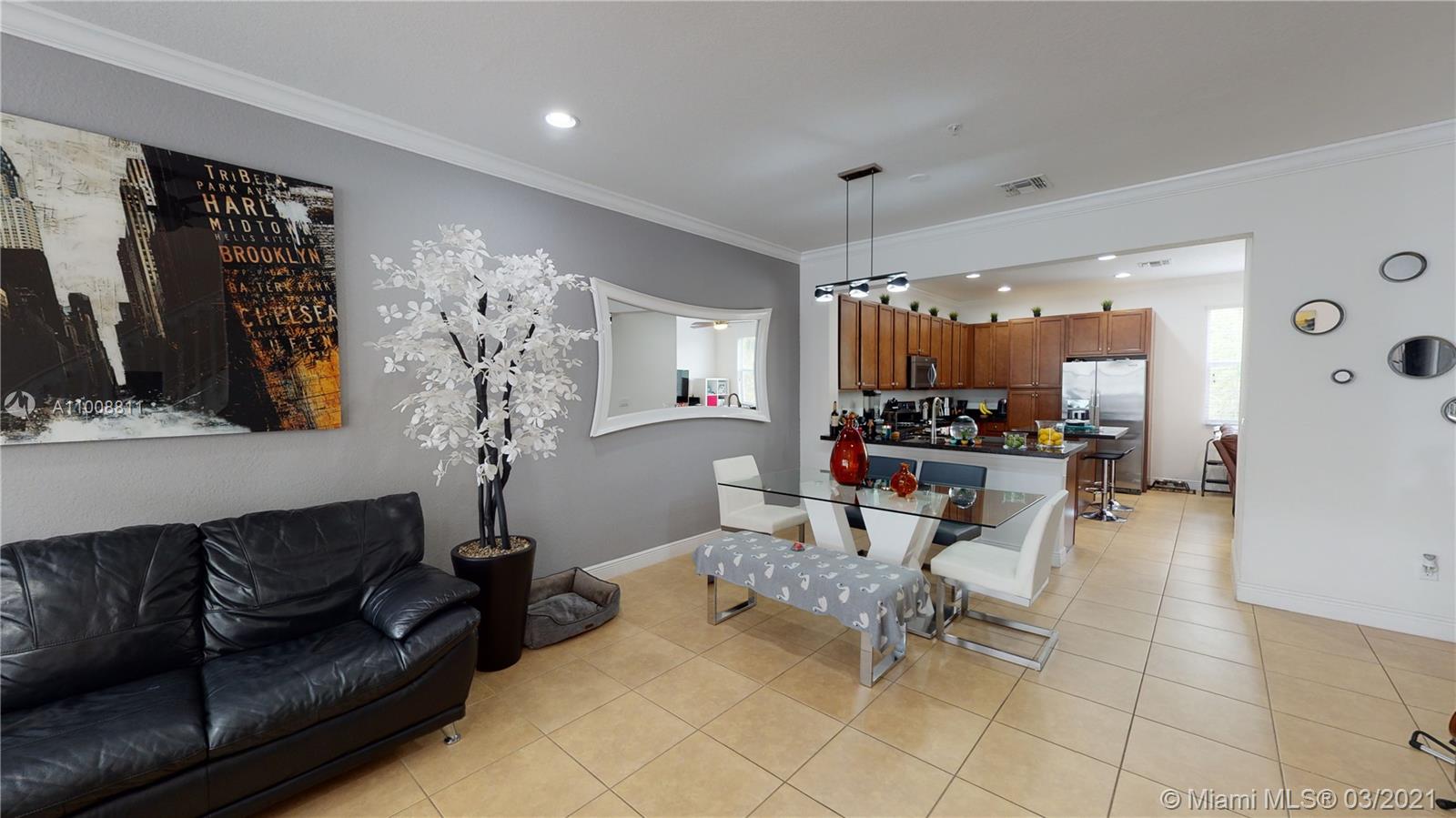 BEAUTIFUL TRI-LEVEL TOWNHOME IN MONTCLAIR COMMUNITY IN MIRAMAR. IDEALLY LOCATED GROUND FLOOR BEDROOM AND FULL BATHROOM. WELL MAINTAINED PROPERTY WITH TILE AND LAMINATE FLOORS THROUGHOUT. LARGE LIVING AREA ON SECOND LEVEL WITH LIVING, DINING, KITCHEN, AND HALF BATHROOM. COMFORTABLE MASTER SUITE ON THE TOP LEVEL WITH MASTER BATH AND WALK IN CLOSET, AS WELL AS ANOTHER SPACIOUS BEDROOM AND FULL BATHROOM.