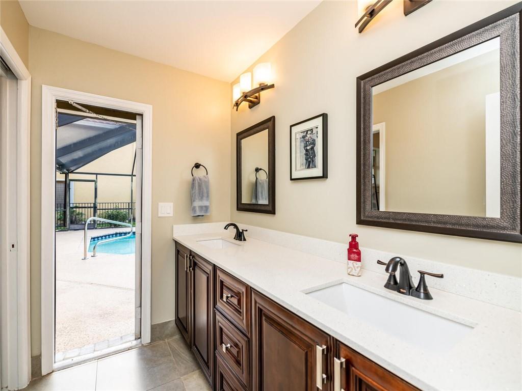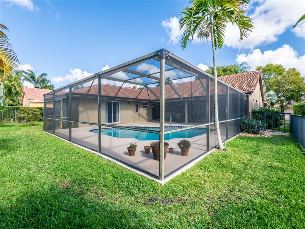 EXCEPTIONAL, BEAUTIFUL & TOTALLY REMODELED HOME (2017) LOCATED IN THE POPULAR NEIGHBORHOOD OF "SUNSET SPRINGS"! YOU'LL LOVE THE OPEN & BRIGHT FLOOR PLAN WITH AN INCREDIBLE NEW KITCHEN FEATURING GRANITE COUNTERS, 42" WOOD CABINETS, STAINLESS STEEL APPLIANCES, SELF CLOSING DRAWERS LAZY SUSAN, CENTER COOK ISLAND/SNACK COUNTER AND SEPARATE BREAKFAST AREA OVERLOOKING THE POOL. NEW ROOF, A/C & WATER HEATER IN 2017. OVERSIZED NEUTRAL TILE ON THE DIAGONAL, 8" BASEBOARDS, PLANTATION SHUTTERS THROUGHOUT, CUSTOM CLOSETS & A SPLIT FLOOR PLAN. THE HUGE, COVERED SCREENED POOL/PATIO AREA IS GREAT FOR ENTERTAINING & HAS ROOM FOR A SUMMER KITCHEN. STORM SHUTTERS, NEW ATTIC PULLDOWN STAIRS. THE COMMUNITY HAS A TENNIS COURT, PLAYGROUND & SECURITY GAURD GATED. WALKING DISTANCE TO TOWN CENTER & A+ SCHOOLS.