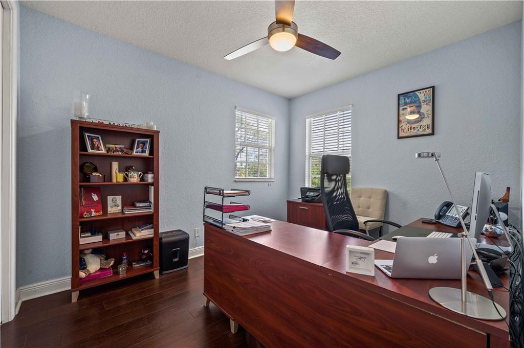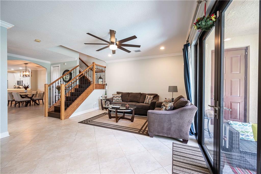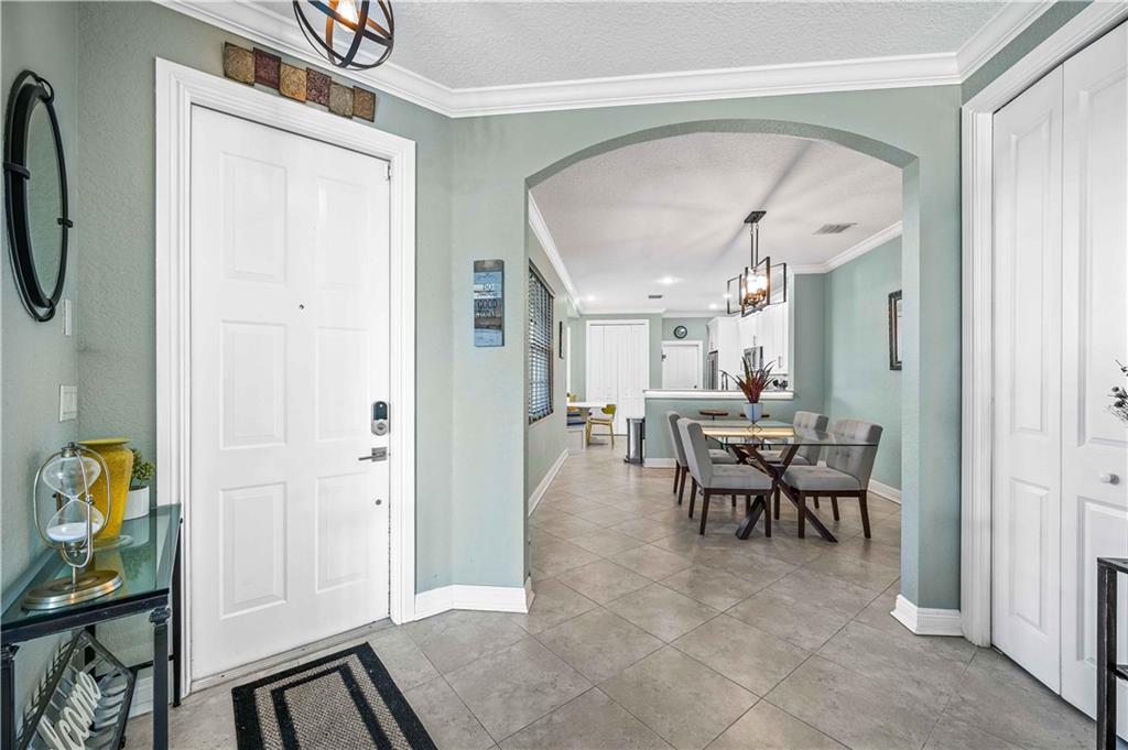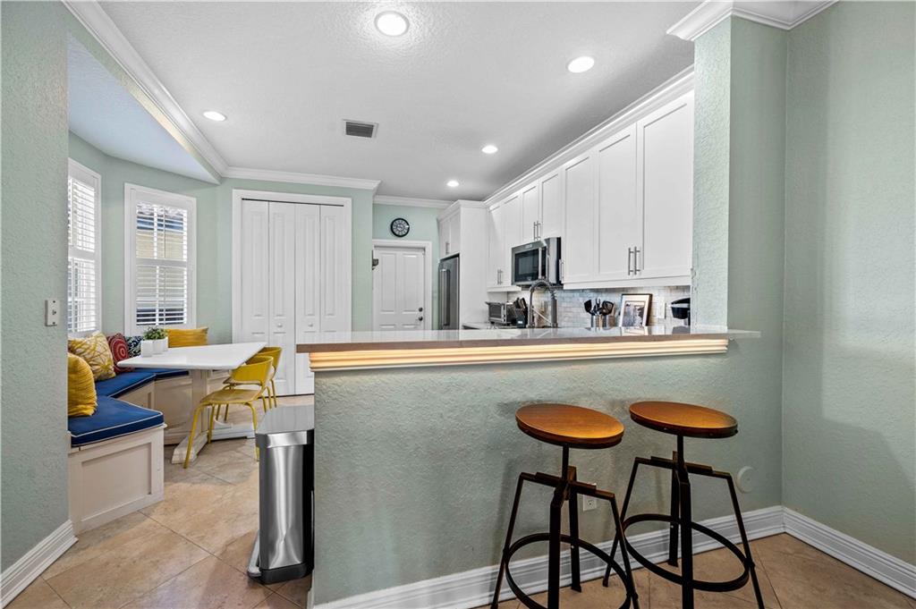 Renovated, fee-simple townhouse in Lake Ridge offering the feel of single-family living with its spacious & open floor plan and private, heated pool. Two-story twin home with ground floor living area showcasing a completely upgraded kitchen with quartz counter tops, marble subway tile backsplash, stainless steel appliances and three diifferent dining area options (formal dining, bar seating and a cozy banquette nook with plantation shutters) to enjoy and keep it fresh in this new normal. Second floor features wood flooring, a bonus loft perfect for an office or reading area and a master suite complete with a tray ceiling, sitting area and walk-in, California closet. Other updates include impact glass throughout, new AC as well as a new pool heater and salt-water system. No HOA approvals!
