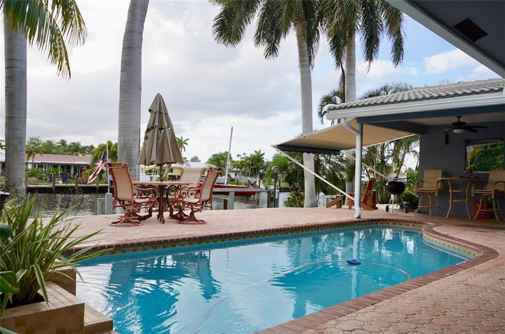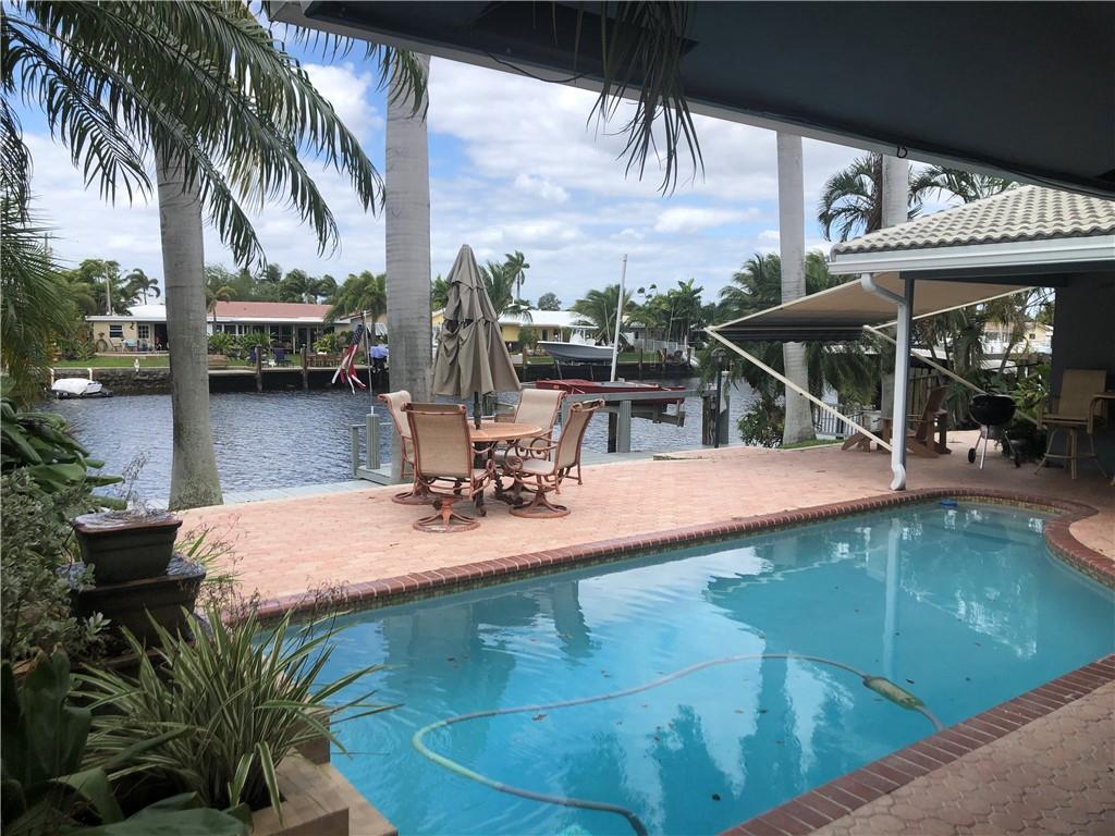 Beautiful waterfront home with Ocean access. On very wide canal with 1 fixed bridge. 5 mins to Intercoastal. Updated 3 Bedroom 2 Bath with Large Open Kitchen. Custom wood cabinets with granite counter tops. Pool recently resurfaced. Impact windows and doors. Gas and Electric Appliances with in home generator that runs entire house. New Barrel Tile roof and New Gutters in 2019. 70 FT of waterfront with 10,000 LB Boatlift. New A/C. Close to beach, great schools and restaurants. Great neighborhood on dead end street.