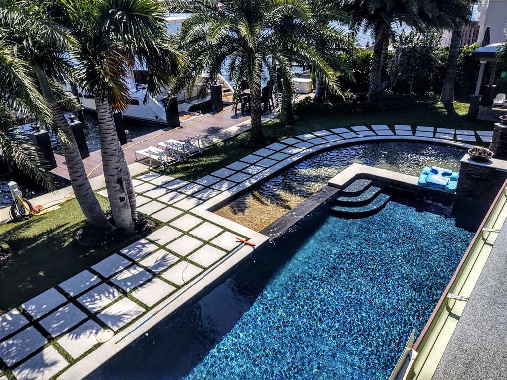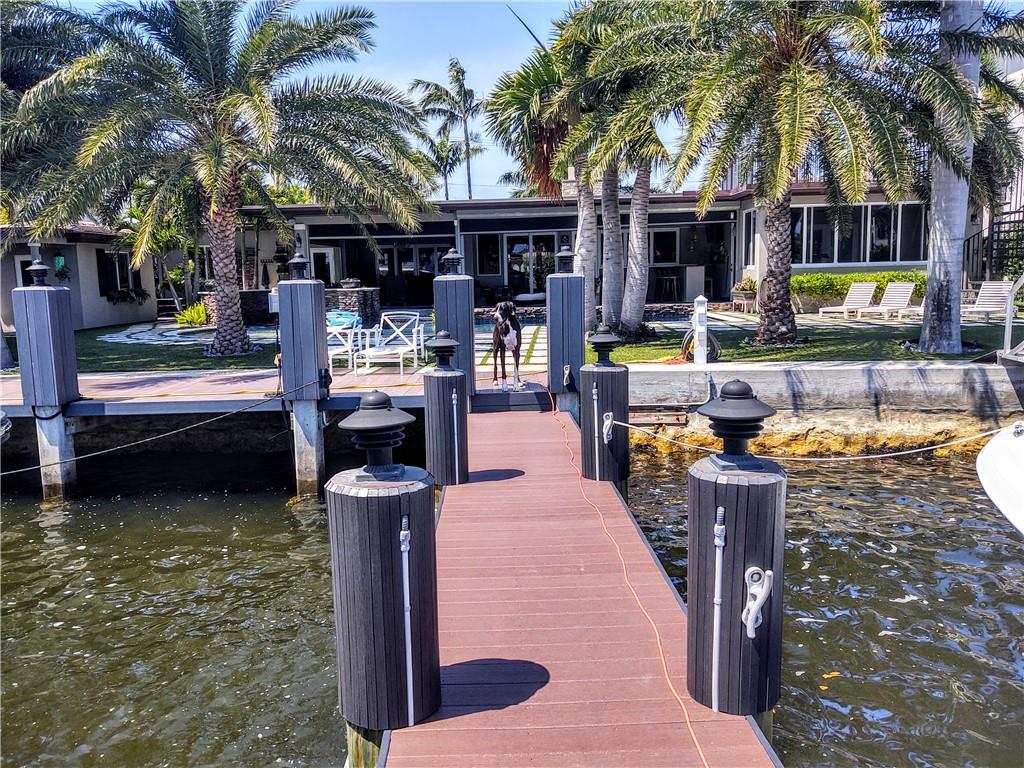 YACHTSMAN DREAM!! 4 DEEP WATER SLIPS ,20K lift & 40' FLOATING DOCK on wide section of the ICW -"Lettuce Lake"- Just steps to the beach off A1A. New rebuild in 2013. 100% remodeled to include: new roof, impact doors & windows,new electric, 400 amp service,hardwood floors,custom cabinetry with all the bells & whistles, concrete counter tops,glass door fridge,plantation shutters throughout,two sided fireplace includes a pizza oven, outdoor warm & cold shower, new pool with led lights, jets, heater, glass bead finish (like at Sandals Resorts) ,huge storage area in garage,separate golf cart shed,landscape lighting ,new dock,raised seawall, commercial grade 40' floating dock w/100 amp service. Resort style backyard has artificial turf. Multifamily zoning for up to 6 town homes. 1 of a kind!