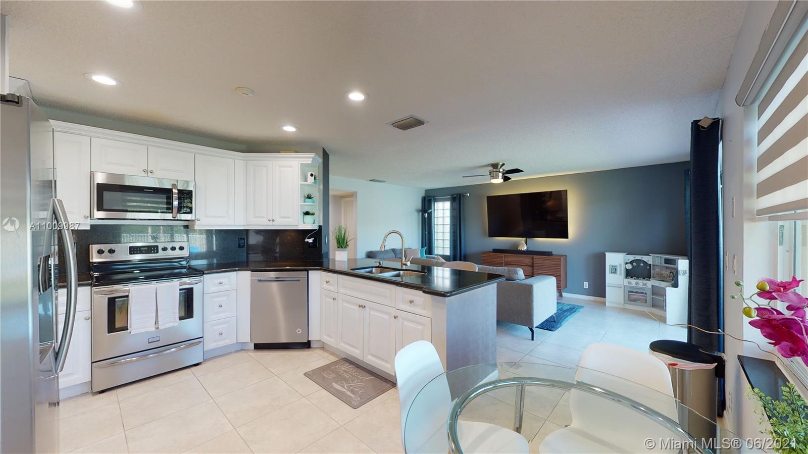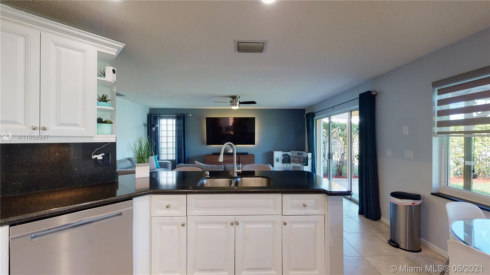 Beautiful Weston waterfront home, 4 bedroom, 2 1/2 bath Glenfield model. Front door and kitchen window is impact resistant. The rest of the house has accordion shutters. Large living room/dining room and remodeled kitchen with wood cabinets, granite and stainless steel appliances. Large Private backyard, with a tranquil lake view. 4th bedroom is currently being used as an office off the master bedroom. Can easily be converted back. Fully fenced-in yard with plenty of space for a pool. AC was replaced Sept 2020, Water Heater was replaced January 2019.