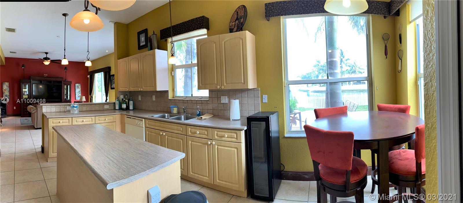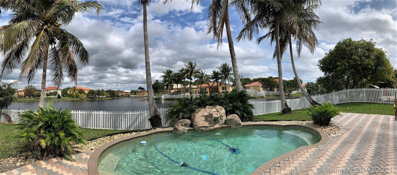 Elegant 4-bedroom - 2-1/2-bathroom, 2-story house located in a card gated community in Monarch Lakes. It sits in a cul-de-sac with a pool and a wide lake view. Volume ceilings, custom draperies and interior design-finishing touches add a flair of distinction to the living rom. Kitchen with an eating area opens to the family room and features a cooking island. The pool area faces east which allows for cool afternoon gatherings. Master bedroom features a huge walk-in closet (12'x10'), Master bathroom with dual-sink and a large shower. All the carpeted bedrooms are upstairs. Tile on living area. Low maintenance fee. House exterior painted in March 2021.