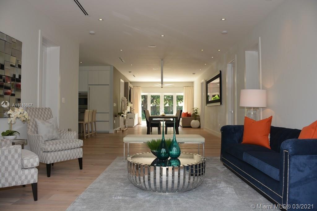 Spectacular, 4br/3bth completely remodeled in 2015. Contemporary inspired decor w/ all custom finishes. This 1 story beauty sits on a very private lush tropical garden w/ a gorgeous heated saltwater pool & spa and expansive space for entertaining. Interior features include: Expansive flow-through luminous space w/ chef’s kitchen, gas cook top w/ out flowing exhaust vent, Italian cabinetry, gray quartz countertops, sub-zero & wolf appliances, wine cooler. 9’5ft ceiling. 8ft doors. Oak wood floors imported from Holland. Sound system inside & out. Led lighting throughout. Impact doors & windows. Master suite offers custom walk-in closet & completed w/ a spa-like master bath w/ double sinks and jet, hand & rainfall shower. Owner spared no expense. SELLER MOTIVATED.