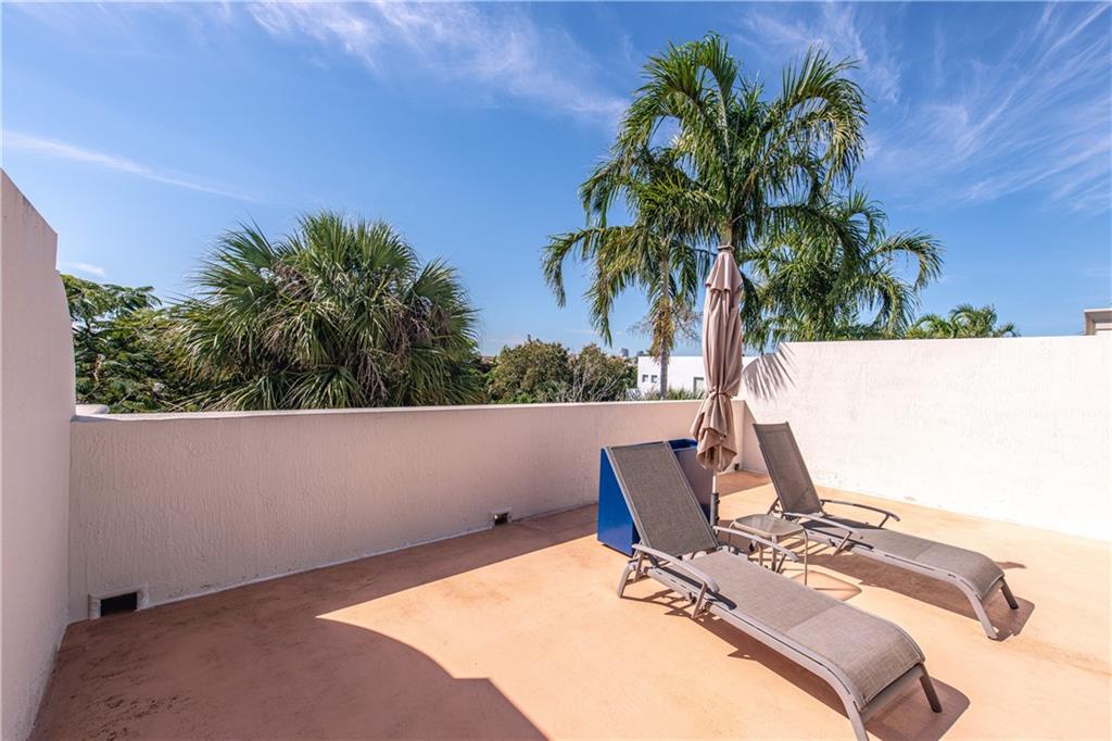 Spacious townhouse with a fabulous 24x24 Great room. Kitchen with newer stainless steel appliances, butler's pantry, custom cabinets & lighting. Island with quarts countertops. This 3 bedroom/3.5 bath has walk in closets, master suite has spa, separate shower, dual sinks. Patio off the great room to grill out and entertain.Impact doors and windows with a private rooftop terrace 1200 square feet with a full bath.Relax and enjoy the view of the city while sipping on a glass of Vino. Two car garage. Walking distance to beach, shopping & fine dining.