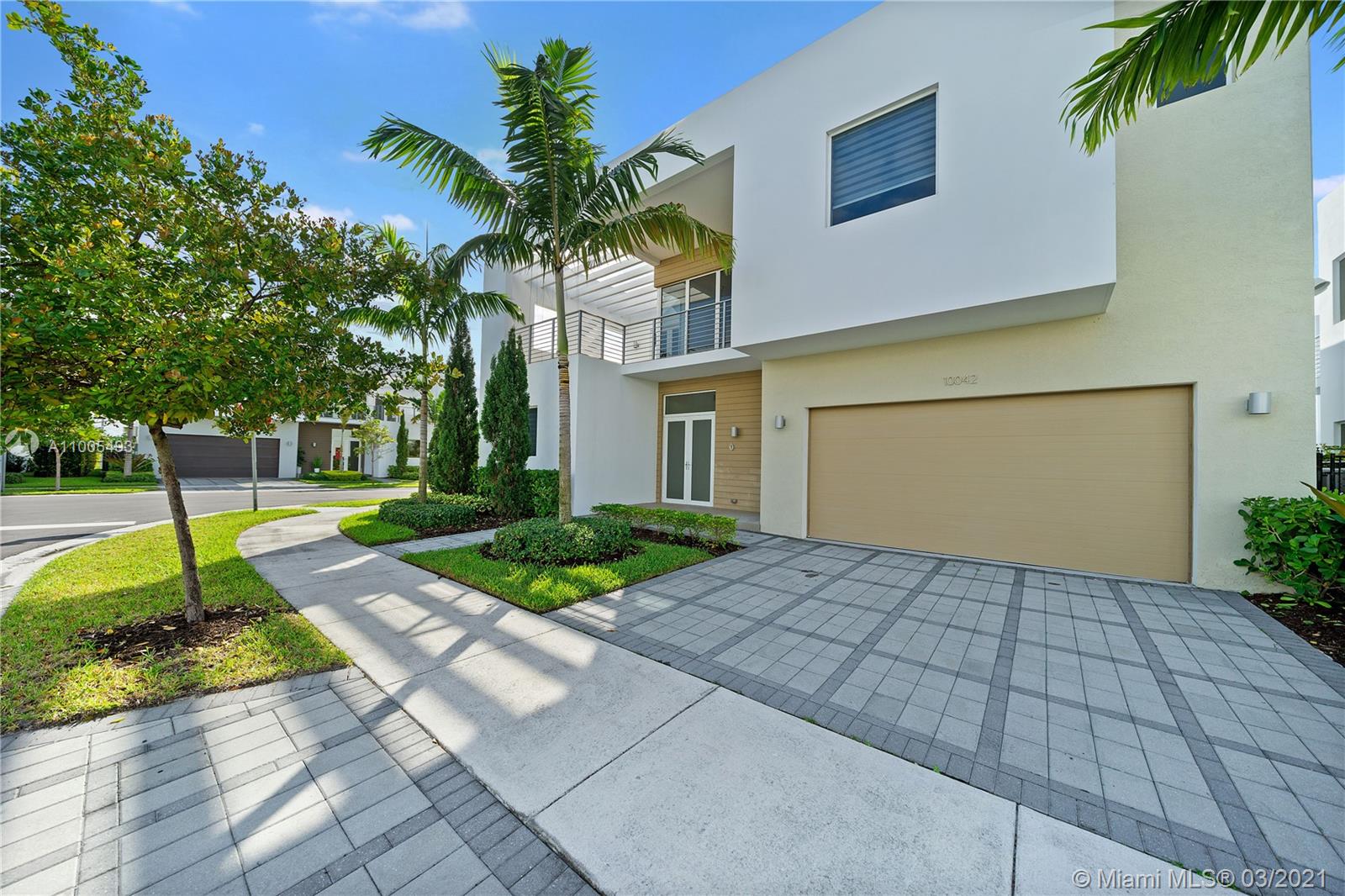 Unique and contemporary house located in the gated community Modern Doral. The house has 5 bedrooms / 5 baths, one bedroom and full bath is located in the ground floor. 4 Bedrooms on suite. Gourmet kitchen, summer kitchen, private pool, 2 balconies, lanai, laundry room inside the house, covered terrace, driveway with pavers. The house has been built with the last technology to enjoy the advantage of one smart house with energy efficiency appliances and full security system. Modern Doral offers a great community club house, fully-equipment fitness center, oversized pool, bike trail, library, summer kitchen and wet bar.