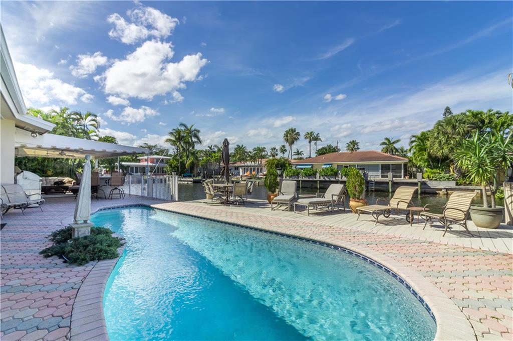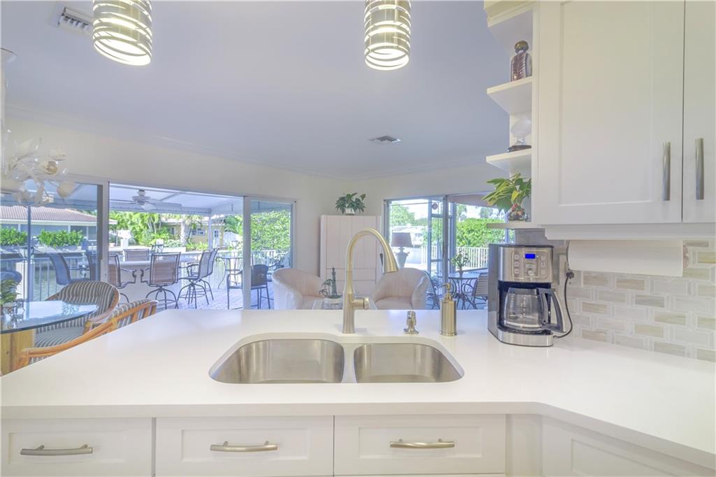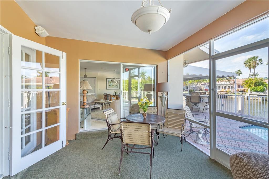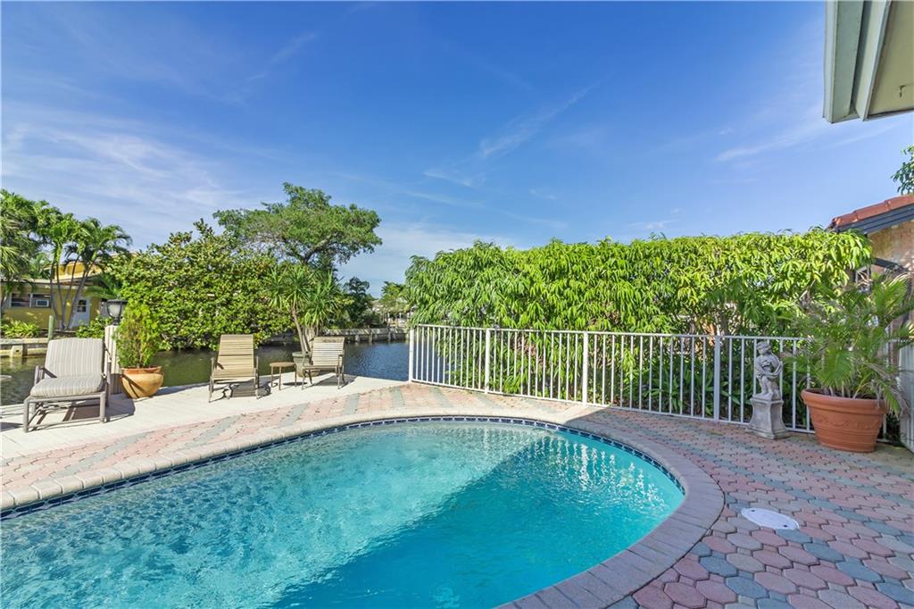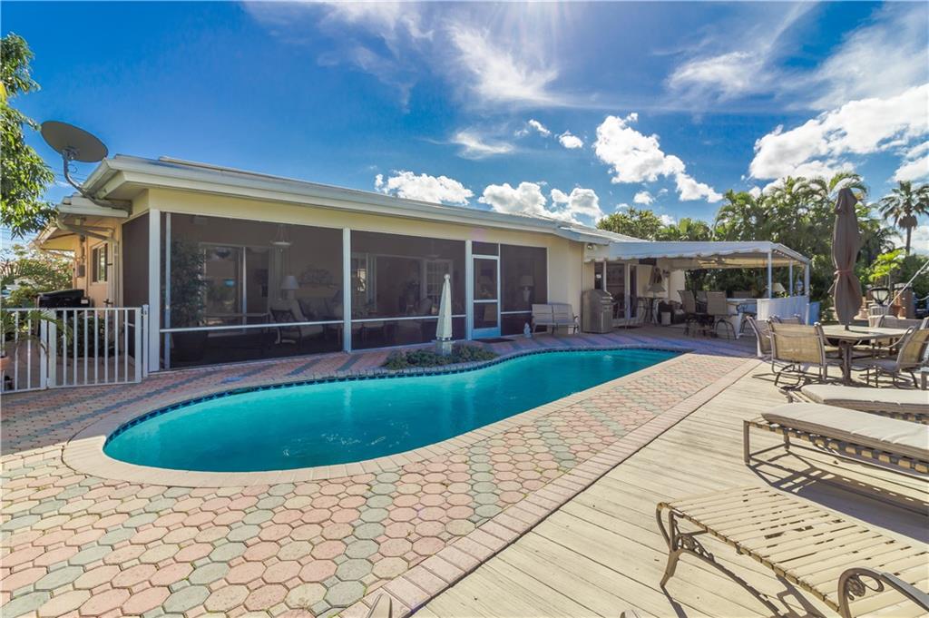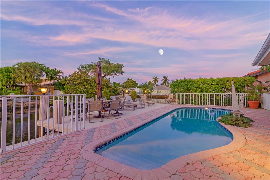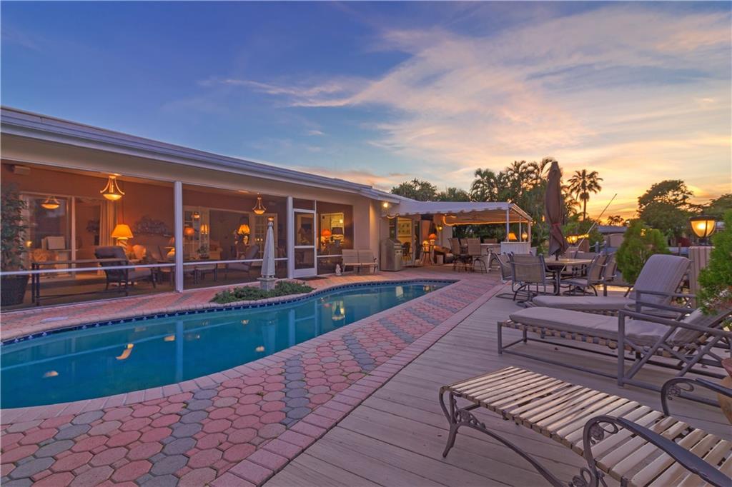 See it to believe it! Lovely waterfront home with all focus on the water! What makes this home unique is the "Flow". Screened porch, LR,Kitchen & Covered Patio all connect for EZ living or party flow. 4BR 3BA home(1BR used as den/office) Mstr. faces water.2nd Mstr. has sep. entrance to pool area. Impact garage door & all windows/doors except 3 on porch.Kitchen updated-CAST IRON PIPES REPLACED! Heated pool & New AC. Close to everything but far enough for privacy. Sunrise or sunset -beautiful! 80' waterfront with dock and deck- Boaters, CLEARANCE AT HI TIDE IS 6'.(See last photos for type) Access to ICW- cruising to restaurants, fishing or just a ride. Walk or bike to beach. Amazing neighbors.Fenced yard.Great Private Schools nearby.Owner says "Wouldn't sell but want to be closer to family"