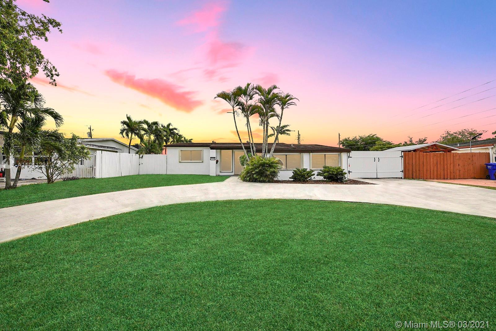STUNNING POOL HOME HAS MASS CURB. FROM THE LUSH TROPICAL LANDSCAPING TO THE WELL MANICURED LAWN, WHICH BORDERS THE IMPRESSIVE CIRCULAR DRIVEWAY. CHARMING CURVED PATH LEADS TO THE INVITING COVERED PORCH ENTRY. GORGEOUS KITCHEN W/ WOOD CABINETS,GRANITE COUNTERS,& BREAKFAST BAR SEATING. PERFECT FOR ENTERTAINING ALL SOCIAL AREAS LEAD TO THE BACKYARD.HOME OFFERS TILE THROUGHOUT AND NEUTRAL PAINT.TROPICAL BACK YARD OFFERS A SPARKLING POOL SURROUNDED BY PALM TREES.PERFECT FOR ENTERTAINING THE HUGE PATIO IS SURROUNDED BY A PRIVACY FENCE. A PRIVACY FENCE. ENJOY EASY ACCESS FOR BOATS AND RVS. INDOOR LAUNDRY ROOM.NO HOA. ACCORDION SHUTTERS. CONVENIENTLY LOCATED MINUTES FROM THE TURNPIKE, SHOPS, RESTAURANTS & TO THE HARD ROCK HOTEL AND CASINO.