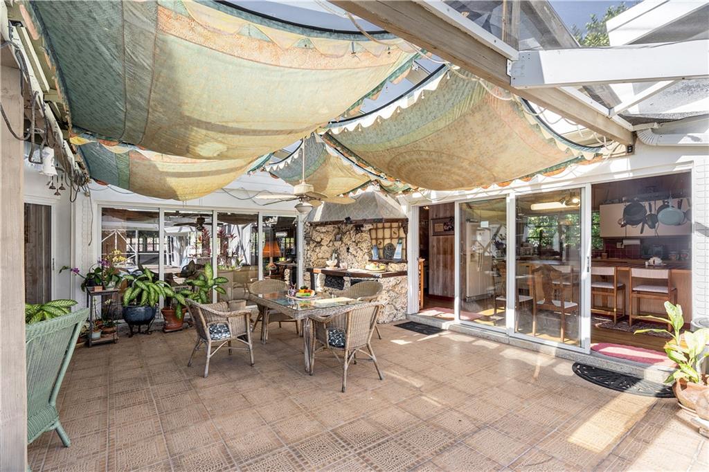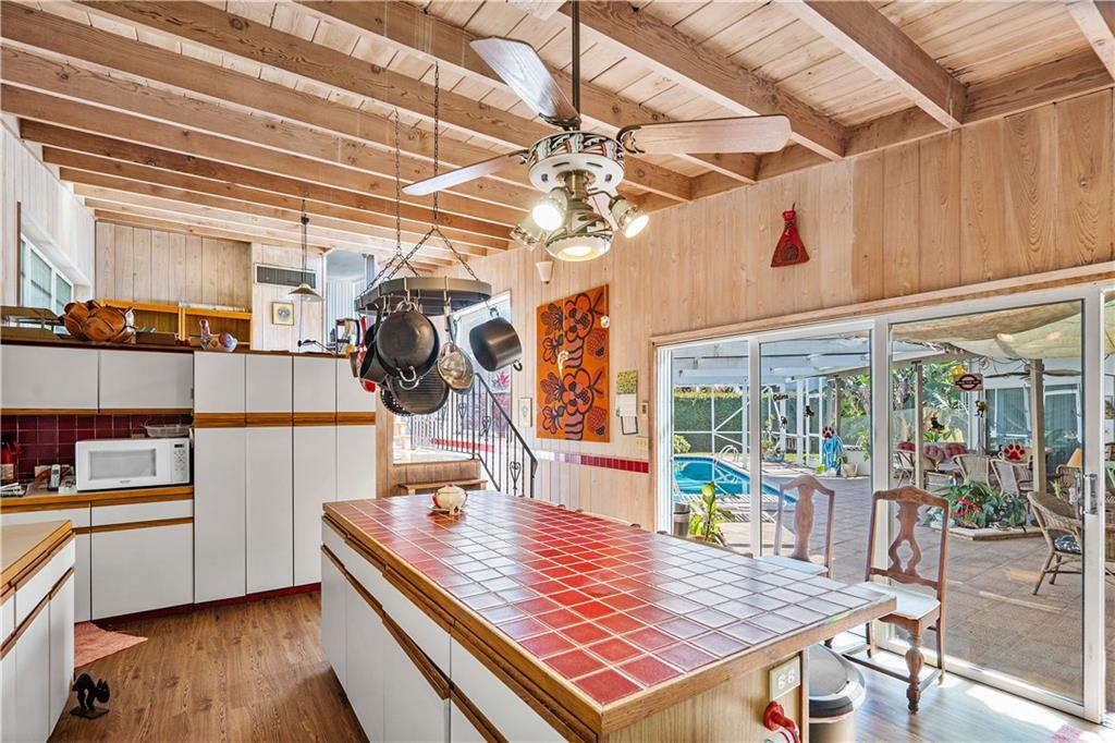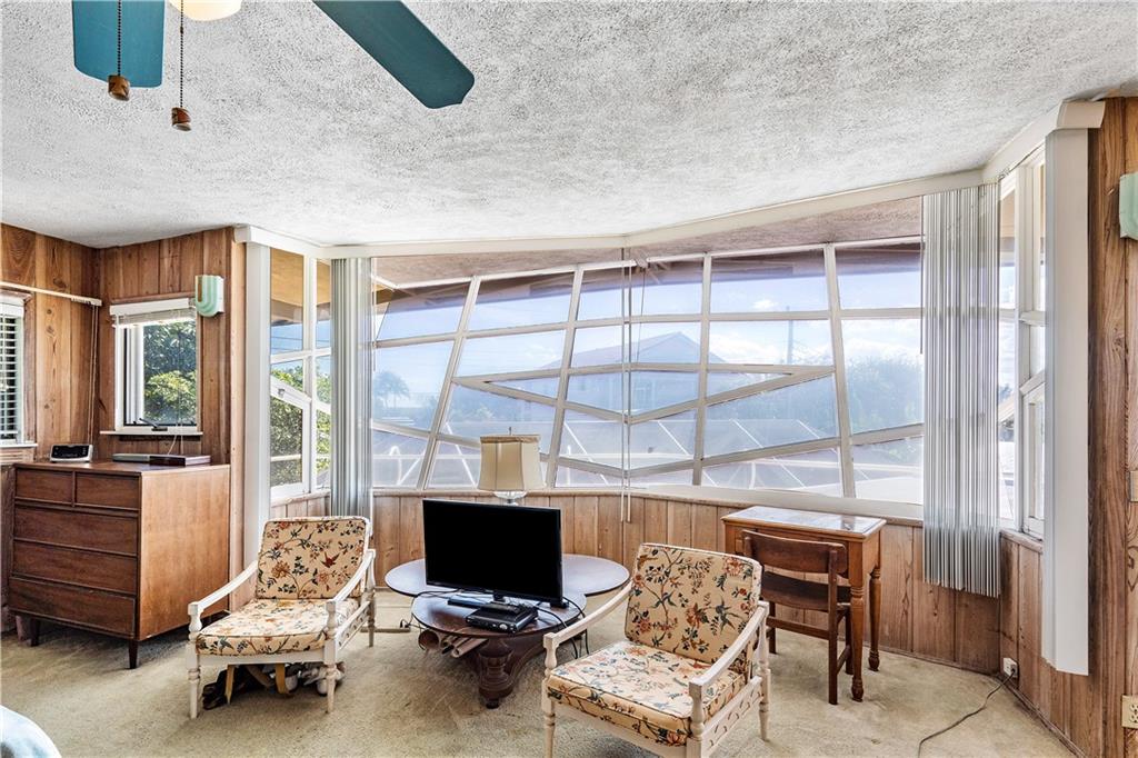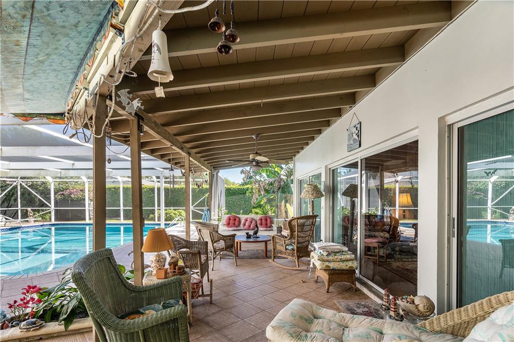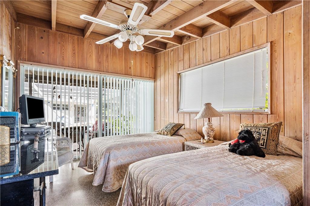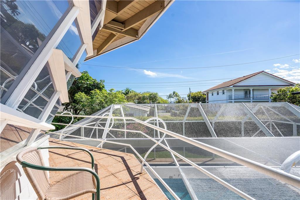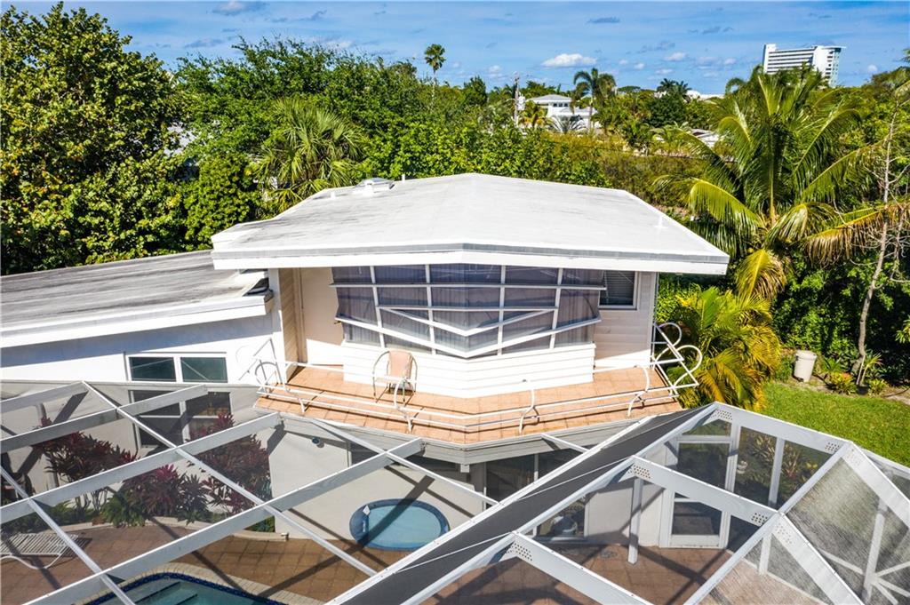 This home designed from the Frank Lloyd Wright School of Architecture is located in the highly sought after neighborhood of Harbor Inlet. It offers 3 bedrooms plus an office, and 2 1/2 baths. Walking distance to the beach! Inside enjoy spectacular wood beam ceilings, large solarium living room, and access to the covered pool area from every room in the house. Master bedroom offers a wrap around balcony overlooking the pool and custom angled windows unique to the builder. Showings by appointment only, 24 hour notice.