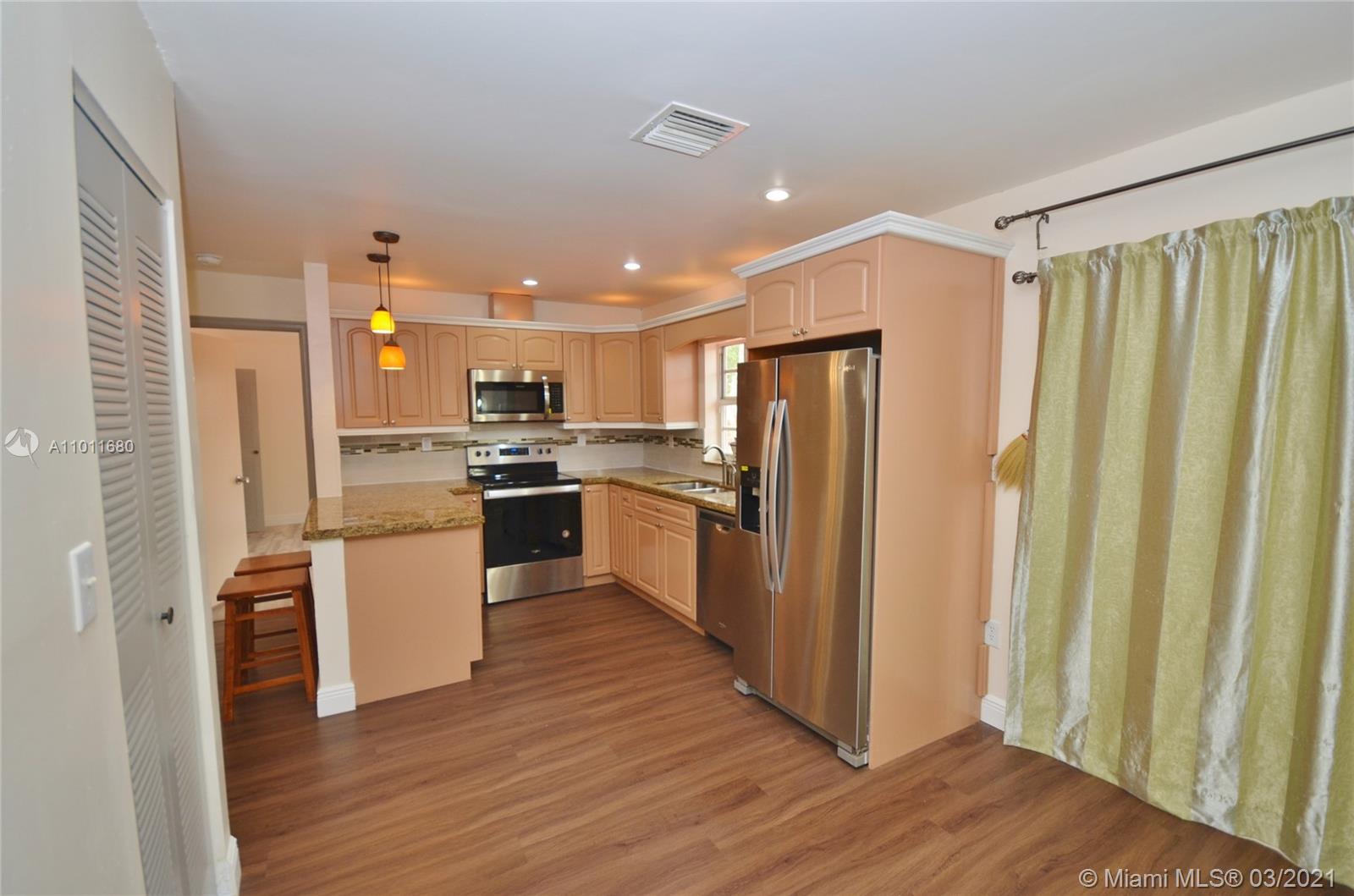 Cozy renovated single family home with 3 bedroom, 2 bathroom, one car garage in the gated community of LAKES ON THE GREEN, new stainless steel appliances, granite countertops, A/C less than 1 year old in/out, water heater, washer & dryer replaced 3 years ago. Very low maintenance of $ 150.00 monthly including gated entry with guard, security patrol 24/7, basic cable, playground. Property located off of I-75 with easy access to Turnpike, Miami Lakes& Palmetto expressway.