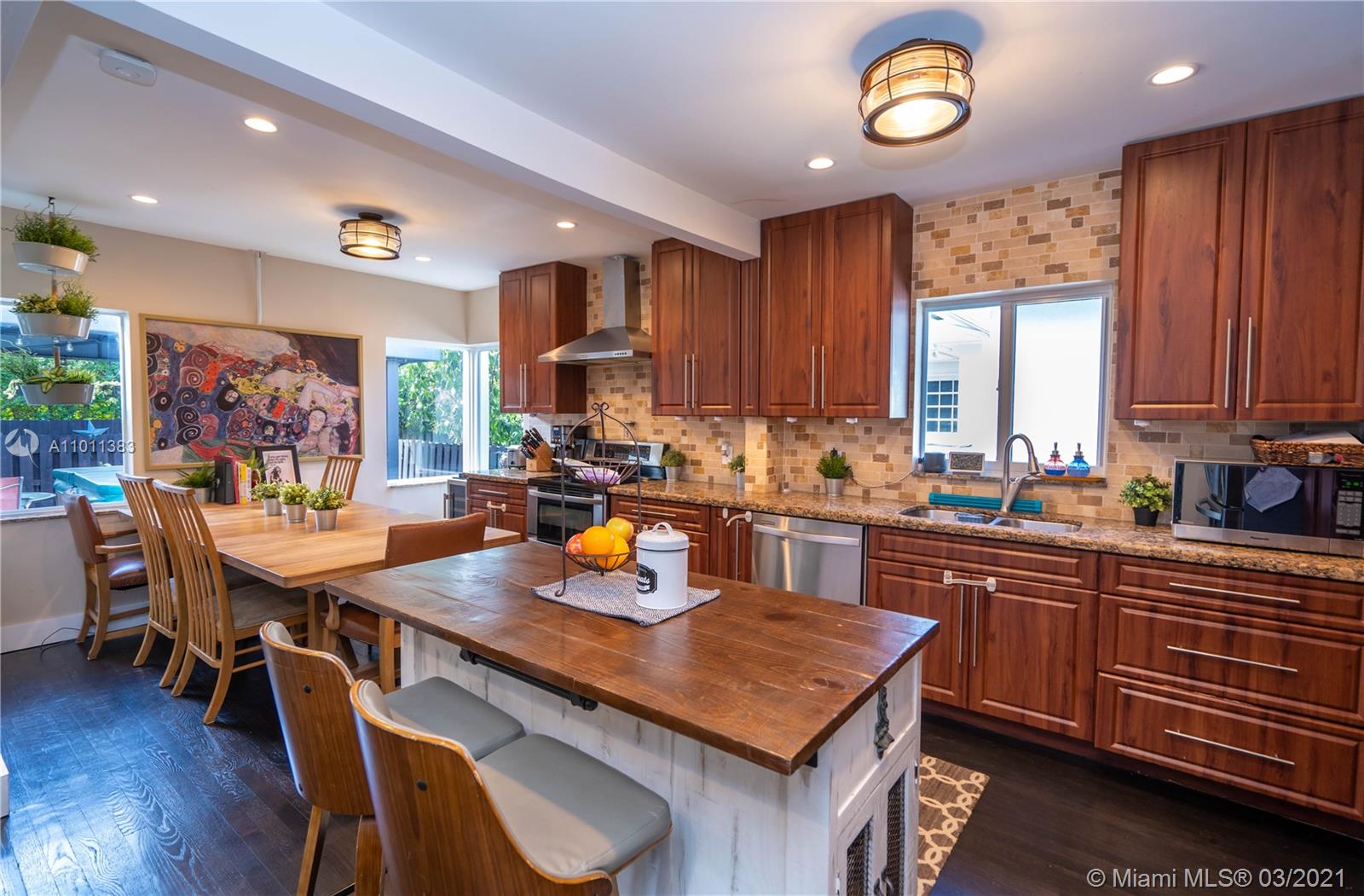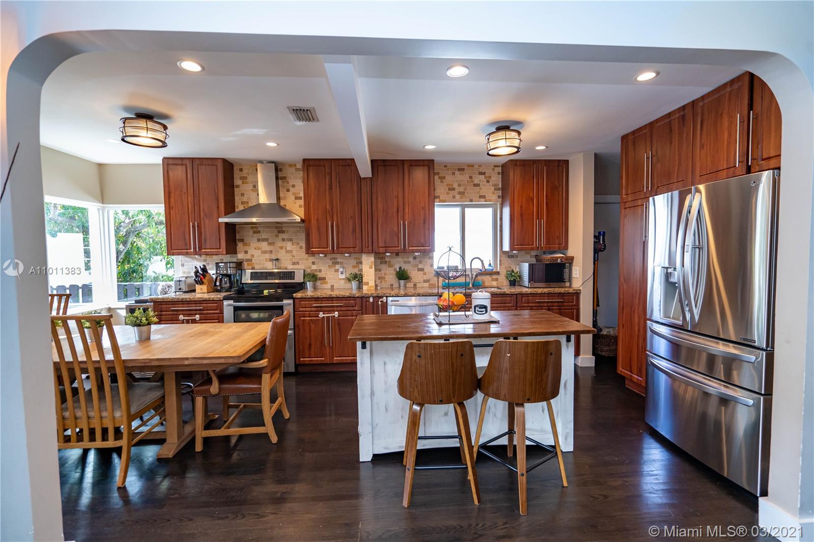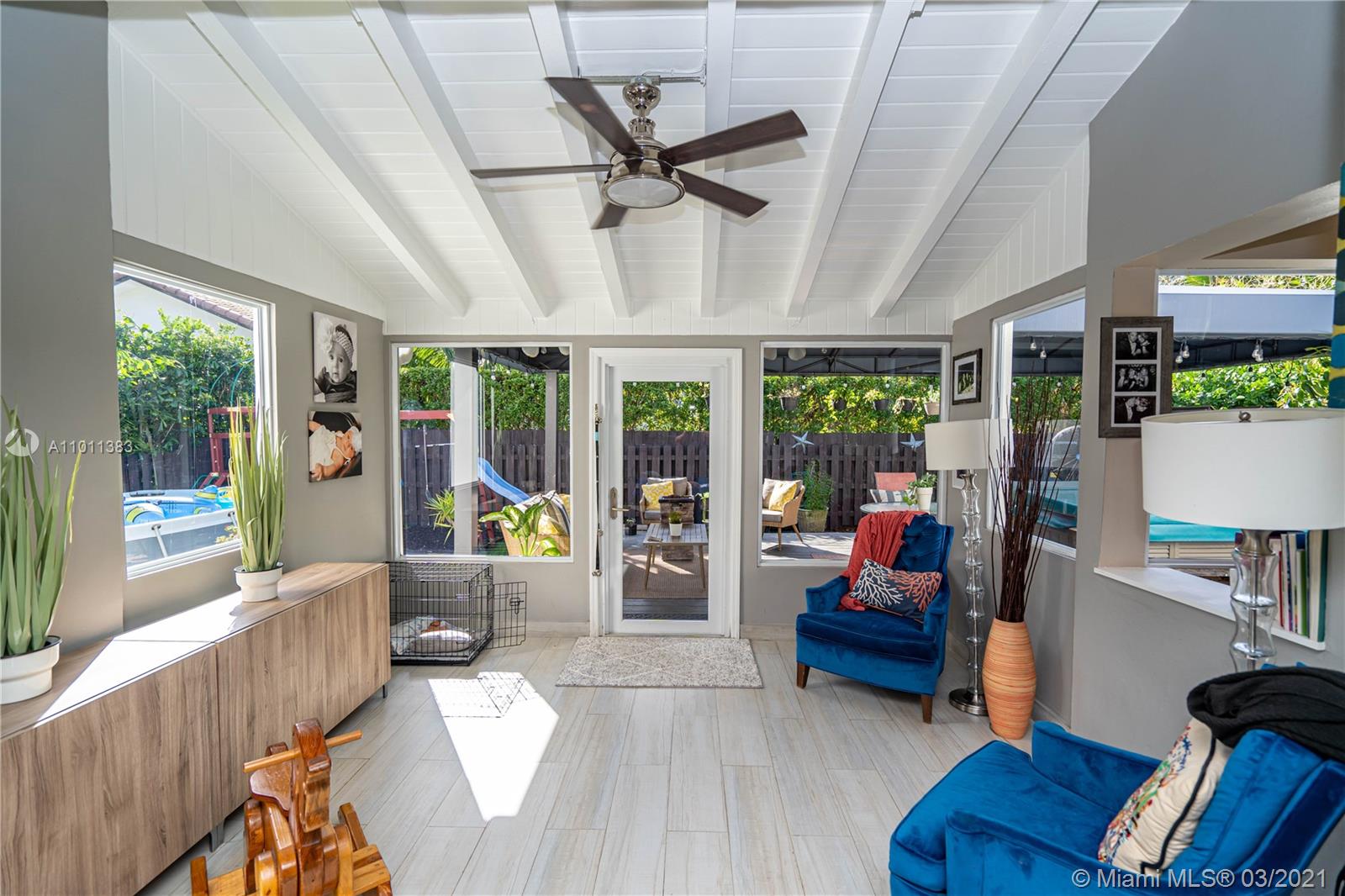 New to the market is this remarkable 3 bed 2 Bath home that presents a nice open floor plan & 1 car garage located in one of the best locations of Surfside. Renovated- upgrades include barrel roof, electric, plumbing, impact windows & doors, designer bathrooms, redone hardwood floors & stone flooring. Large gourmet kitchen w/island/ granite/SS appliances, stone backsplash, wine cooler & lots of storage. New light fixtures, window treatments & hardware throughout, 3 custom barn doors, built in bookshelf, fireplace, A/C less than 5 years old, newer paint inside & out. Florida room with lots of Natural light that leads to a fully fenced backyard w huge deck & custom awning for entertaining. Backyard has an above ground pool, kids playset, hot tub, and captivating landscaping for privacy.