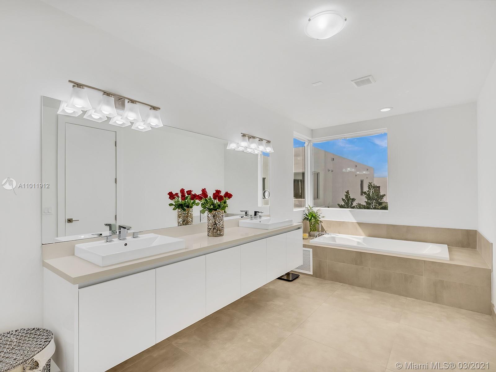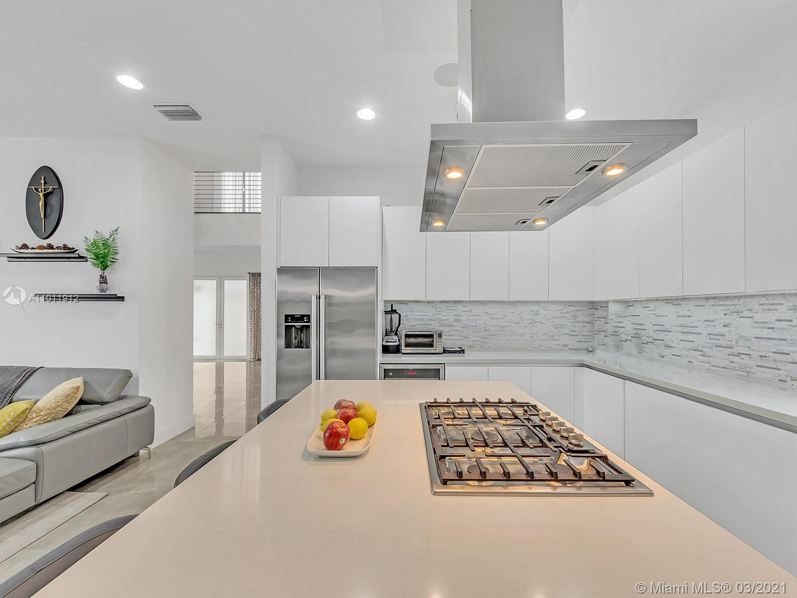 Elegant two-story Single Family Home, 5 Bed/5 Bath situated in the gated community of Modern Doral 60. Enjoy with family and friends in the beautiful patio-pool with outdoor BBQ gazebo area, porcelain floor on first floor, wood flooring on second floor & stairs.Italian Kitchen equipped with wood cabinetry, quartz backsplash & countertop, SS Bosch appliances; wine cooler, 30", Gas stove, microwave, wall oven. Four master bedrooms w/private bathrooms & One master bedroom w/full bathroom on first floor. Entire house wired with smart home technology, security system-cameras, hurricane impact window. Club House, with plenty of comforts and amenities, with Business Center, Gym, Pool, B.B.Q. A+ schools. Close to Supermarkets, Banks, Restaurants and much more!Definitely a Must See!!