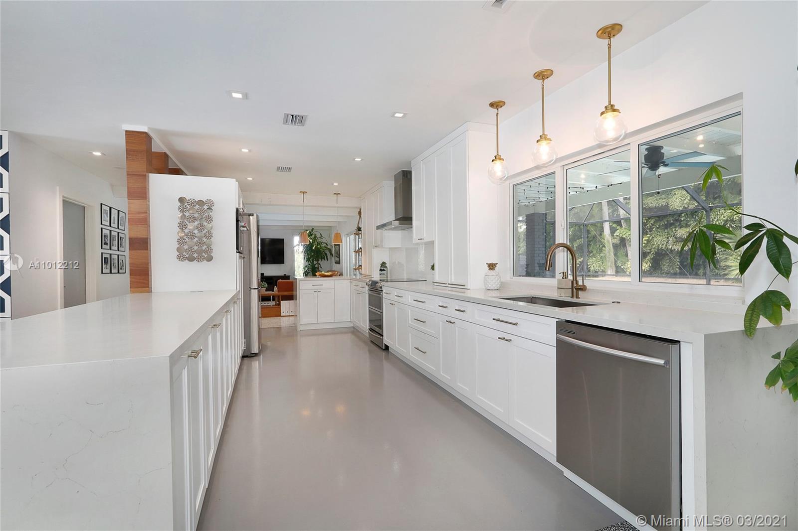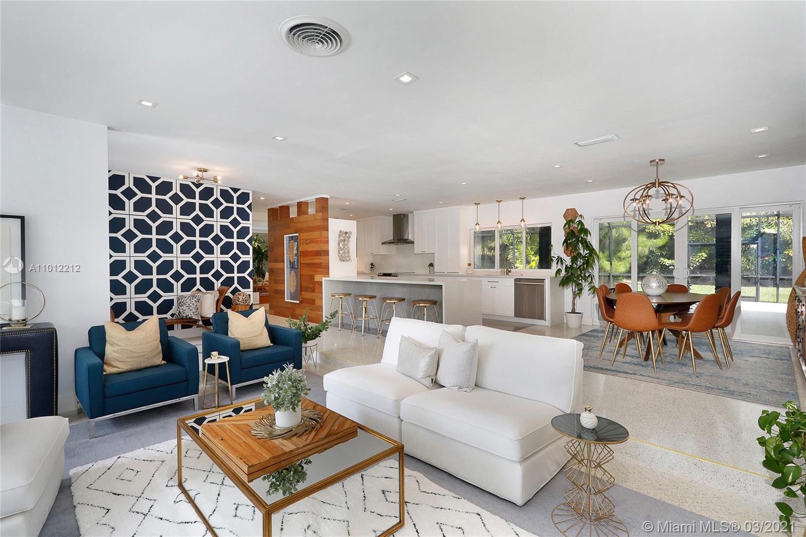 Welcome home! This beautiful home offers open-floor plan, 4 bedrooms + office, 2.5 bathrooms, lots of natural light, and private outdoors with pool area. Completely renovated in 2017, every detail of this flawless home was carefully selected by a professional interior designer. New items include: kitchen, bathrooms, roof, plumbing, electric, all impact windows/doors, pool pump, pool deck, well for sprinklers and fence. All work done with permits. Beautifully restored, original terrazzo floors throughout. Top of the line finishes & quality. Custom closets. Generator with propane tank. Screened pool area + privacy and landscaping. Family neighborhood on desirable low traffic street is perfect for walks to the park and bike rides. Call today for showing!