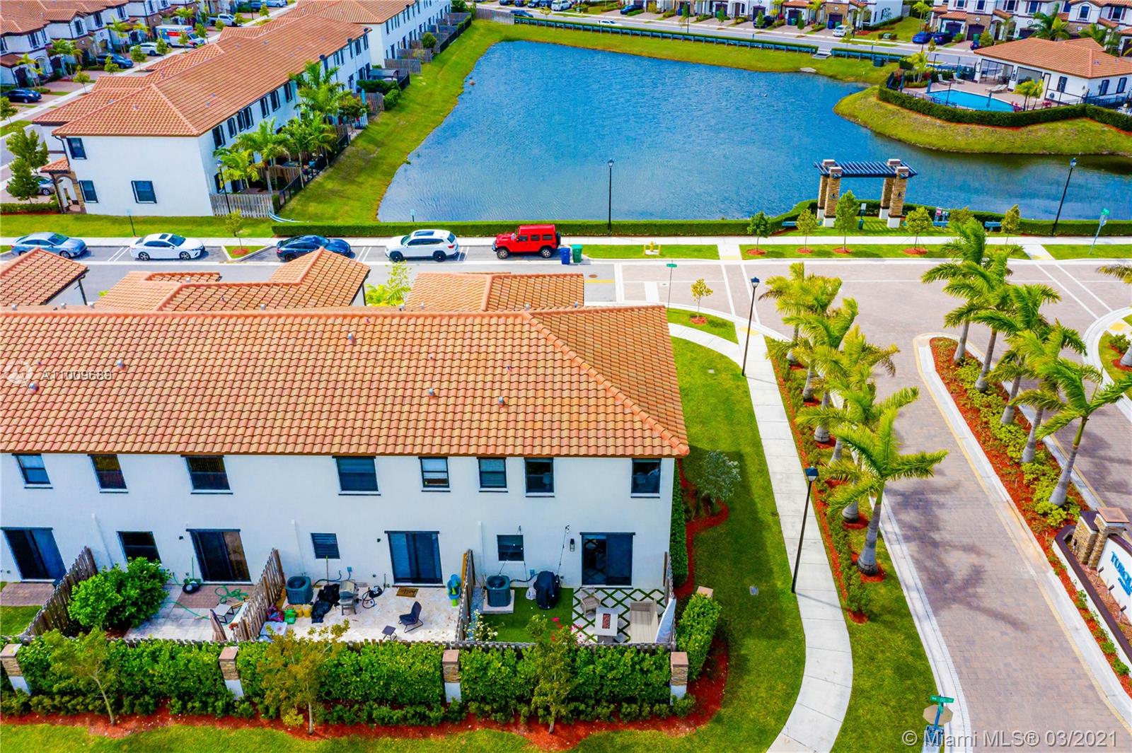 GORGEOUS LAKEFRONT CORNER LOT TOWNHOME LOCATED IN THE DESIRABLE COMMUNITY OF TURQUESA BY LENNAR. LIKE NEW, BUILT-IN 2018 PROPERTY OFFERS 3 BEDROOMS 2.5 BATHS. UPDATED KITCHEN WITH SS APPLIANCES & DARK WOOD CABINETS. EYE-CATCHING STONEWALL IN THE LIVING ROOM. TILED FLOORS THROUGHOUT THE FIRST FLOOR. UPDATED LED LIGHT FIXTURES & CEILING FANS. 1 CAR GARAGE. RING SECURITY CAMERAS, RING DOORBELL/ALARM, & ALEXA SMART HOME SYSTEM. SECOND FLOOR HAS CARPETED FLOORS AND SPACIOUS BEDROOMS. WASHER & DRYER IN THE 2ND FLOOR. AMPLE BACKYARD WITH BEAUTIFUL LANDSCAPING FINISHES OFFERS ARTIFICIAL GRASS, PAVERS, AND WHITE NATURAL GARDEN ROCKS. MUST SEE!