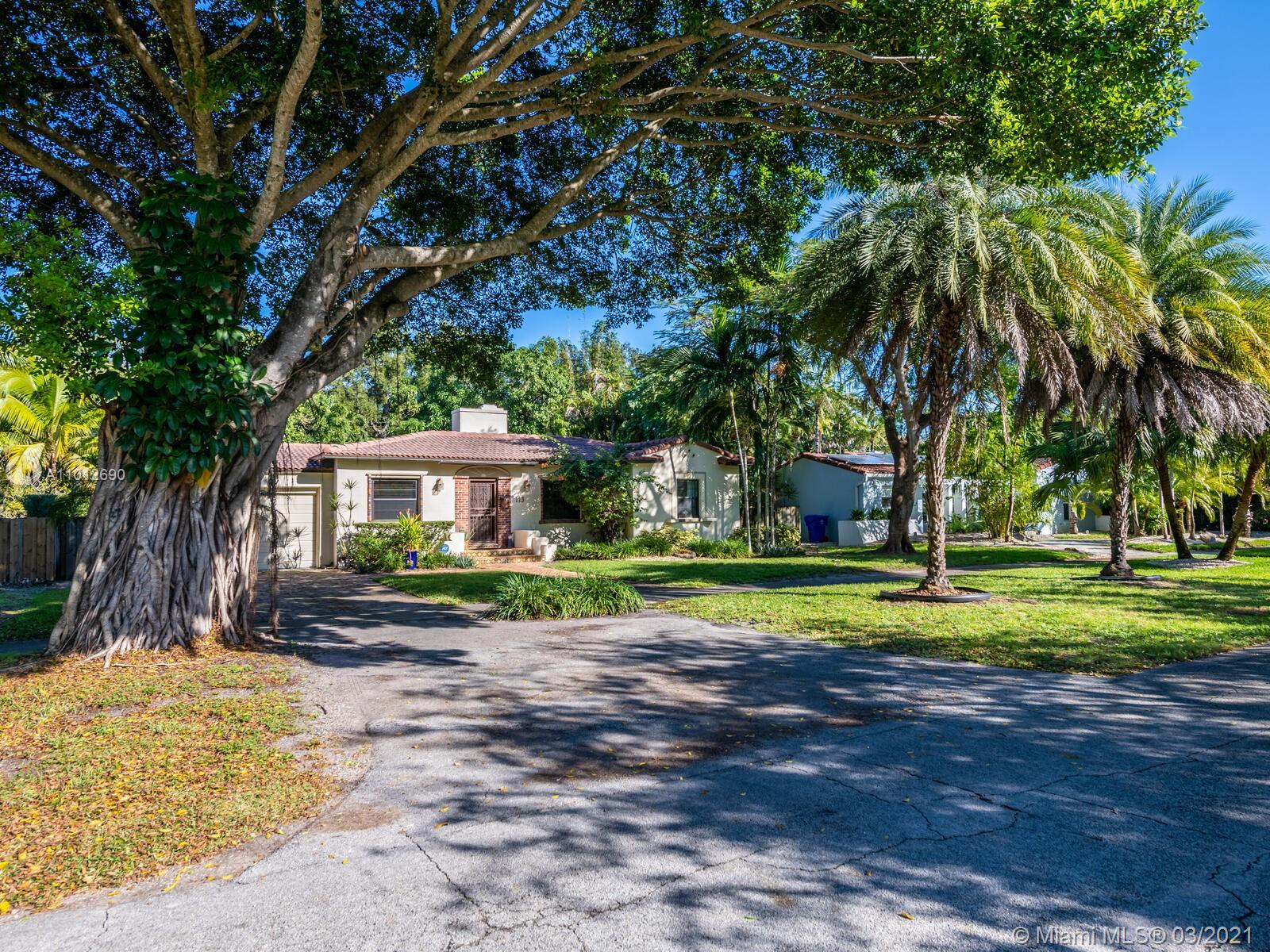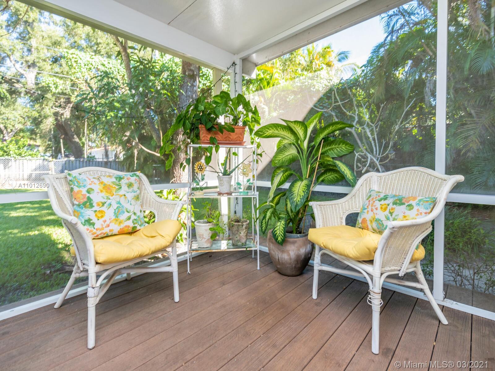 Warm & welcoming "Classic Miami Shores Charmer"! What everyone is looking for....a place to call 'home' with an authentic Chicago Brick driveway and walkway, leading to a front landing and steps with original Art Deco carved masonry. Polished wood floors and comfortable living room and dining room boast high ceilings. The family room has vaulted ceilings with a modern farmhouse twist of rustic wood tie beam and new Impact windows & doors throughout! Entertain galore!...Family rm opens to spacious screened porch extends to an additional open deck & huge fenced back yd lined by coral rock walls--one-of-a-kind original architectural details.