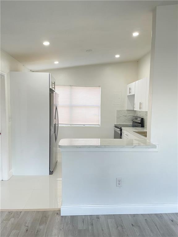 Fully remodeled 3 Bedroom, 1 Bath in West Park. Large Corner fenced-in lot in quiet neighborhood! New Roof installed October 2020 with permit. New laminate wood floors throughout the home, baseboards, and white porcelain tile in kitchen. New high gloss white kitchen cabinets with new stainless steel fridge and stove. Modern bathroom with new toilet, tub and vanity. Newer Central air. Close to shopping centers, schools and major highways I-95/Turnpike. Ready to move in!