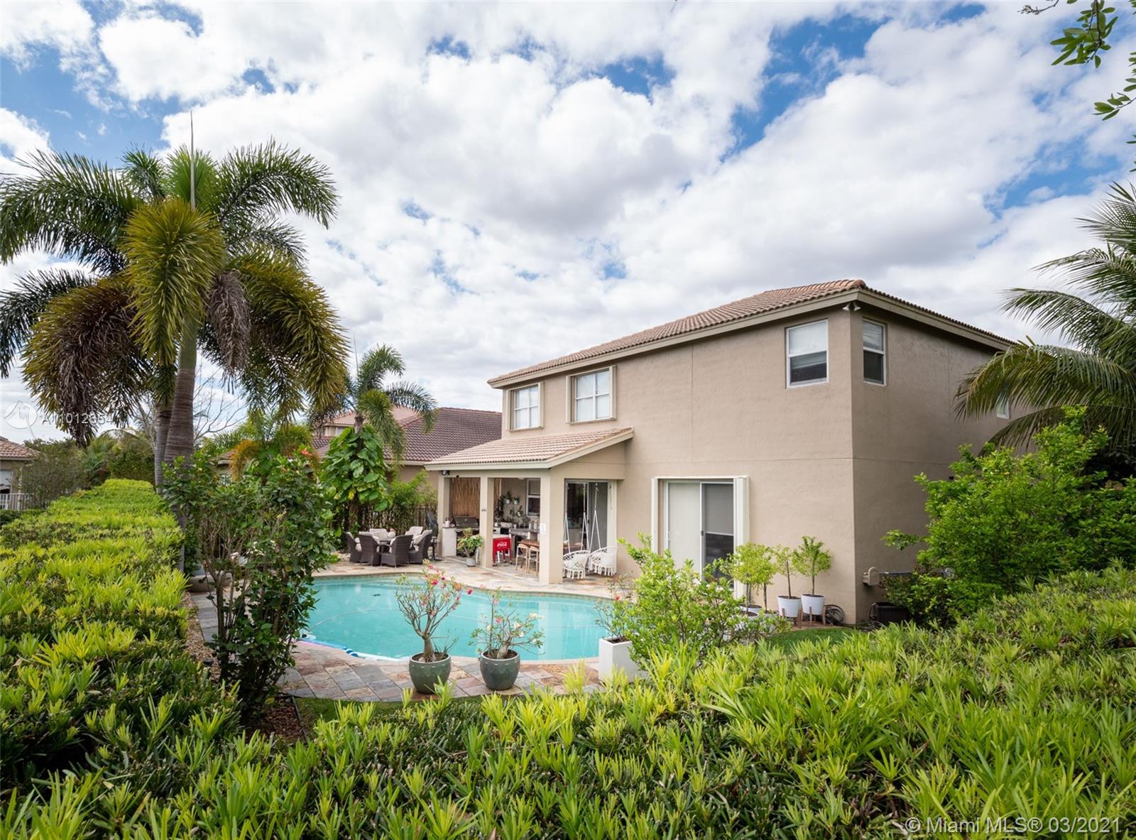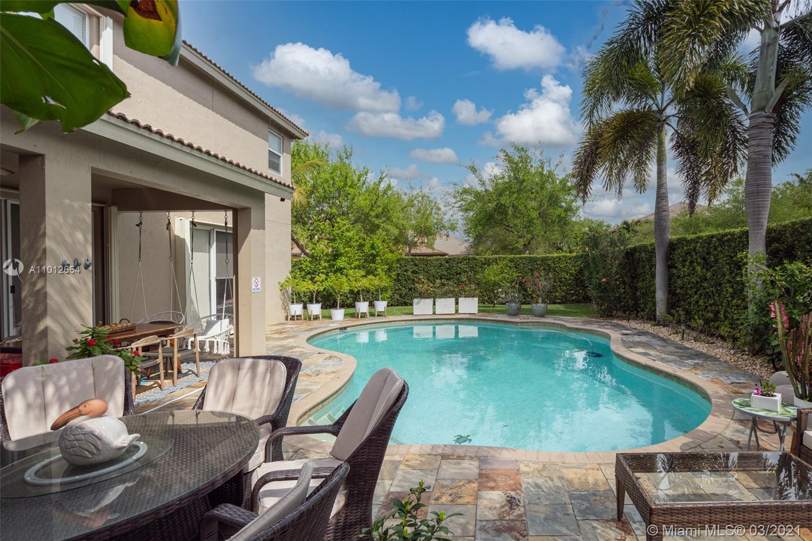 Beautiful CORNER LOT HOUSE 5 BR & 3.5 Baths +3 car garage with pool. Marble floor, stainless steel appl, wine fridge, granite counter & wood cabinets; front load washer & dryer; cherry wood in stairs and 2nd floor, huge loft area, large master bedroom & bath, walk-in closets, freeform salt system heated pool + jacuzzi, stainless steel outdoor kitchen w/granite top. Clubhouse: Gym, game & billiard, pool, playground, volley & basket. Guard gate. A+ schools. Floor plan available as attachment on the MLS listing.