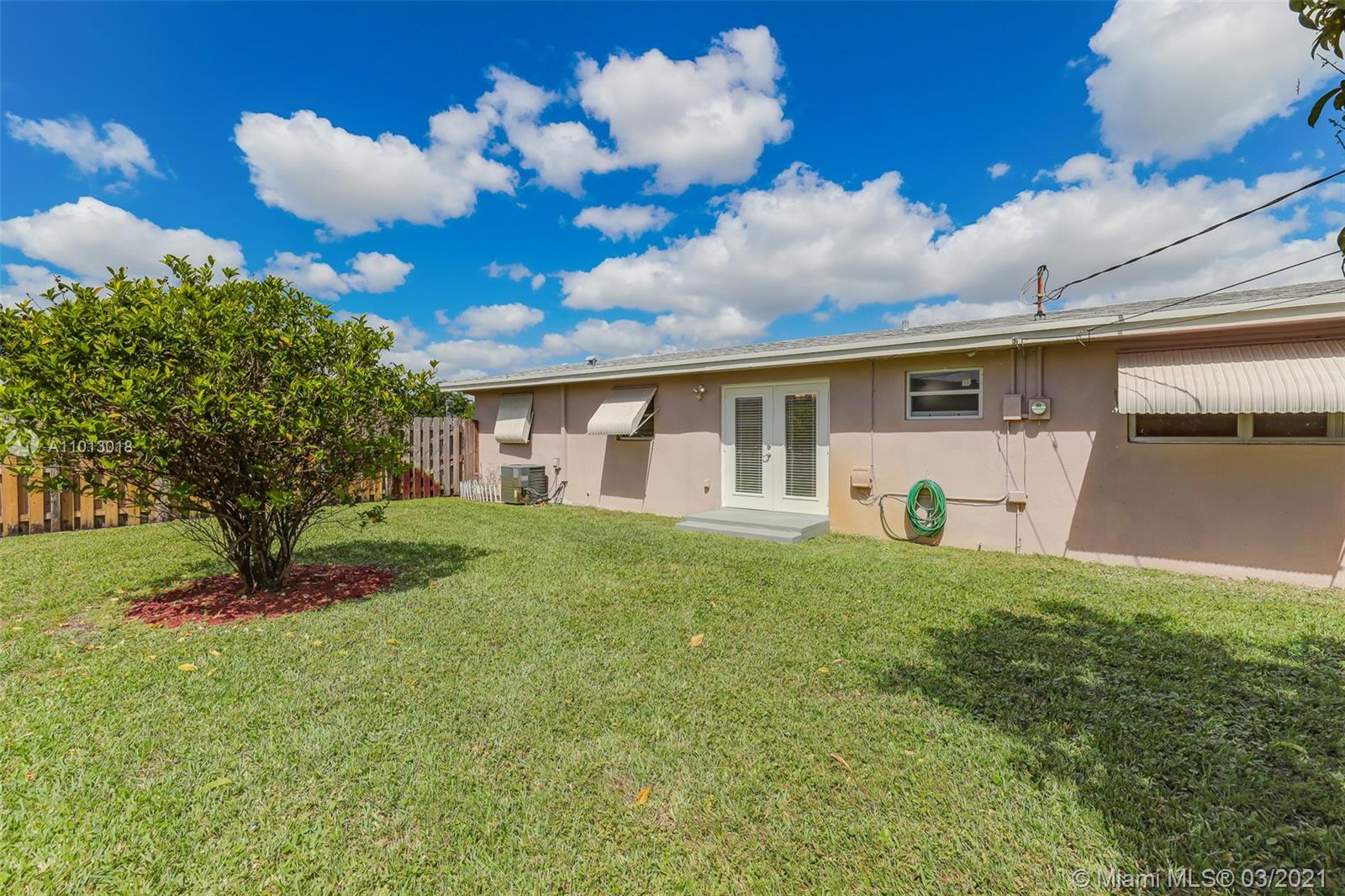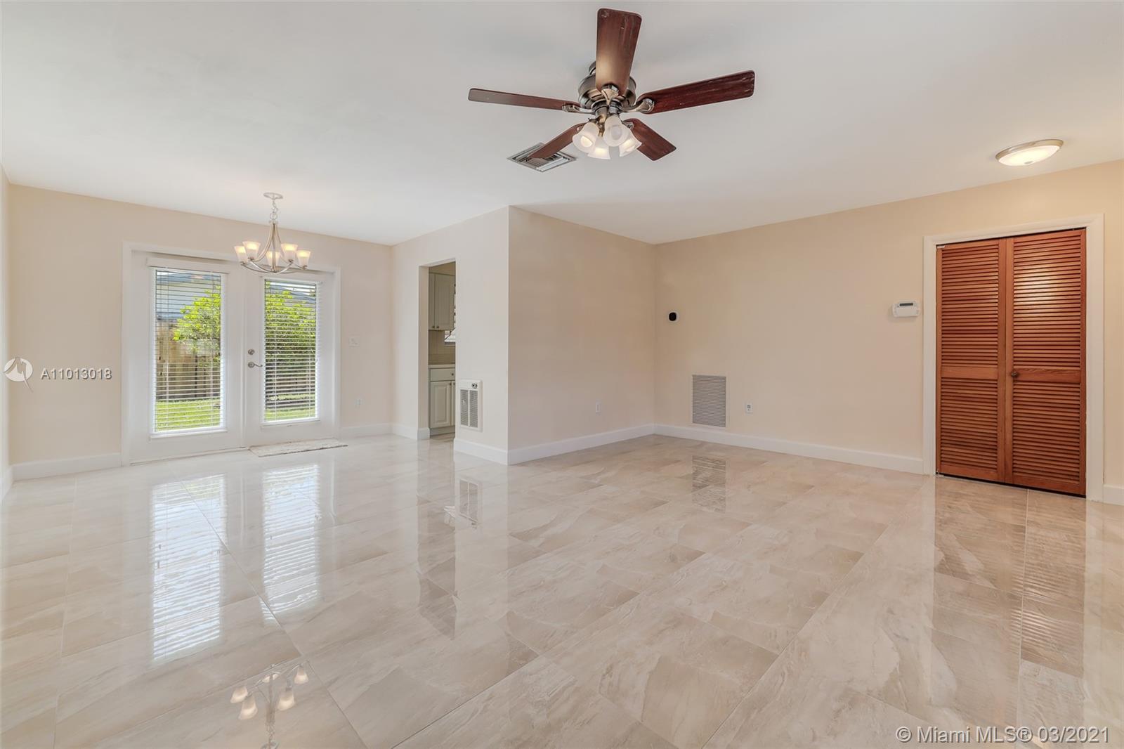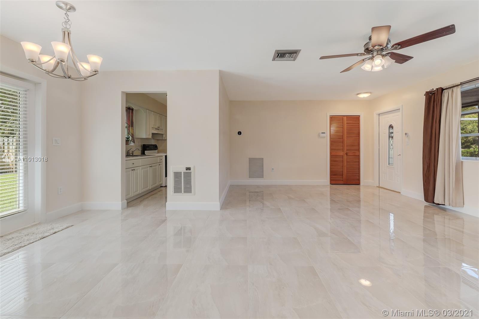 Beautiful starter home, 2 Bedrooms 1 Bath 1 car garage, corner lot, with a New Roof, New Porcelain Tile Throughout, Remodeled Bathroom, Updated Kitchen and freshly painted. Impact French doors that open to the back yard that has 6' wood privacy fence with plenty of room for family gatherings or add a pool.