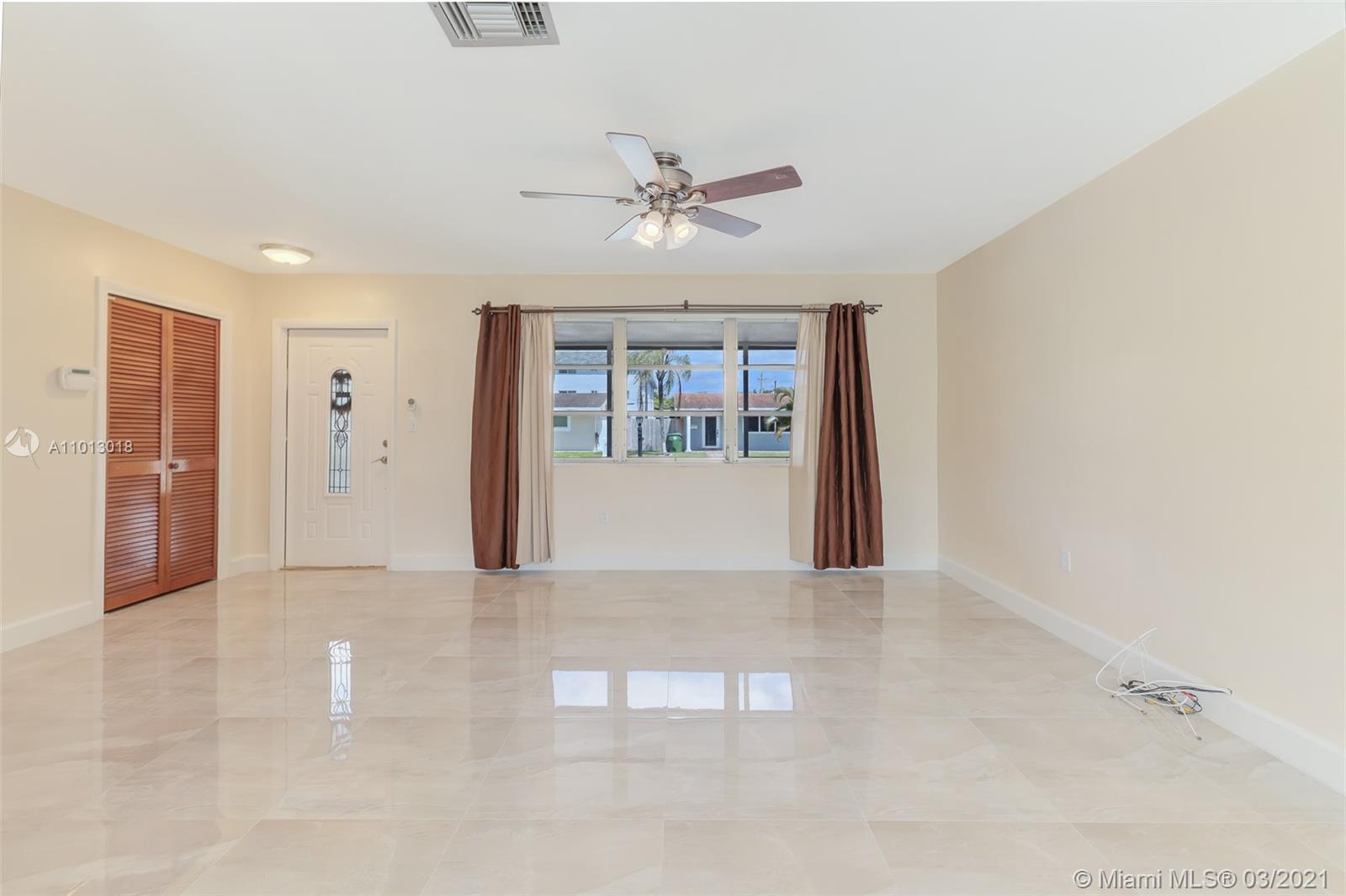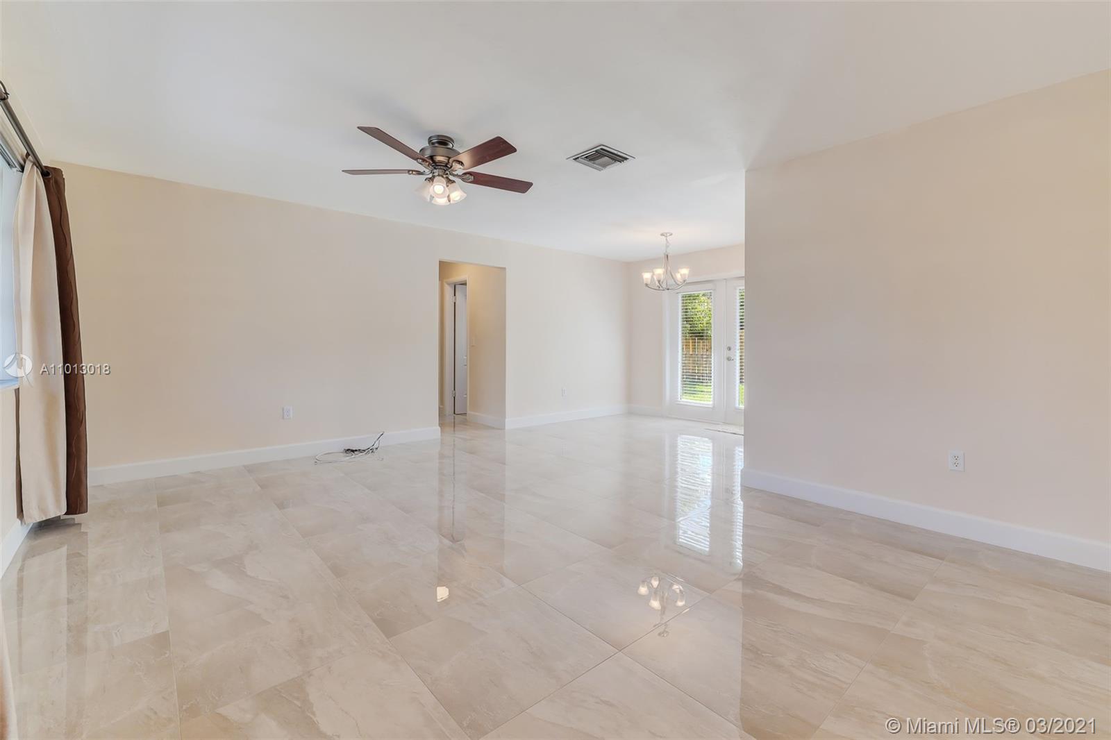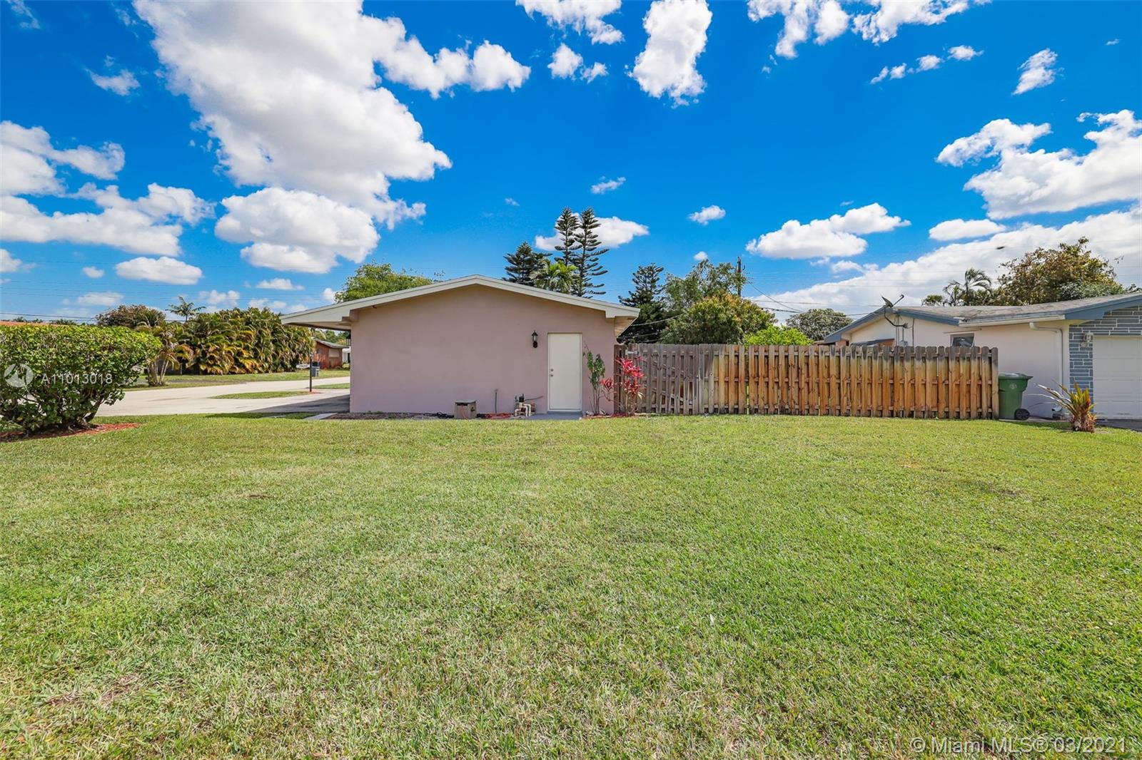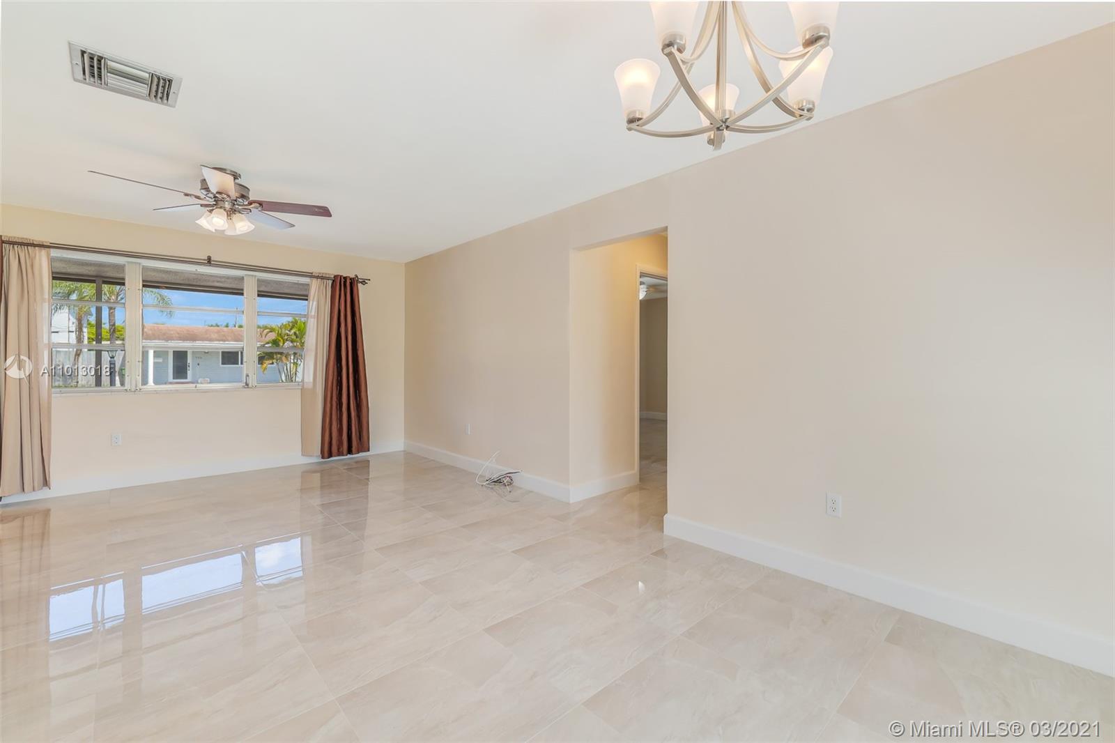 Beautiful starter home, 2 Bedrooms 1 Bath 1 car garage, corner lot, with a New Roof, New Porcelain Tile Throughout, Remodeled Bathroom, Updated Kitchen and freshly painted. Impact French doors that open to the back yard that has 6' wood privacy fence with plenty of room for family gatherings or add a pool.